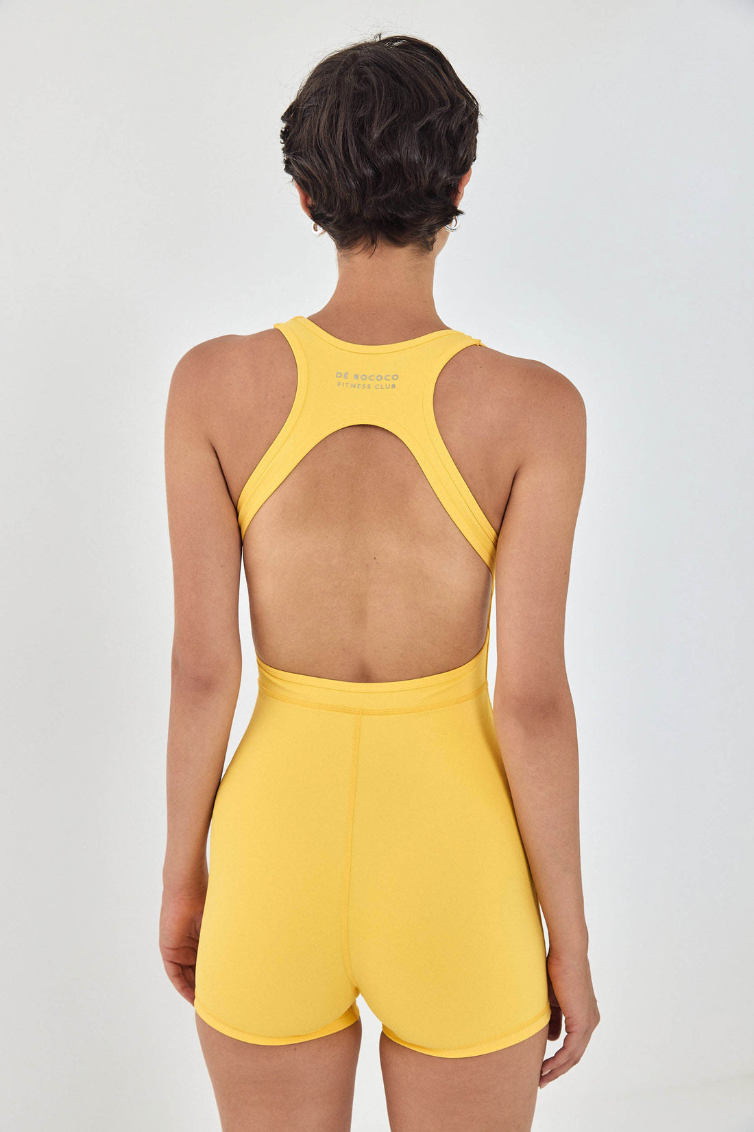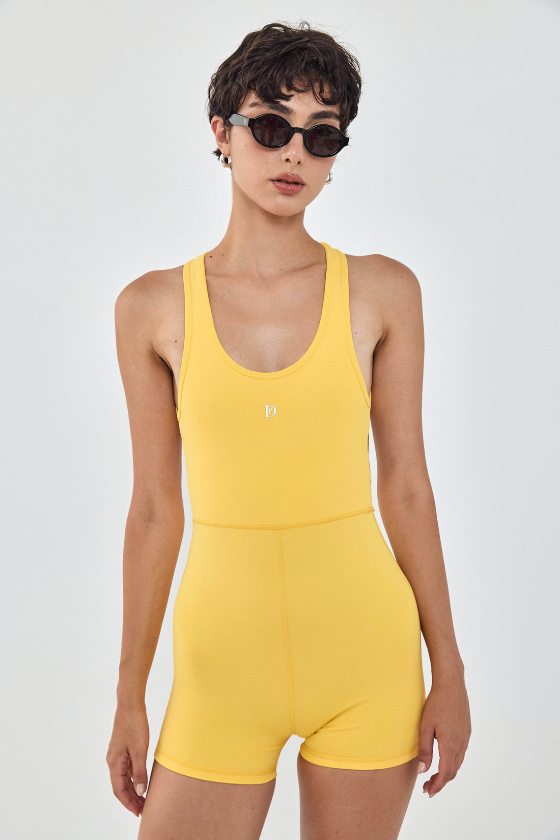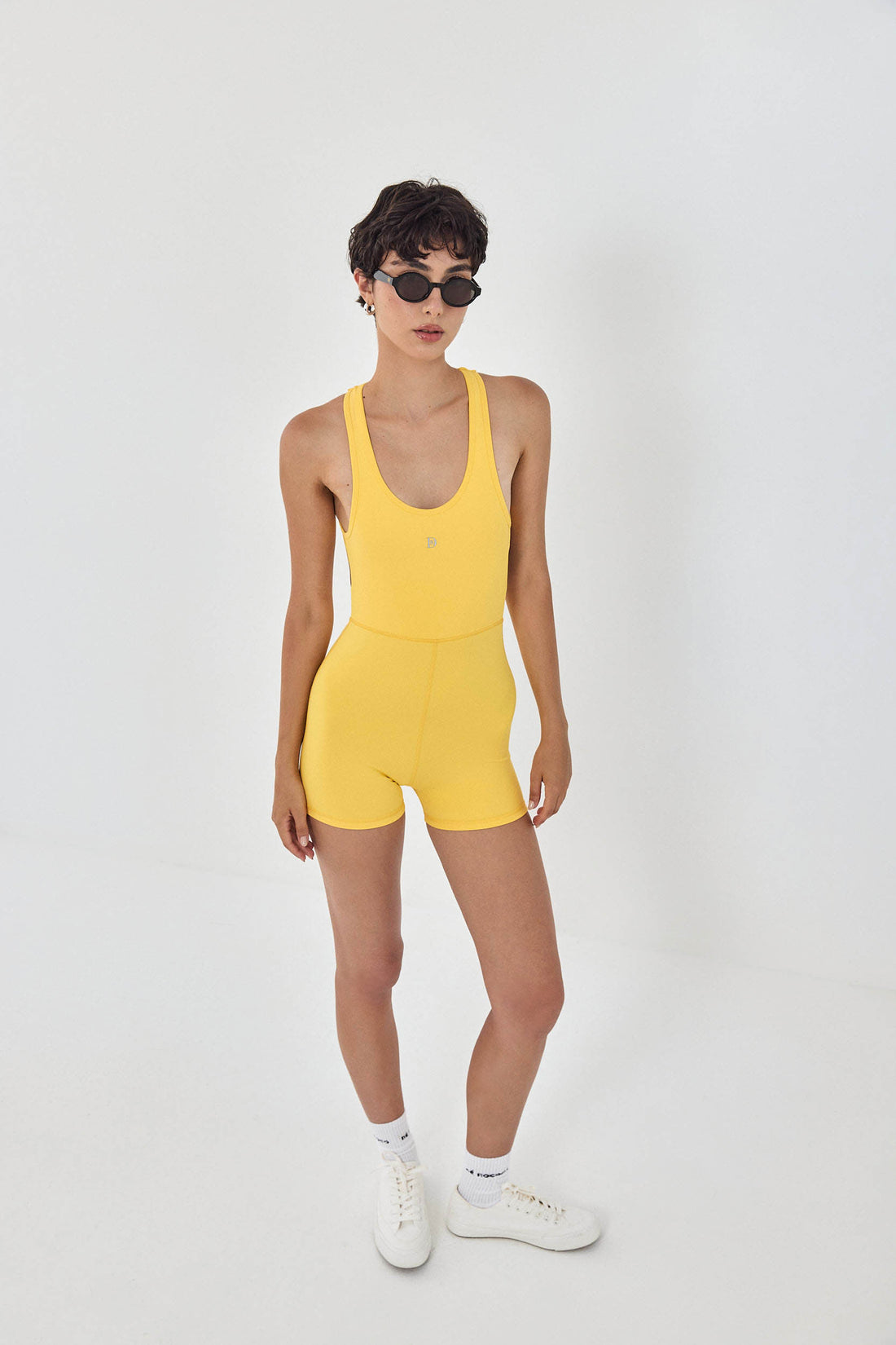 The ultimate summer active jumpsuit. Round neckline. Flattering open back. Our active has a second-skin fit and feel, made from a stretchy smooth fabric that lifts and sculpts your body. Reflector logo on the front. Reflector logo at the back. Front torso area has a double lining for extra grip. Features flat lock stitches and a sweat absorbent lining at the crotch area. Complete the look with our large canvas carry all, your favorite pair of sunnies and trainers.