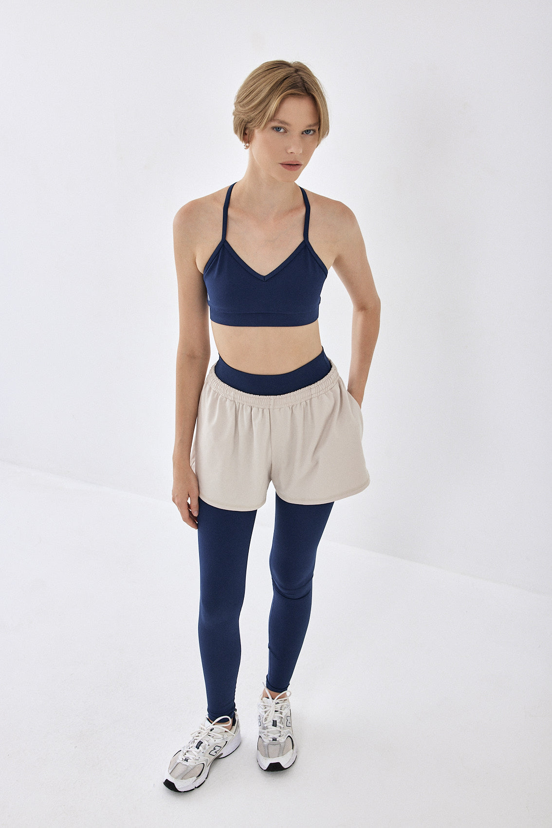 Dé active shorts have a second-skin fit and feel. Elastic waistband with a inner string. Two side pockets. Style it with the matching sleeveless cover up for the perfect casual look.