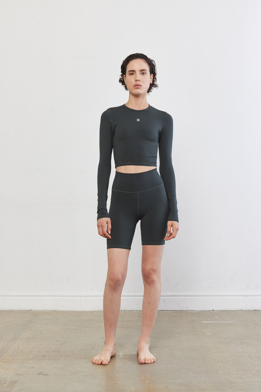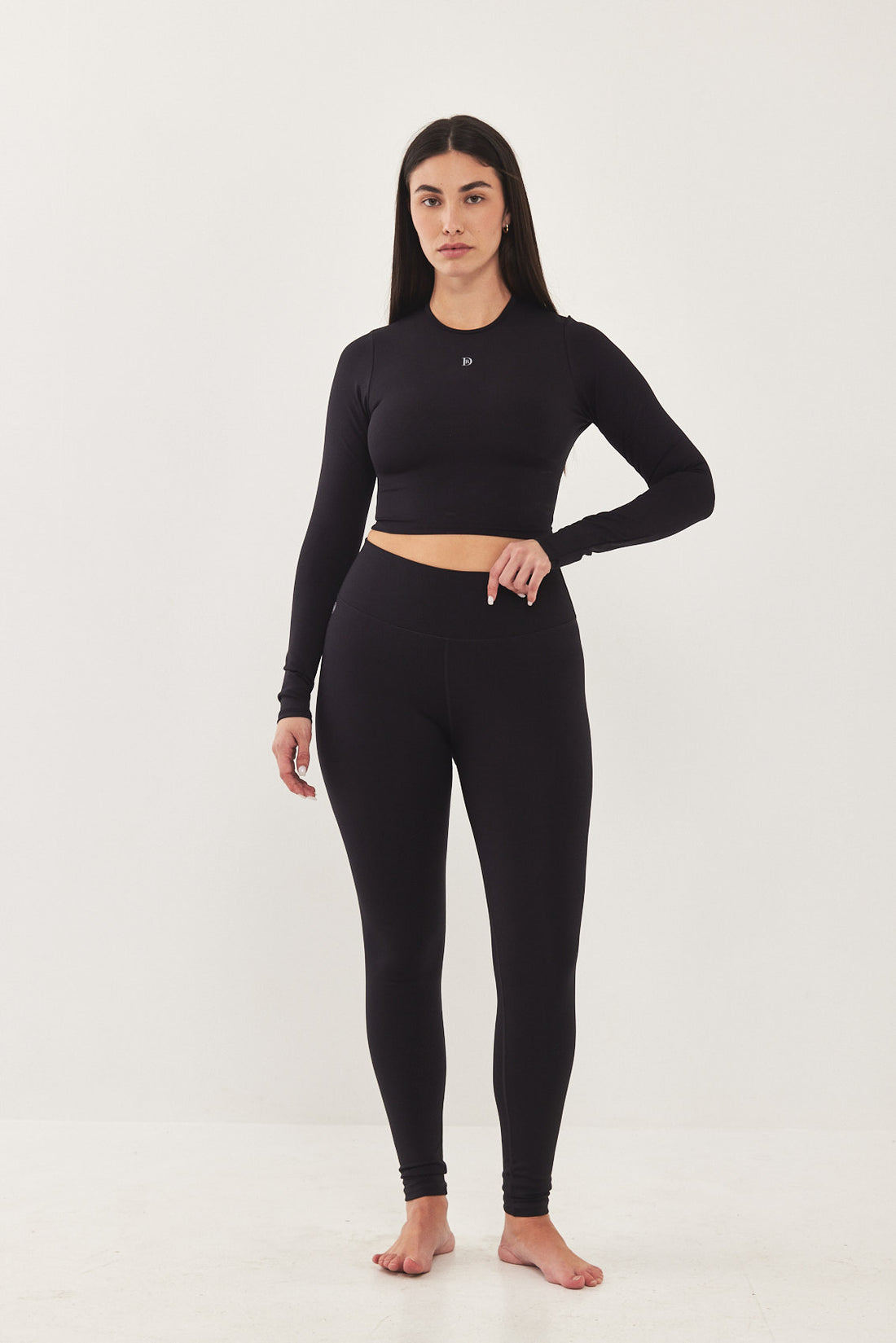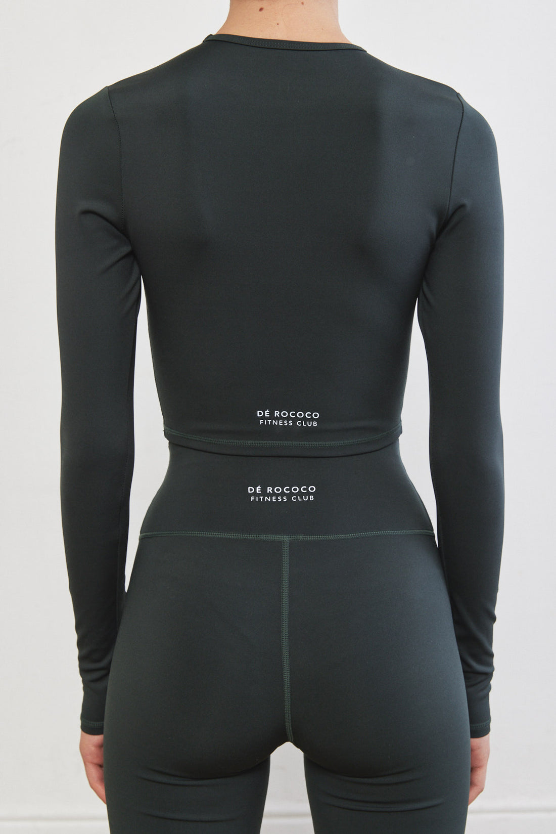 Dé long sleeved cropped top has a second-skin fit and feel, made from a stretchy supportive fabric. Features a crew neckline and flat lock stitches. Reflector logo on the center front and a fitnéss club signature at the back. Complete the set with one of our matching color fitnéss club bottom.