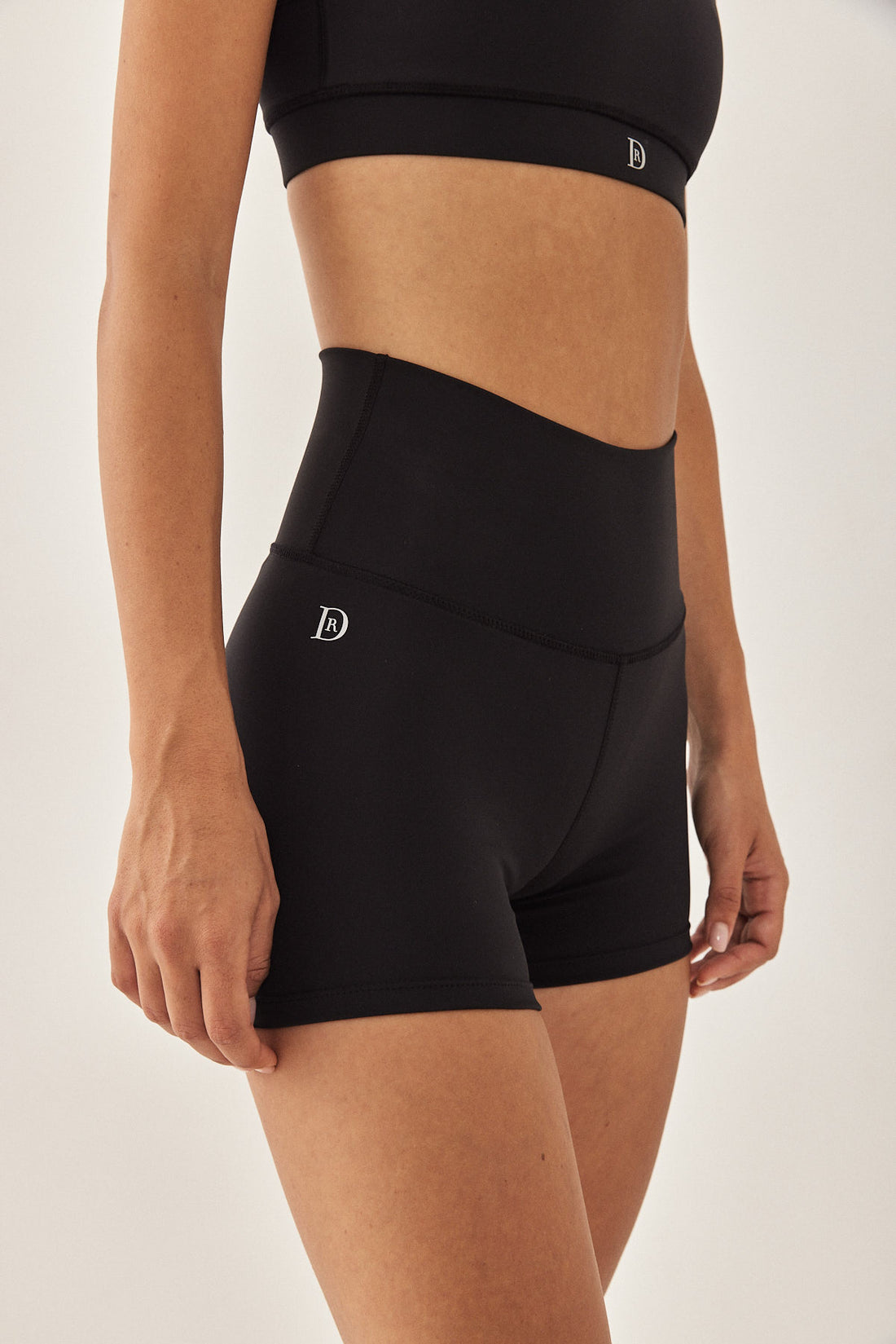 Dé shorts have a second-skin fit and feel. Made from a stretchy and smooth fabric that lifts and sculpts your body in the most flattering way. High waisted. Our shortest length active bottom. Features flat lock stitches and a sweat absorbent lining at the crotch area. Reflector logo on the side and a fitness club signature logo at the back. Style it with a matching color top and the classic chino cap for the most perfect sporty look.