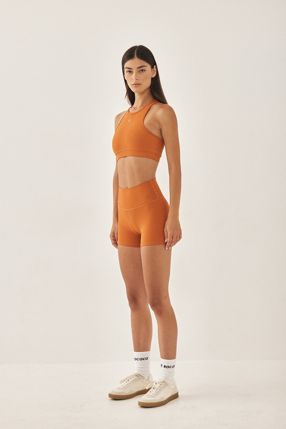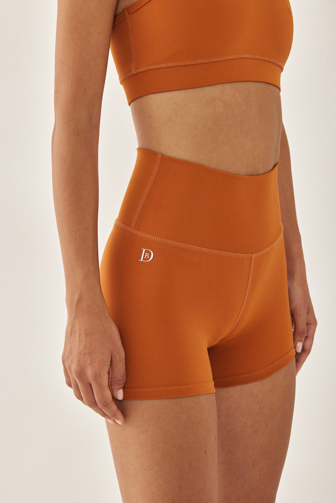 Dé shorts have a second-skin fit and feel. Made from a stretchy and smooth fabric that lifts and sculpts your body in the most flattering way. High waisted. Our shortest length active bottom. Features flat lock stitches and a sweat absorbent lining at the crotch area. Reflector logo on the side and a fitness club signature logo at the back. Style it with a matching color top and the classic chino cap for the most perfect sporty look.
