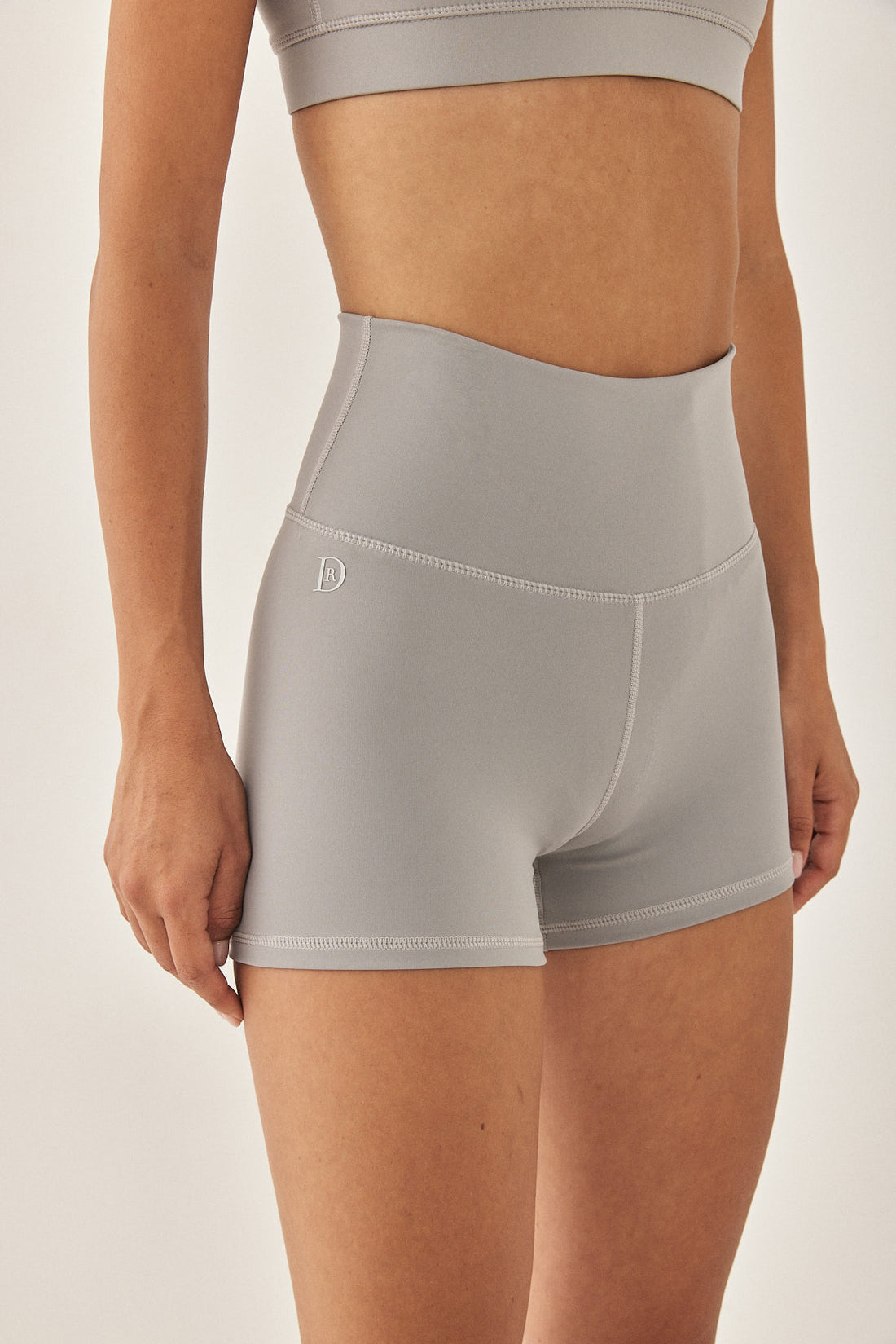 Dé shorts have a second-skin fit and feel. Made from a stretchy and smooth fabric that lifts and sculpts your body in the most flattering way. High waisted. Our shortest length active bottom. Features flat lock stitches and a sweat absorbent lining at the crotch area. Reflector logo on the side and a fitness club signature logo at the back. Style it with a matching color top and the classic chino cap for the most perfect sporty look.