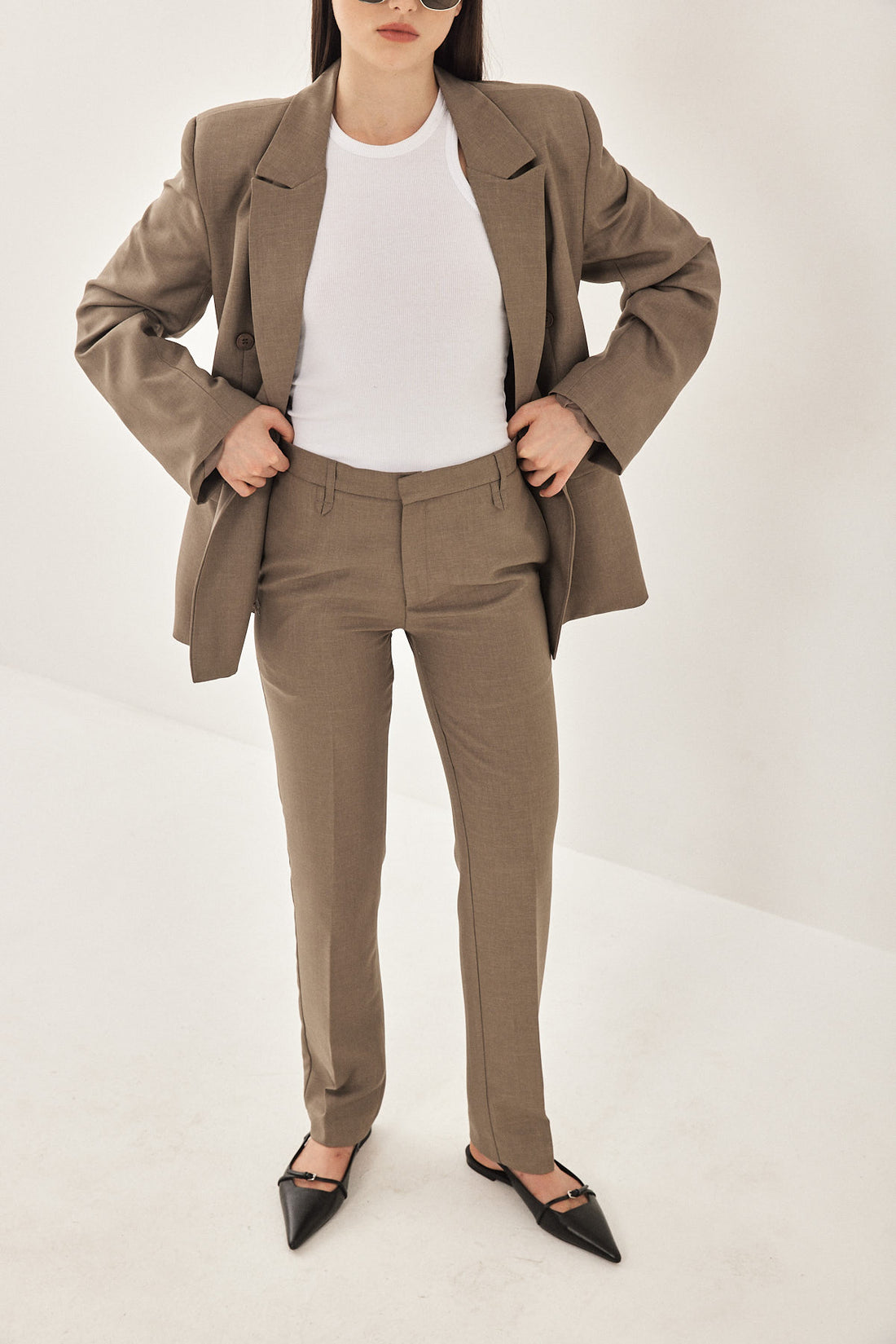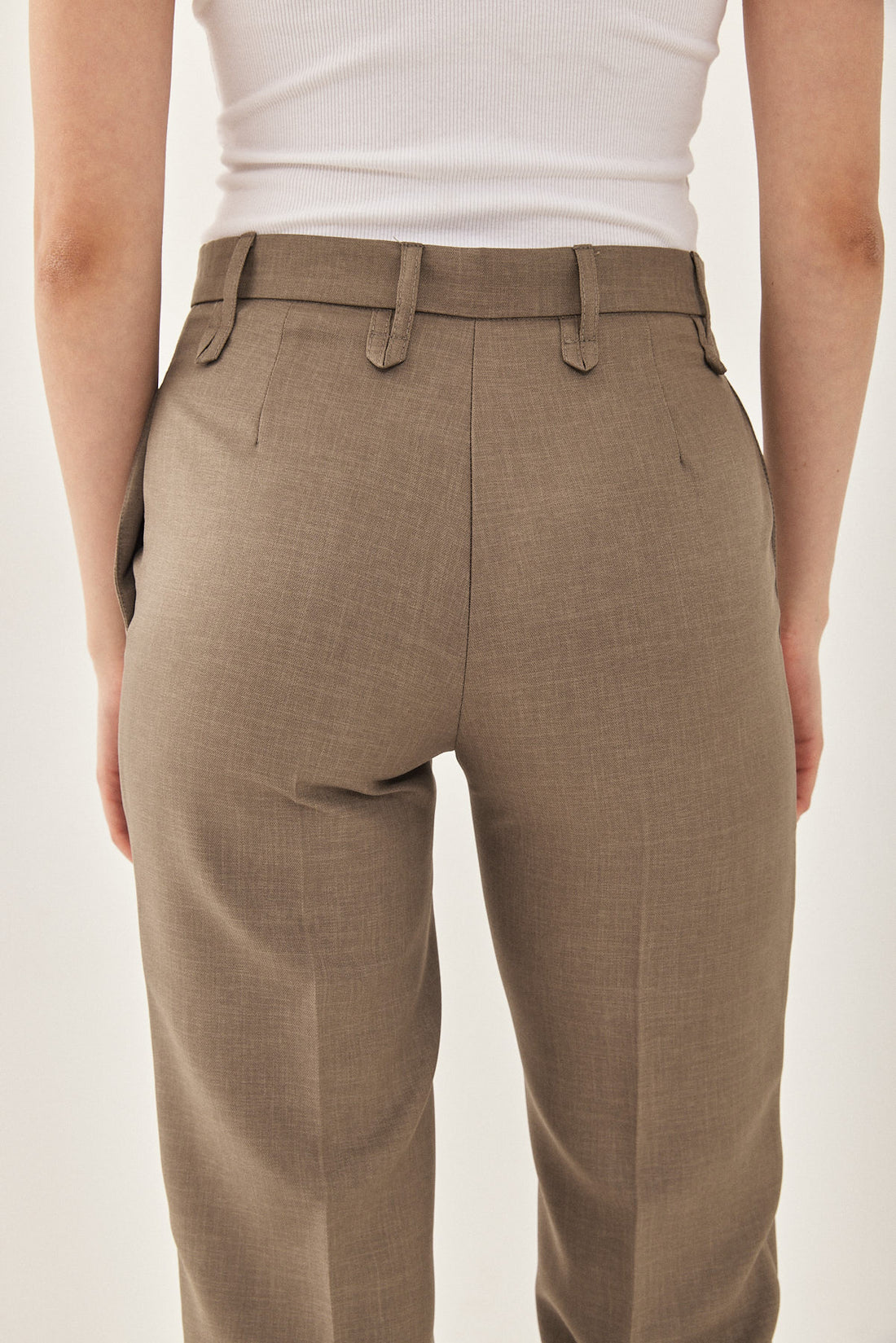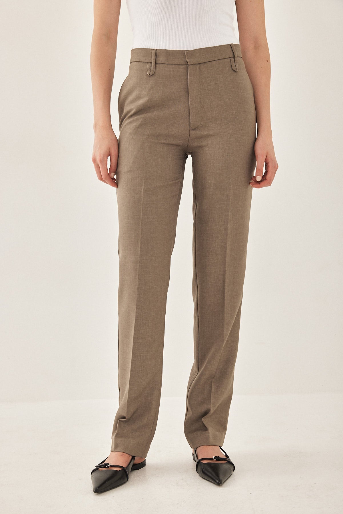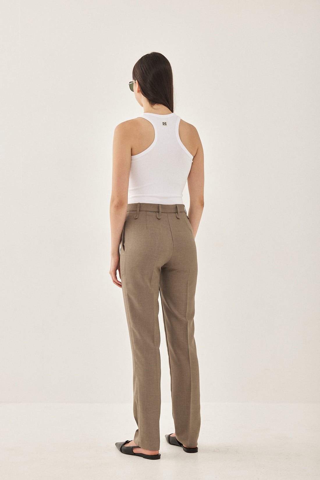 Straight fit mid rise tailored pants. Featuring side pockets, front pleat detail, belt loops and front metal hook and zip closure. Printed logo across inner belt. Wear yours with a basic top and matching Daddy blazer.