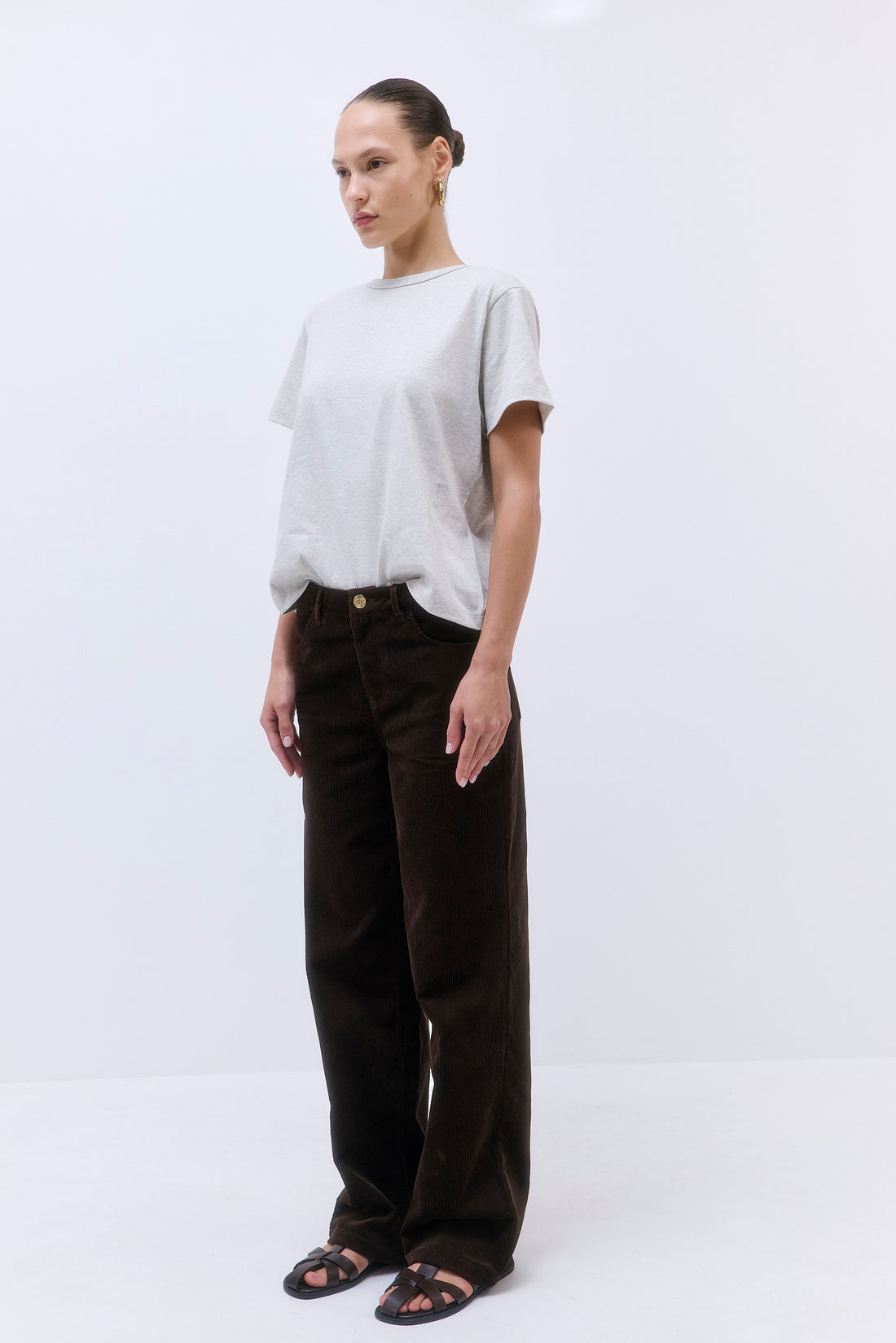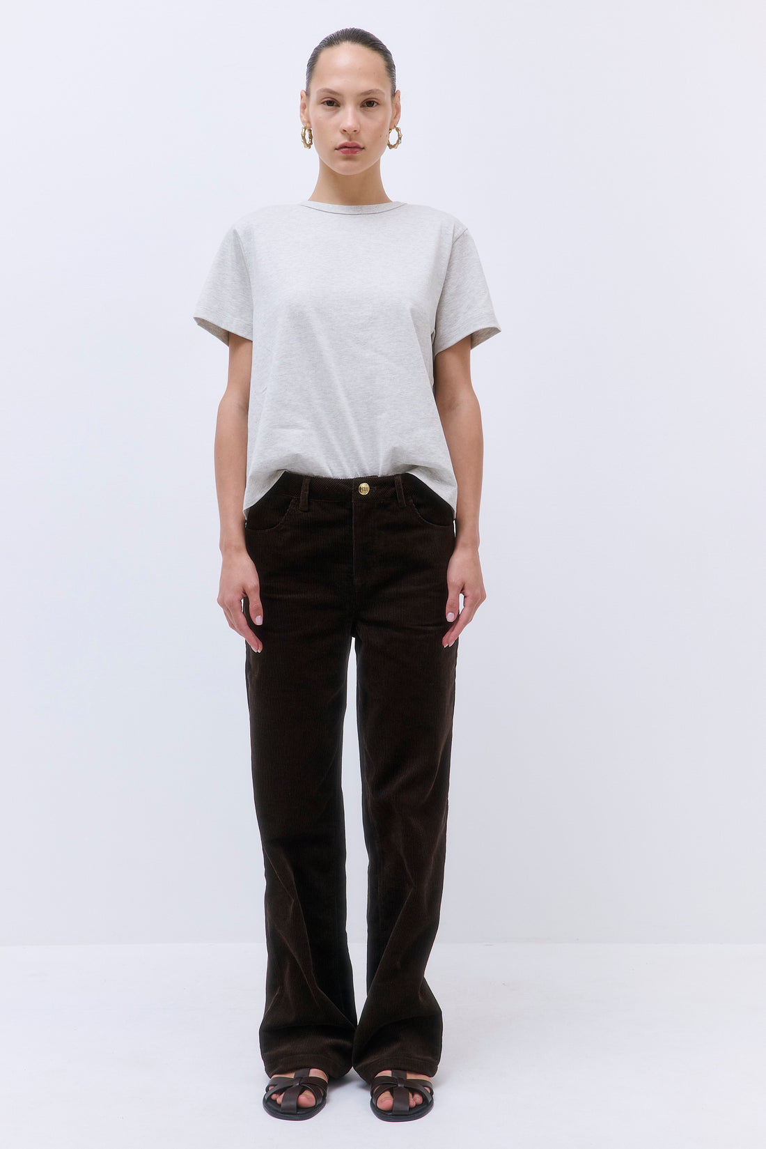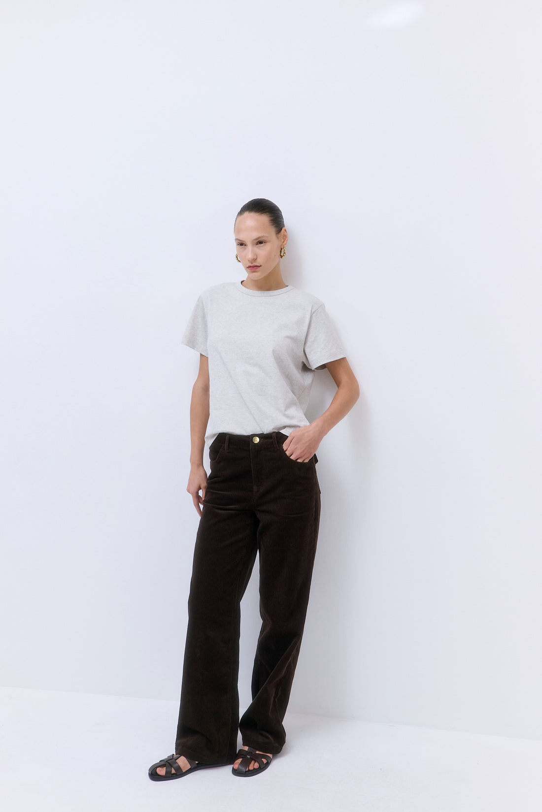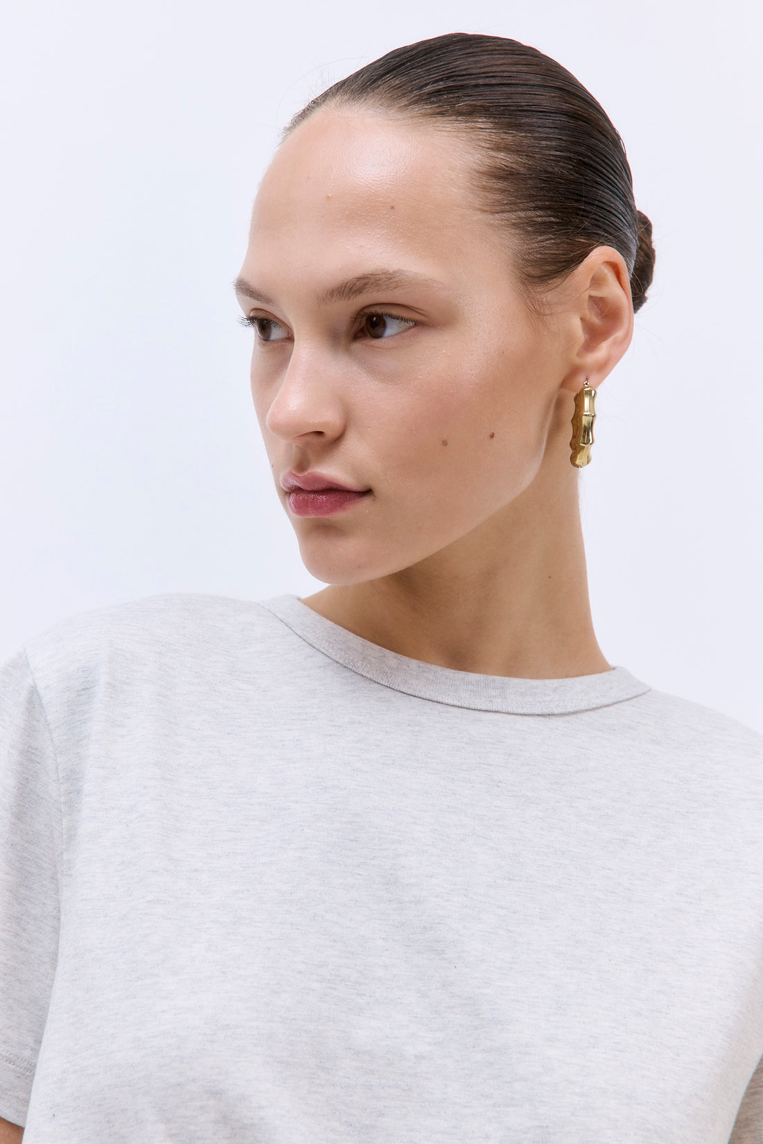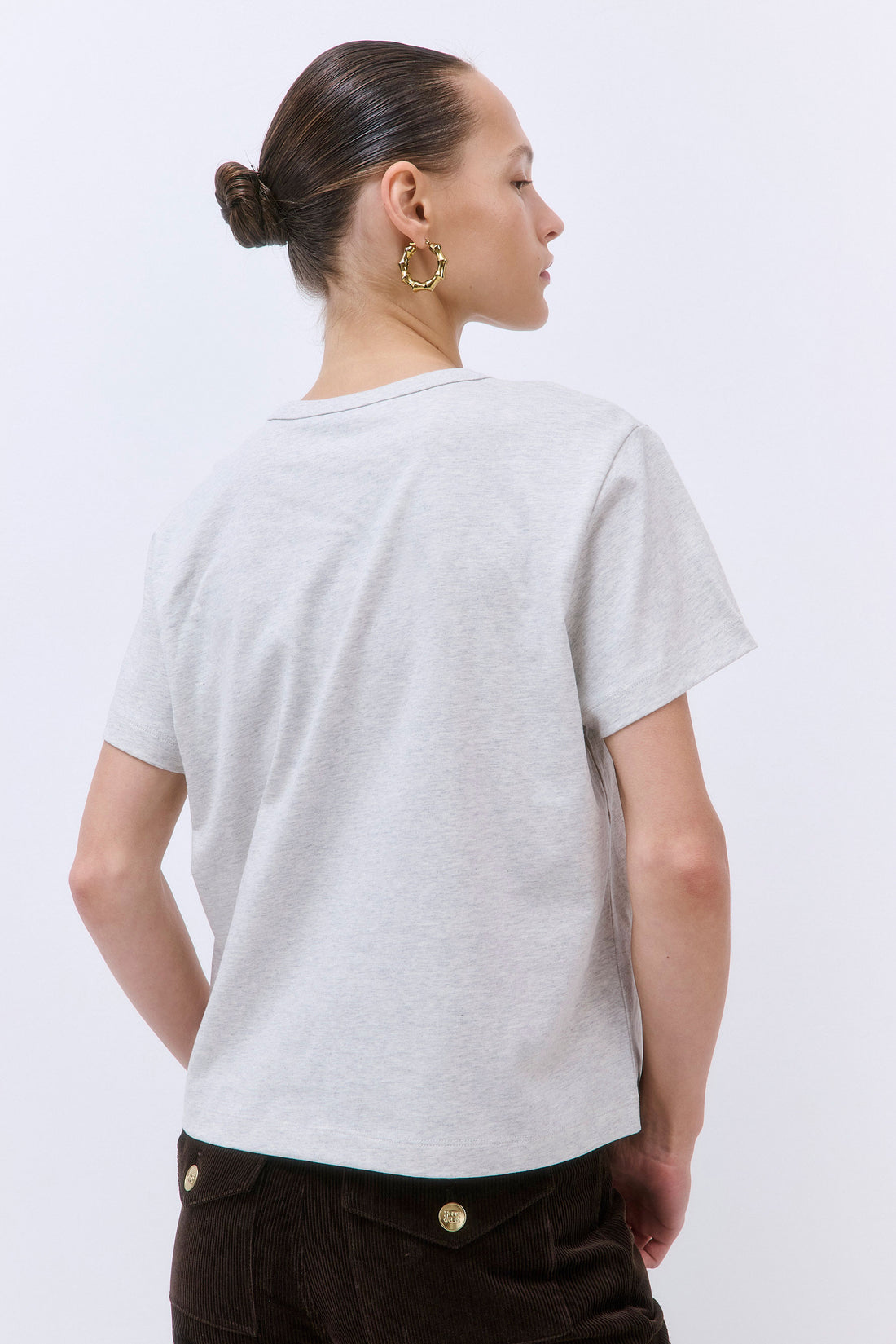 Our Classic Boxy T Shirt is an iconic addition to the basics family. Crafted from crispy cotton. Relaxed, boxy fit. Classic sleeves. Crew neckline with ribbed trim. Tonal embroidered logo at the front. Style it with our capsule Wide Leg Cotton Pants and chic Oval Sunglasses for a refined look.