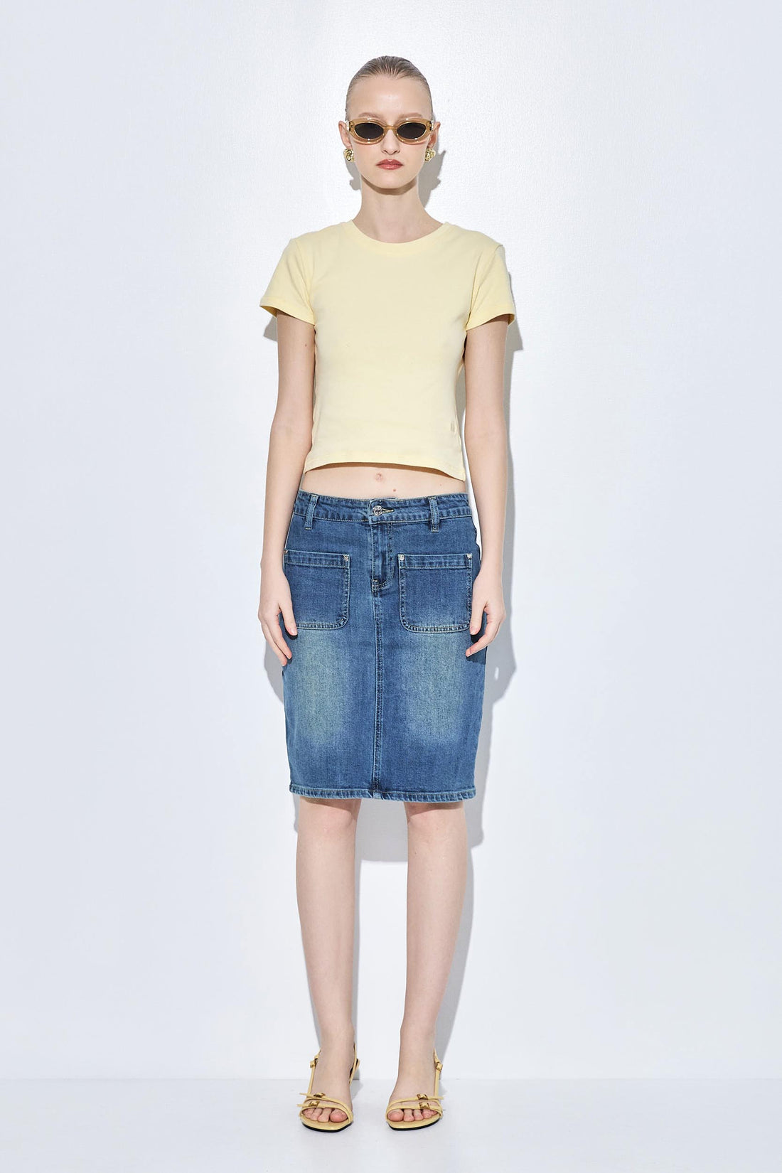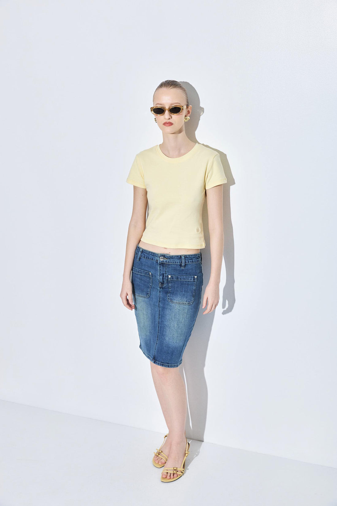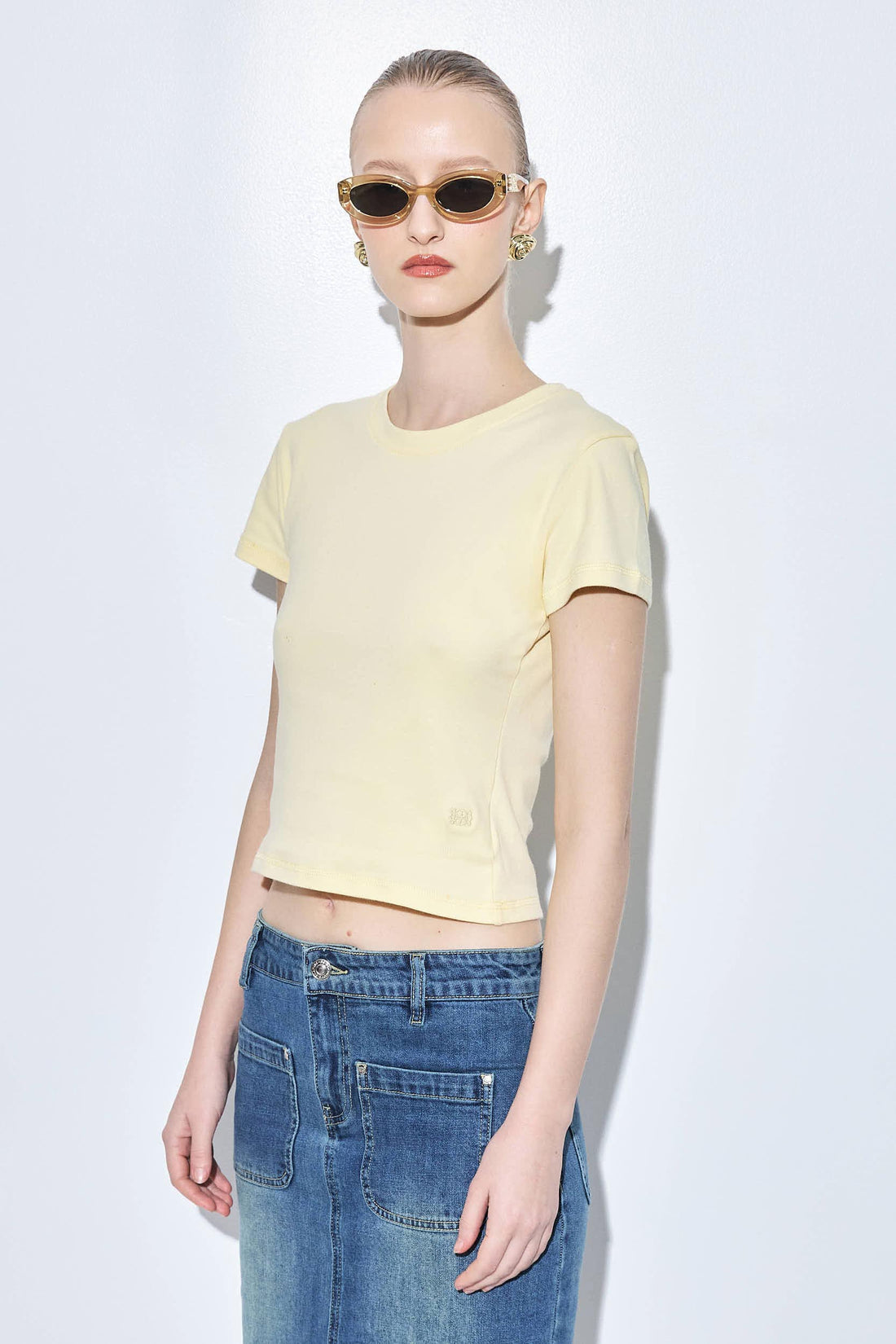 A classic baby tee is truly a wardrobe essential. Crewneck. Slightly cropped. Lightweight cotton fabric, perfect for the warmer weather. Tonal logo embroidery detailing at the front side. Style it with your our new denim skirt, kitten heels and clutch for the perfect day to night look.