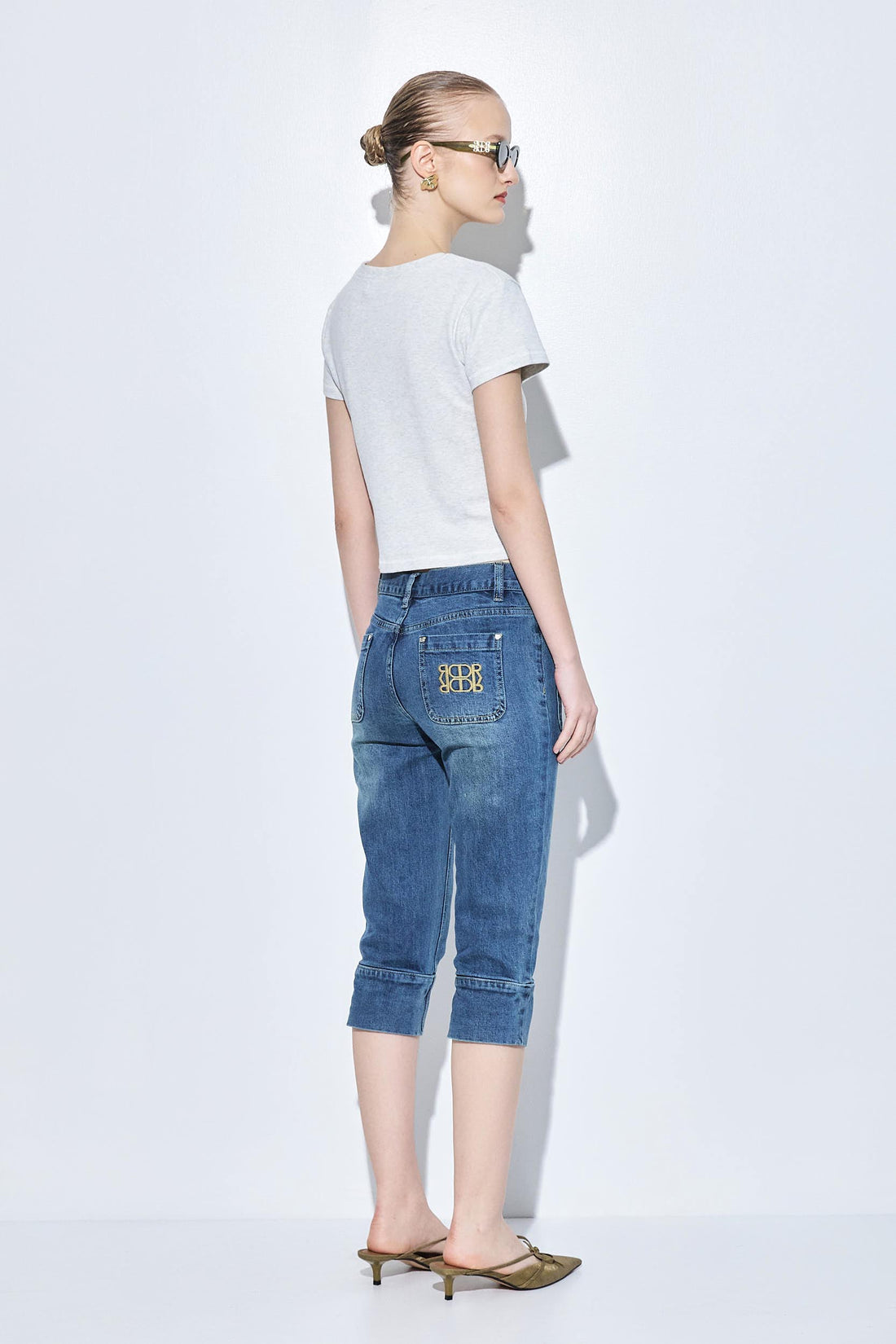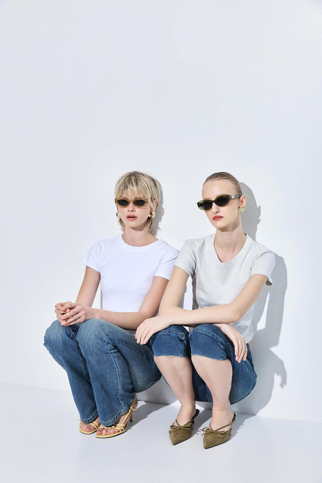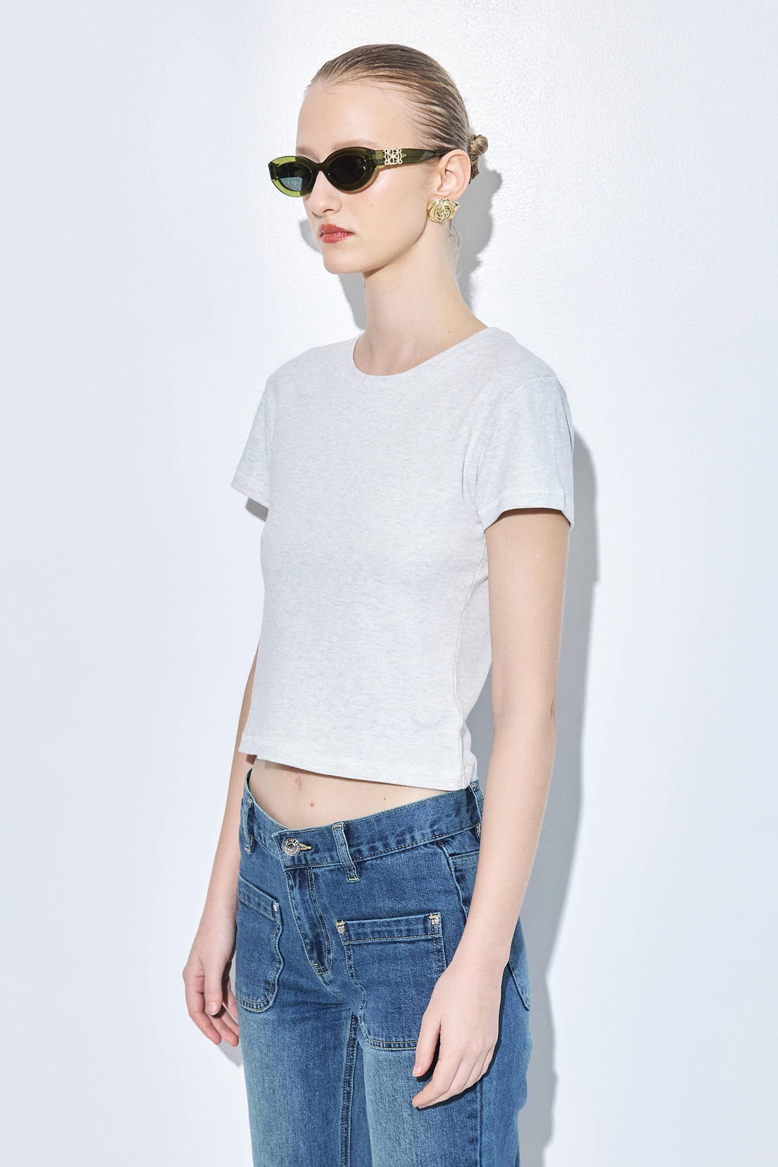 A classic baby tee is truly a wardrobe essential. Crewneck. Slightly cropped. Lightweight cotton fabric, perfect for the warmer weather. Tonal logo embroidery detailing at the front side. Style it with your favorite pair of denim, kitten heels and clutch for the perfect day to night look.