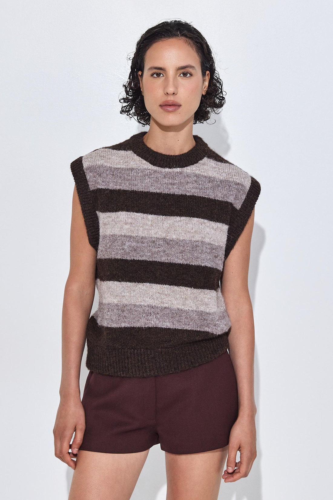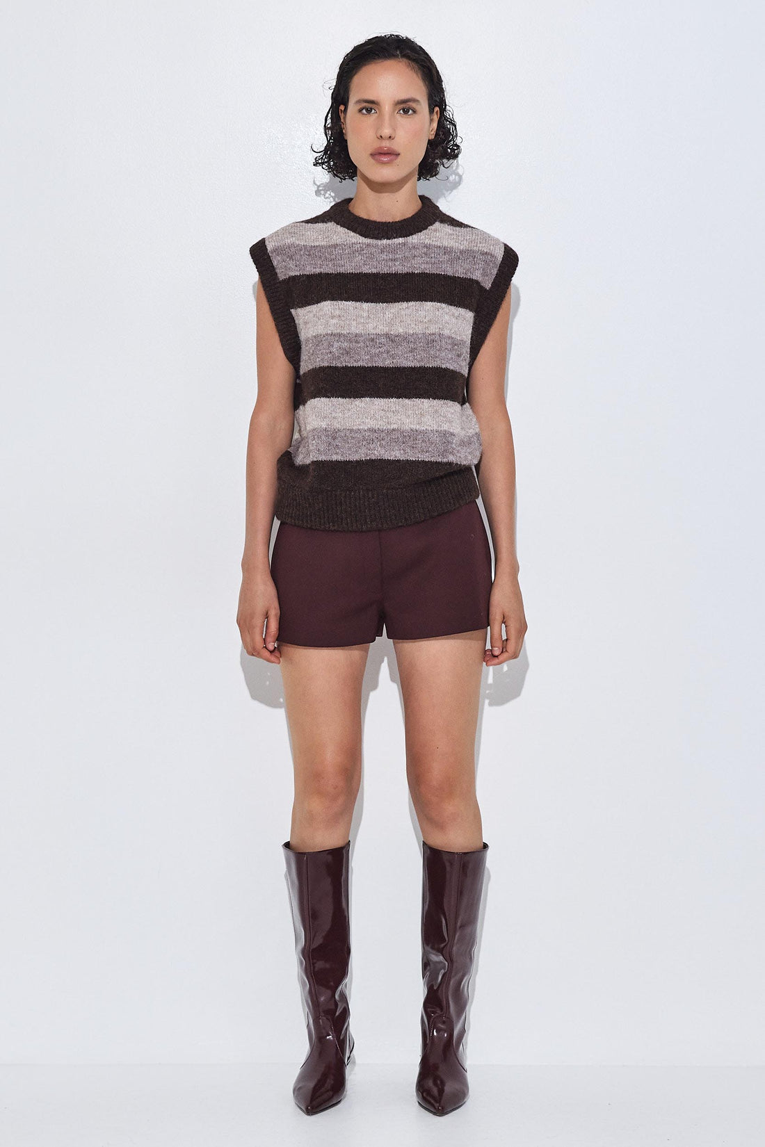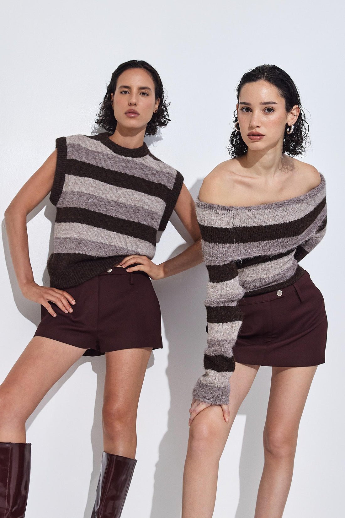 Our new fuzzy vest is the ultimate blend of warmth and style. Relaxed fit. Soft and cozy fabric. Crew neckline. Wide ribbed contrasting finish for additional volume. Style it with a pair of our tailored tapered daddy pants, our signature mini logo belt and throw our tailored daddy blazer on top to seal this classy look.