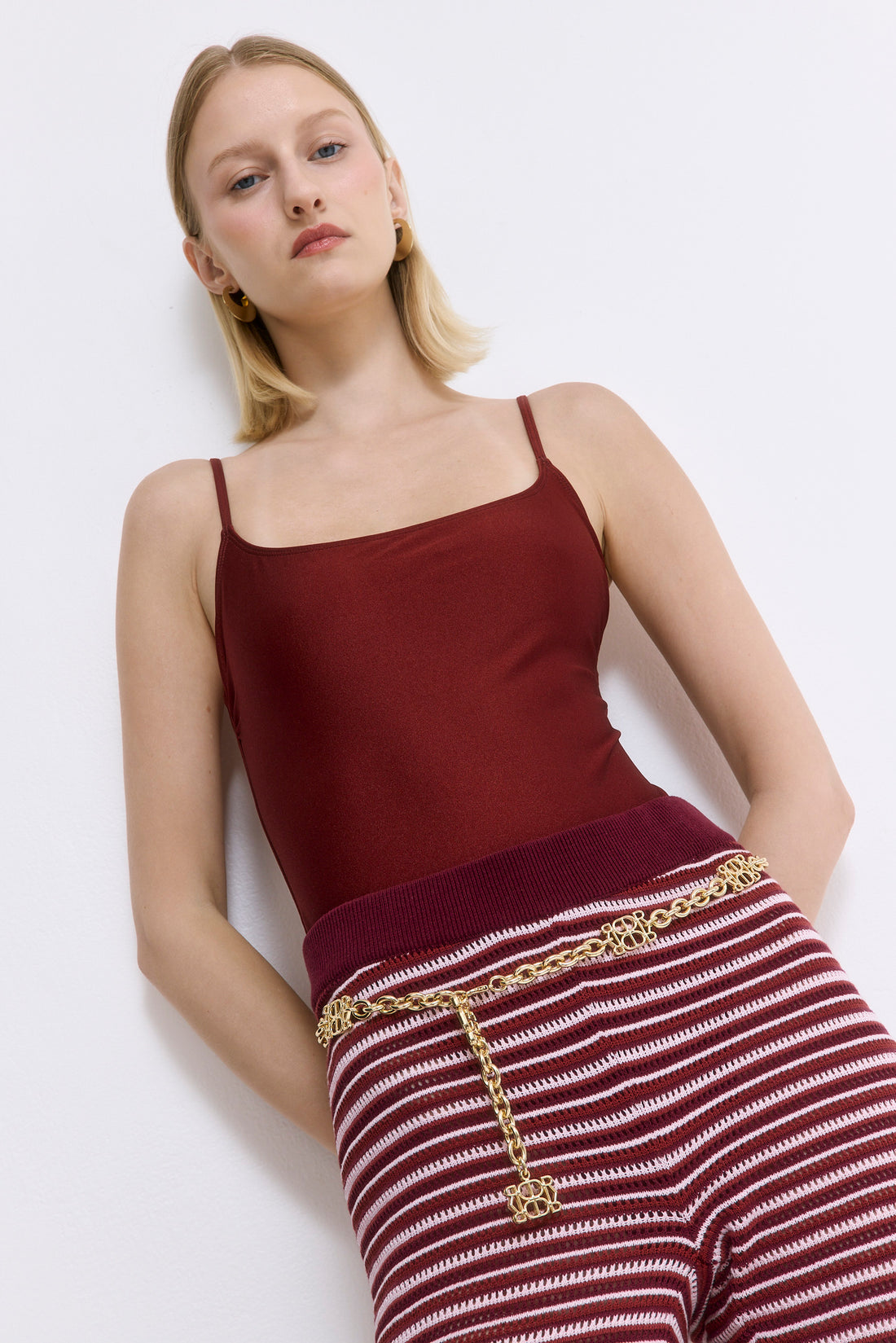 Our logo chain belt is your new summer outfit upgrader. Featuring signature logo links. Clasp closure. Adjustable length. Designed with an adjustable length to fit various waist sizes. Style it with our Lily one piece, our crochet mini tank dress and our beautiful oval sunnies for the perfect summer look.