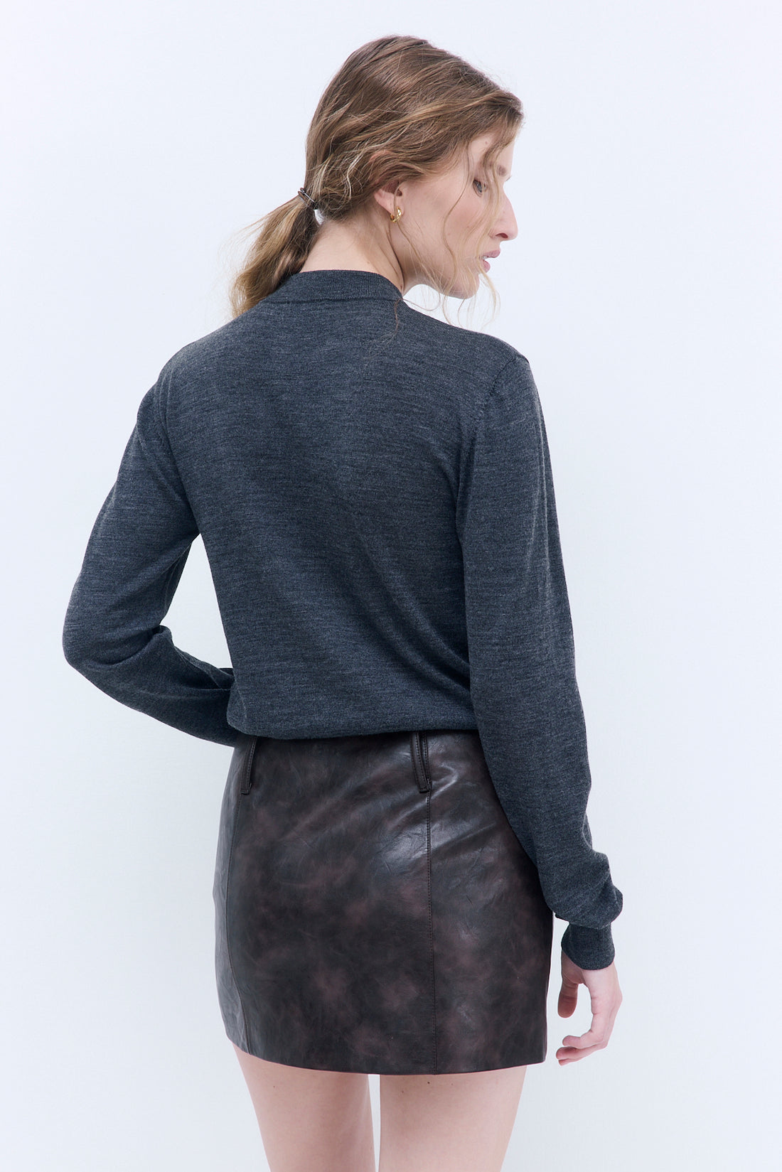The perfect winter essential. A lightweight crew neck. Fitted with subtle volume at the sleeves and hem for a modern silhouette. Finished with ribbed edges at the neckline, hems, and cuffs. Detailed with a tonal embroidered logo at the sleeve. Style it with our iconic Classic Oversized Daddy Blazer and Tapered Leg Daddy Pants for the ultimate monochromatic look.