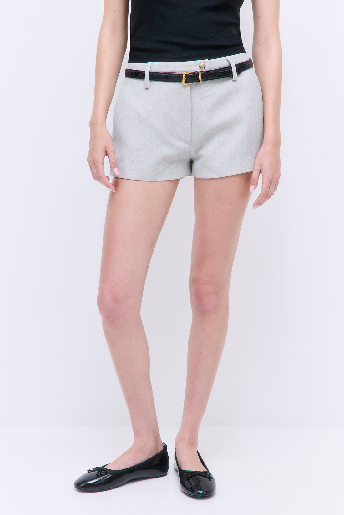Our new micro mini shorts are the ultimate addition to your wardrobe this season. Mid waisted. Two side pockets. Thin belt loops. Logo engraved snap buttons and zipper closure. Puffed embroidery tonal logo on the back. Lined. Style it with our matching classic bomber, a lightweight turtleneck knit and a pair of our cozy lettuce hem socks for a cool everyday look.