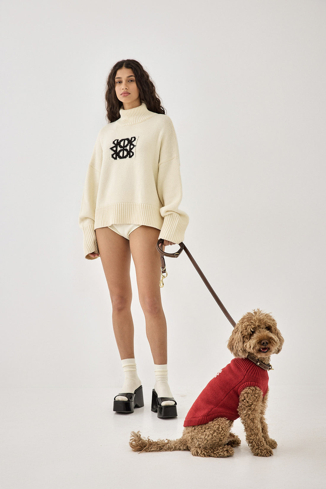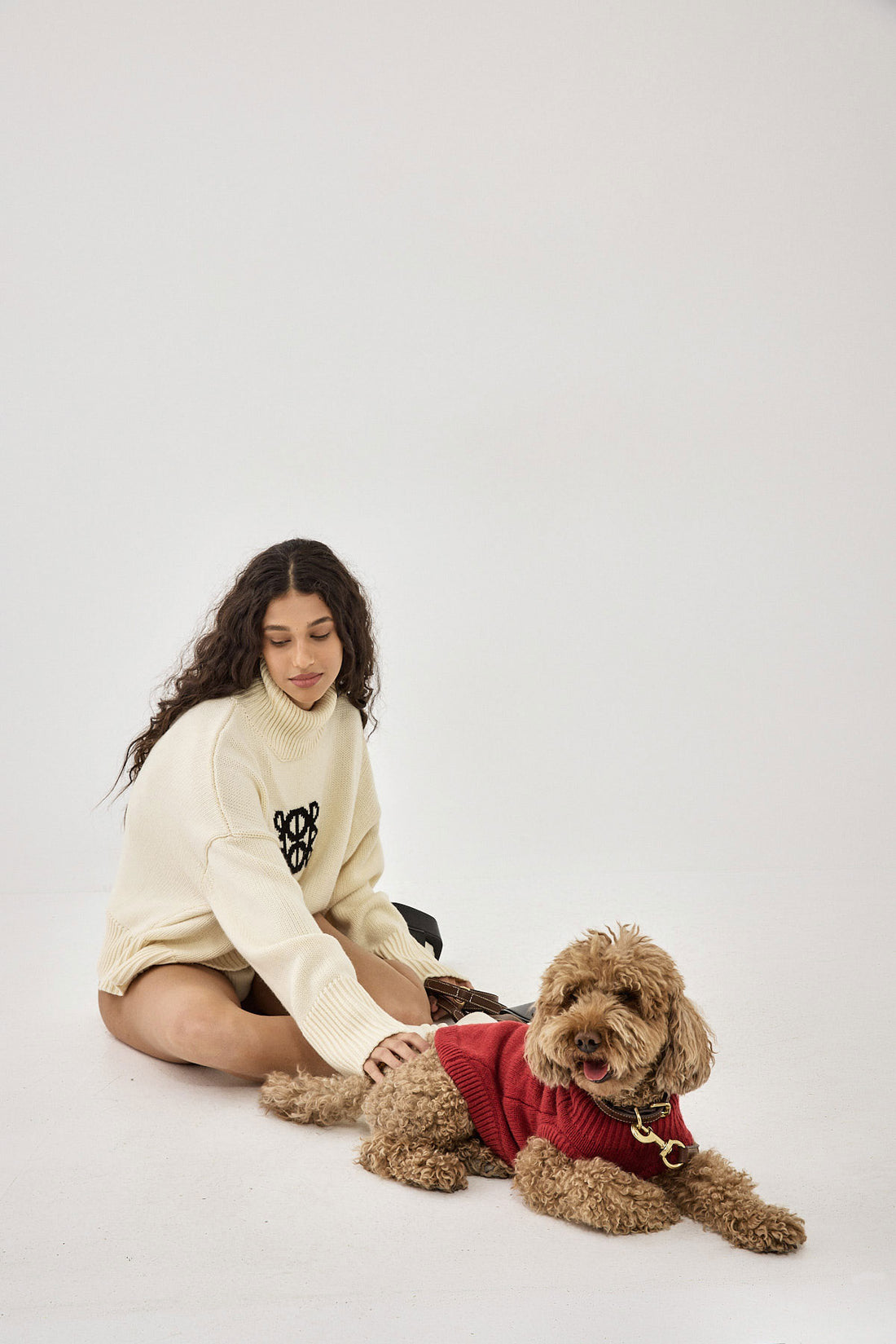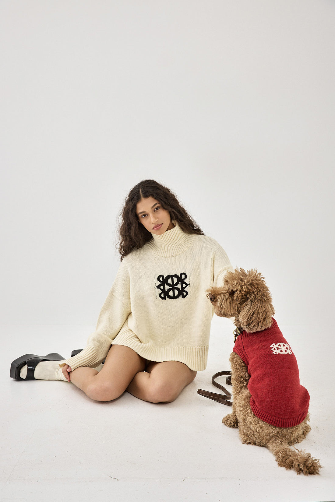 One of the most special pieces we've ever designed. The ultimate cozy sweater for our furry friends. Intarsia logo detailing. Ribbed finish. Arm holes. Because our angles deserve all of the love in the world.