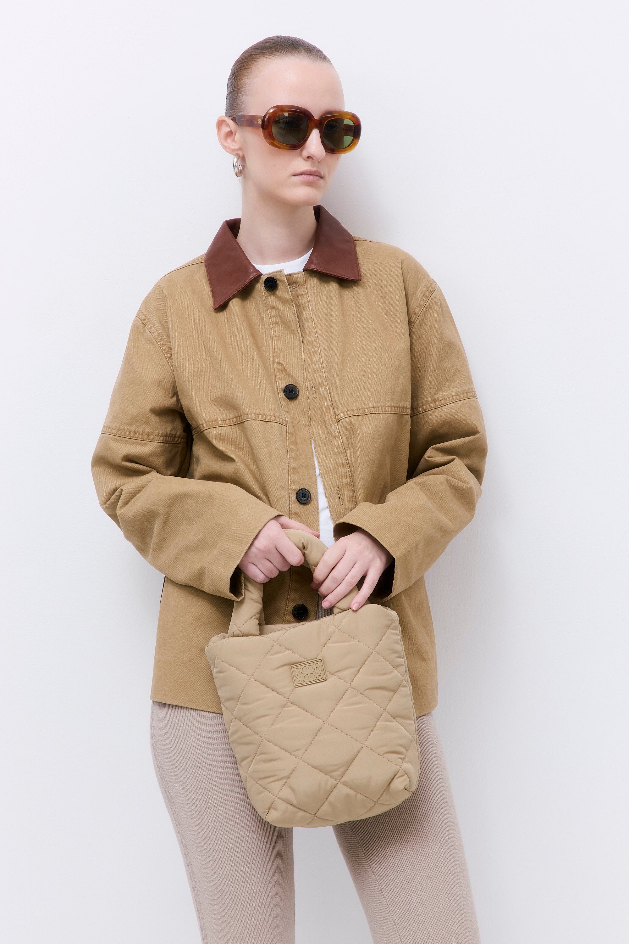 The newest addition to our Quilt Carry All Bags; versatile sizes for everyday use. Mini size Carry All. Diamond pattern. Unlined. Tonal silicon logo. Features one inside zipped pocket. Debossed tonal faux leather patch on the inside. Can carry up to 2KG. Style it with our new effortless Lounge Set and chic Cat Eye Sunglasses for an elevated, everyday look.