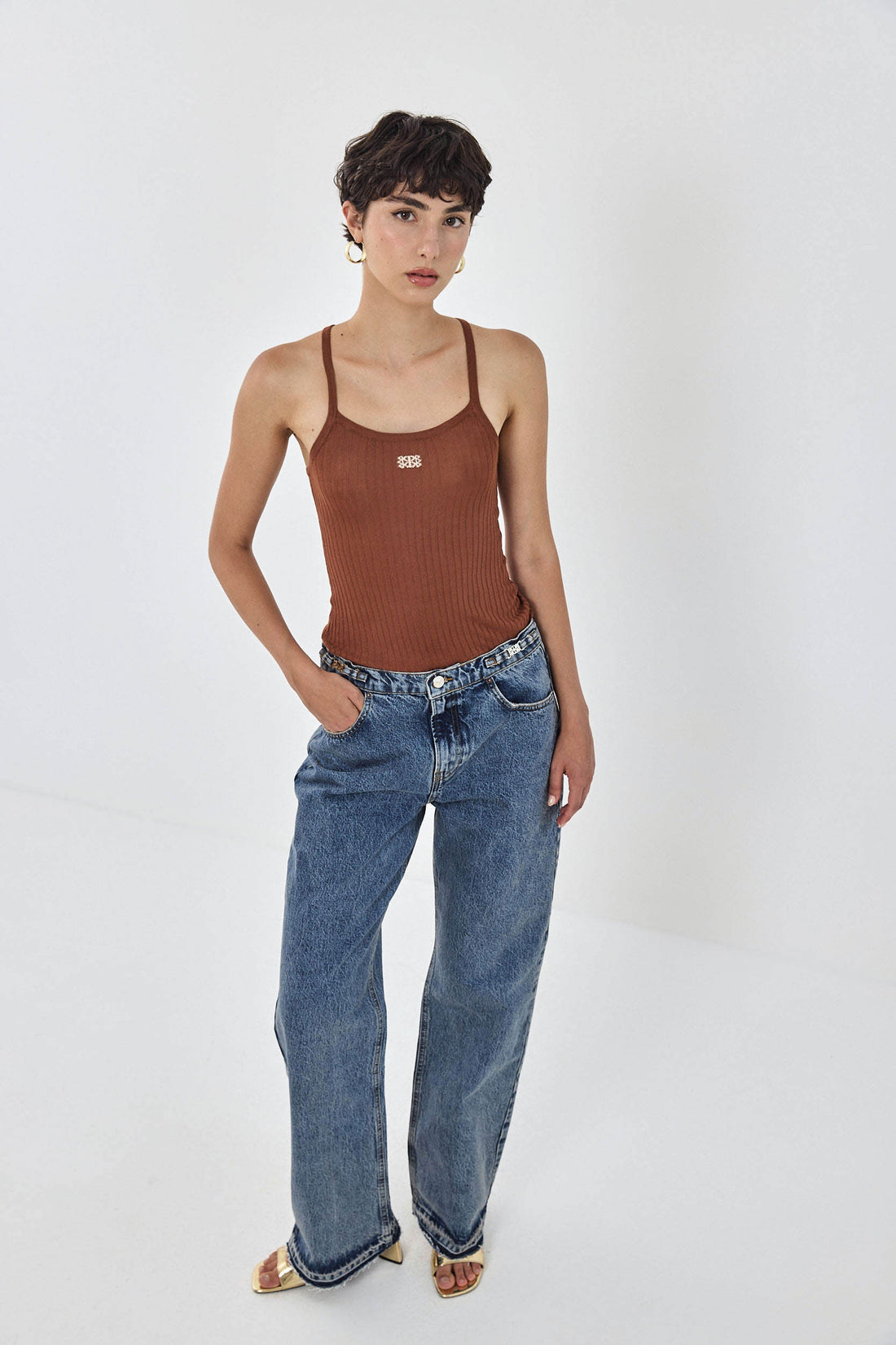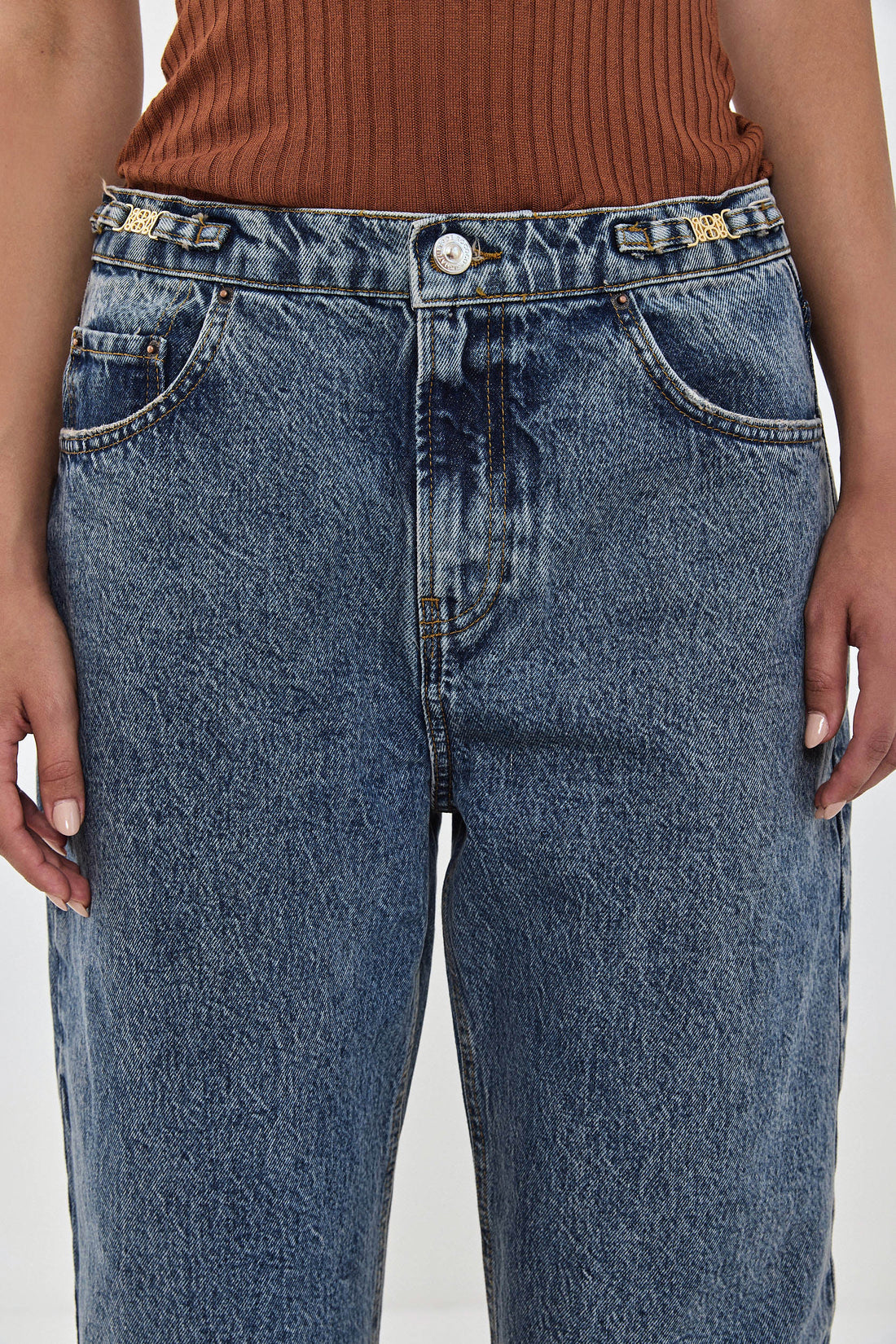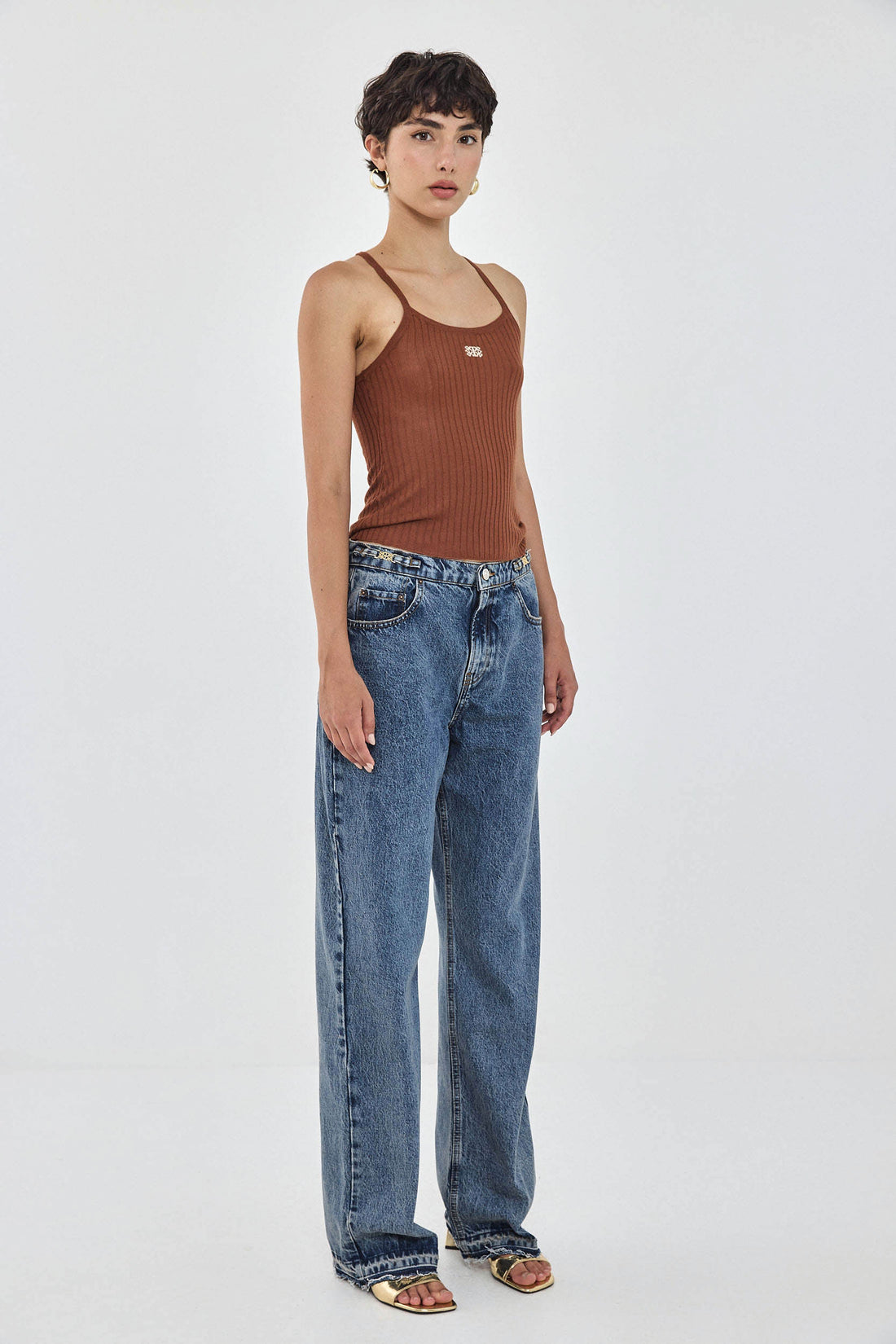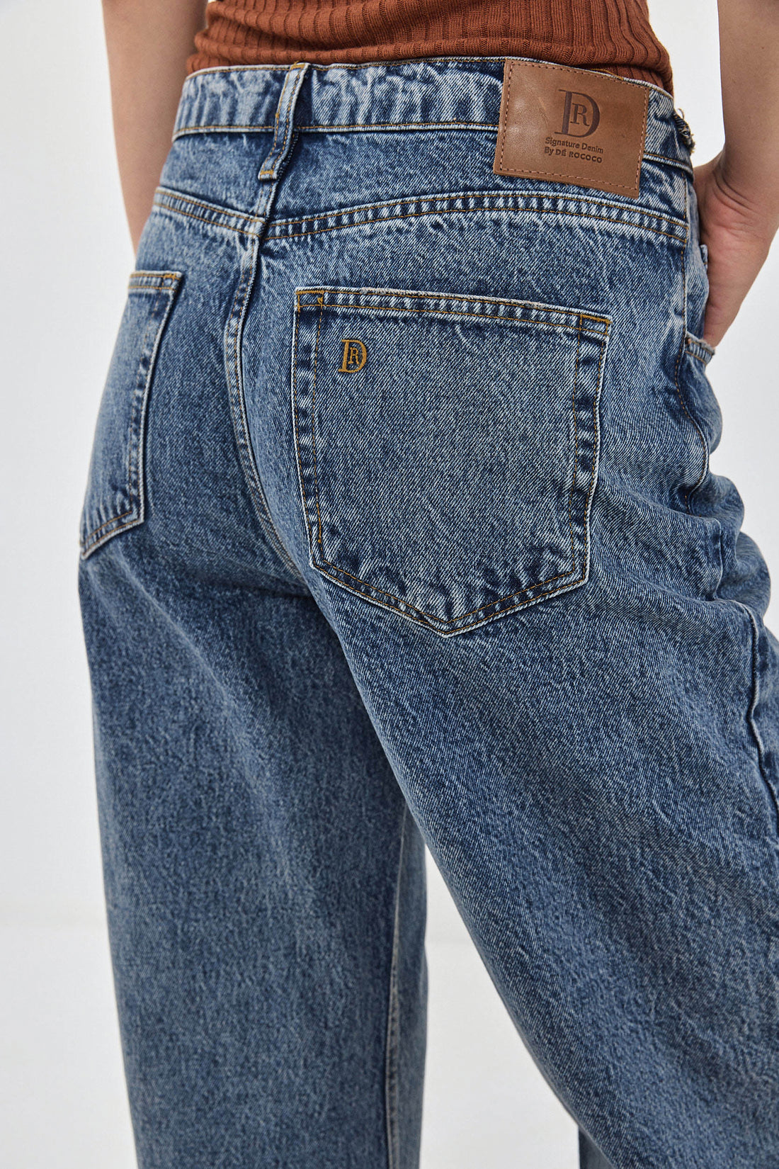 Our No.11 denim is a mid rise full length with a baggy fit. Frontal zip closure. Features a logo detail embroidered above the back pocket. Raw unfolded hemline. Meet your new go to denim. Style yours with an oversized button down and a kitten heel for an effortlessly stylish going out look.