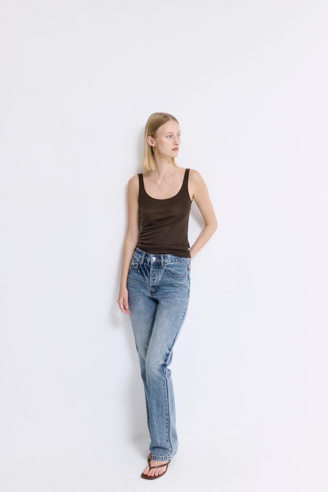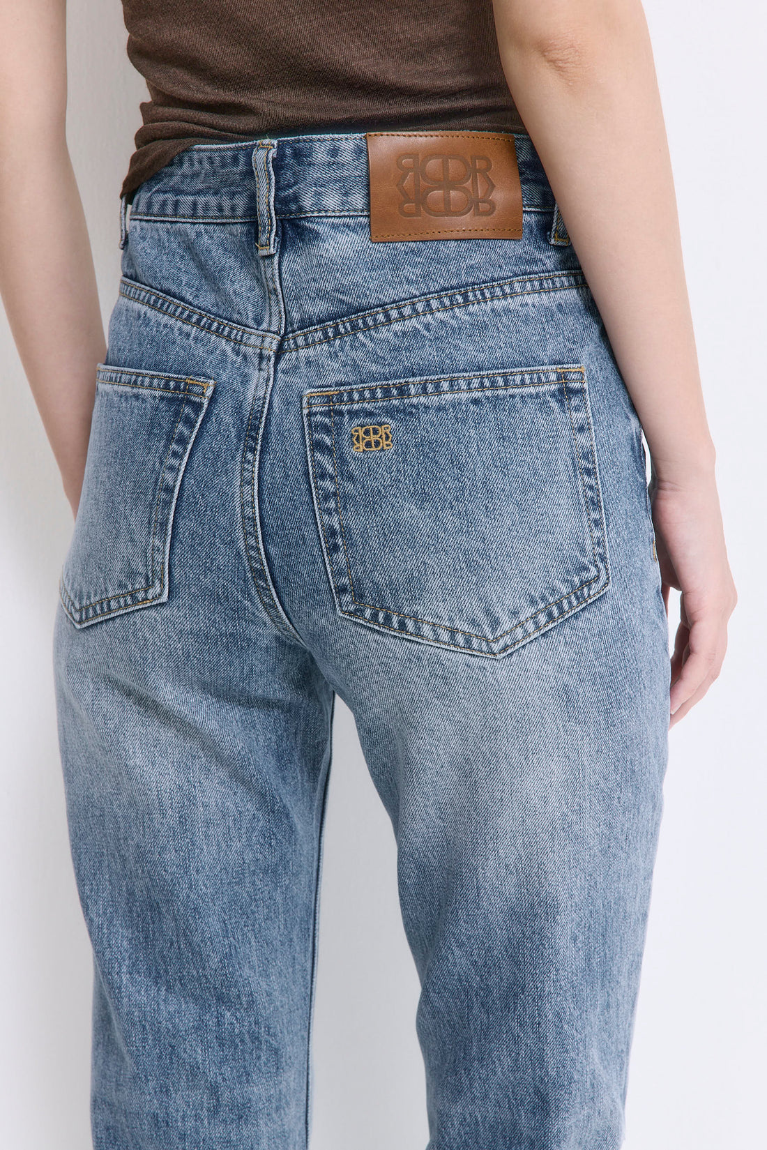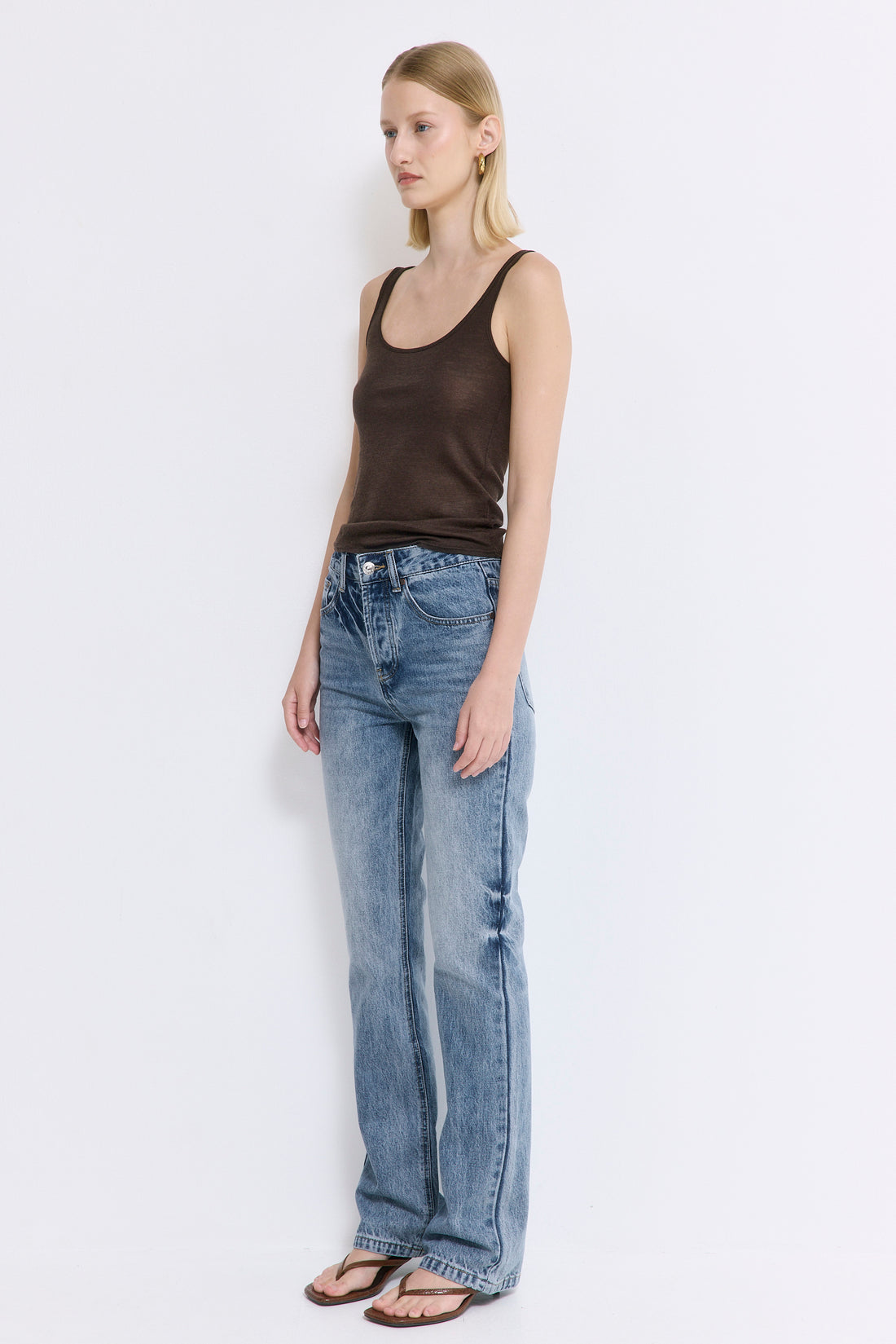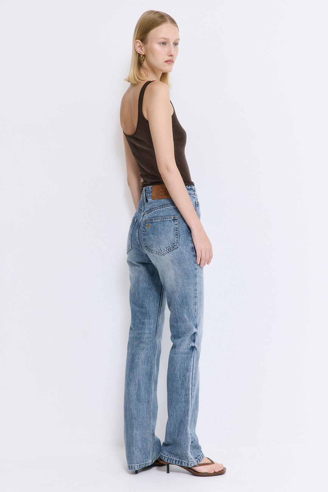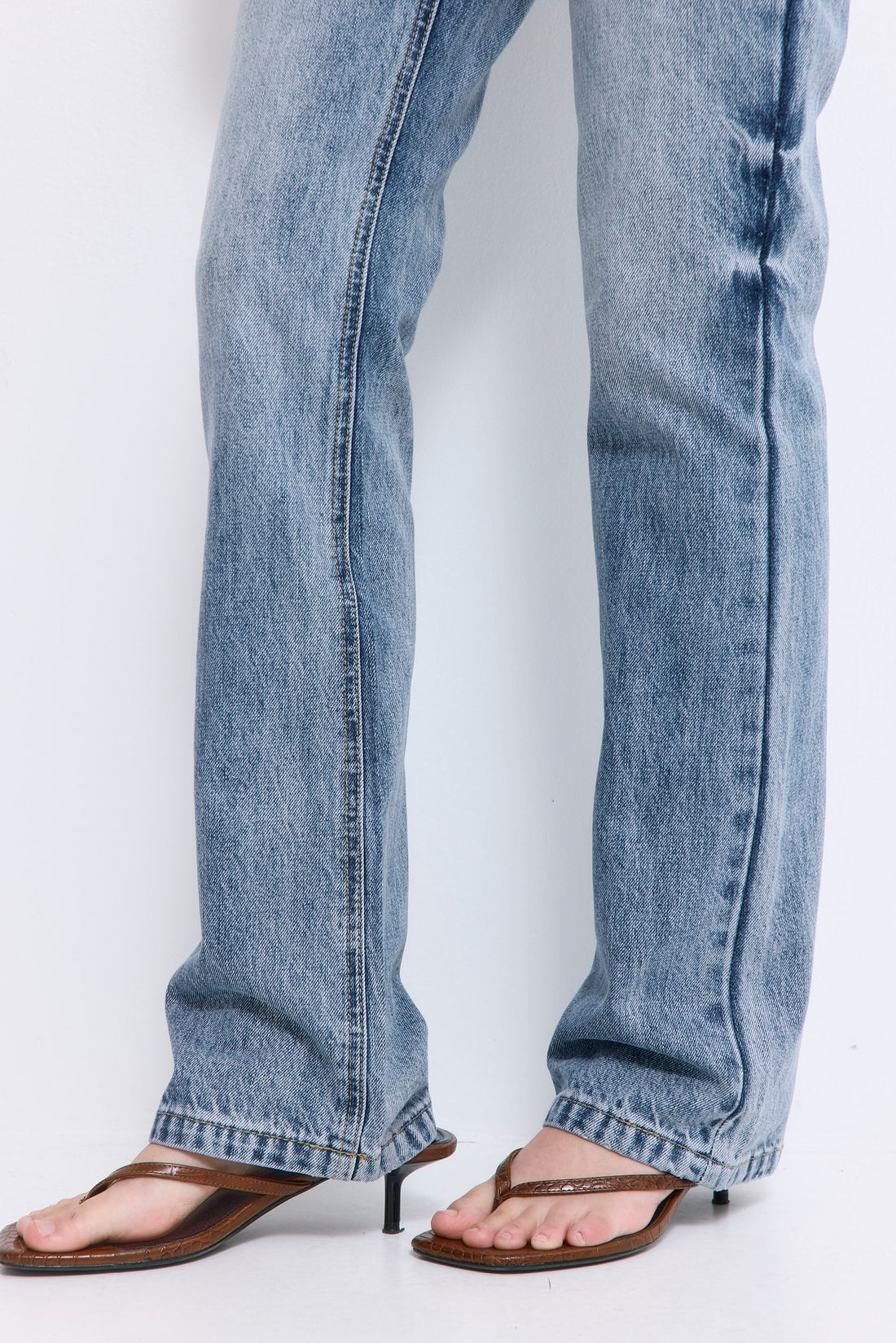Our No.14 denim is a mid-waist, full-length bootcut that combines timeless design with a modern edge. Featuring a flattering silhouette that elongates the legs, it’s crafted for ultimate comfort and style. A classic buttoned closure and subtle detailing ensure versatility for any occasion. Style it with our lightweight turtle neck knit, our oval sunnies and throw our cool classic bomber for a chic everyday look.