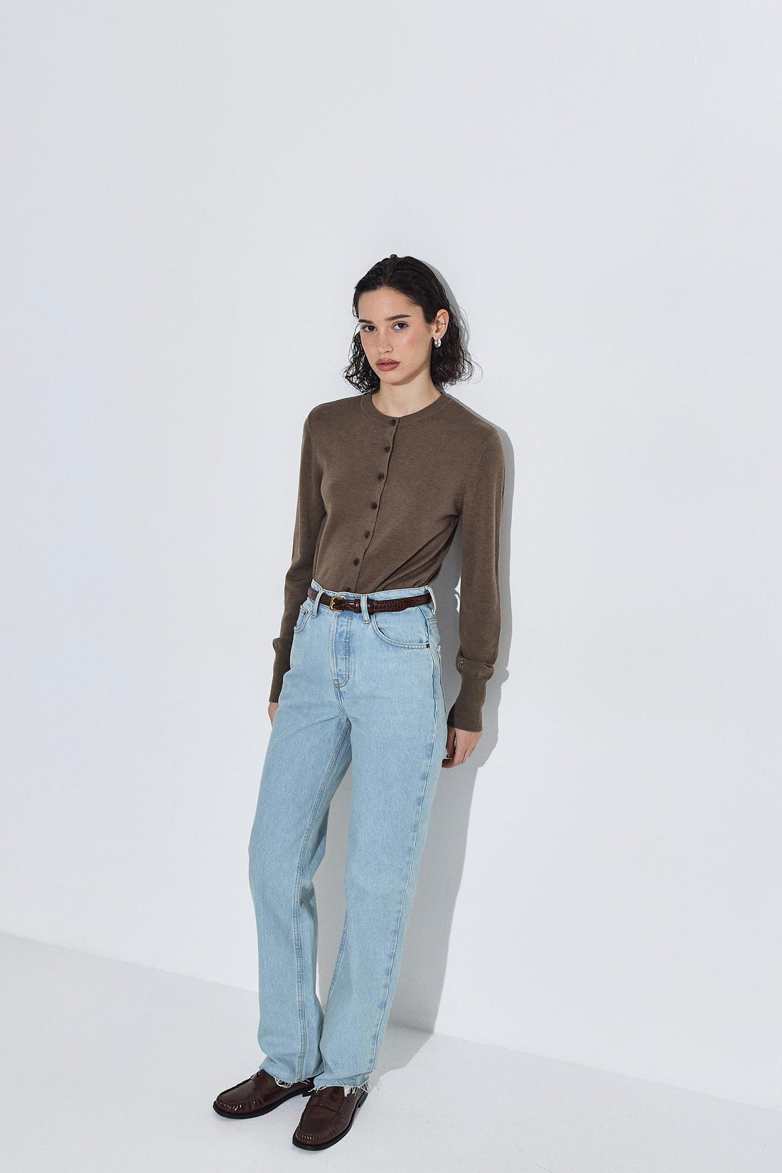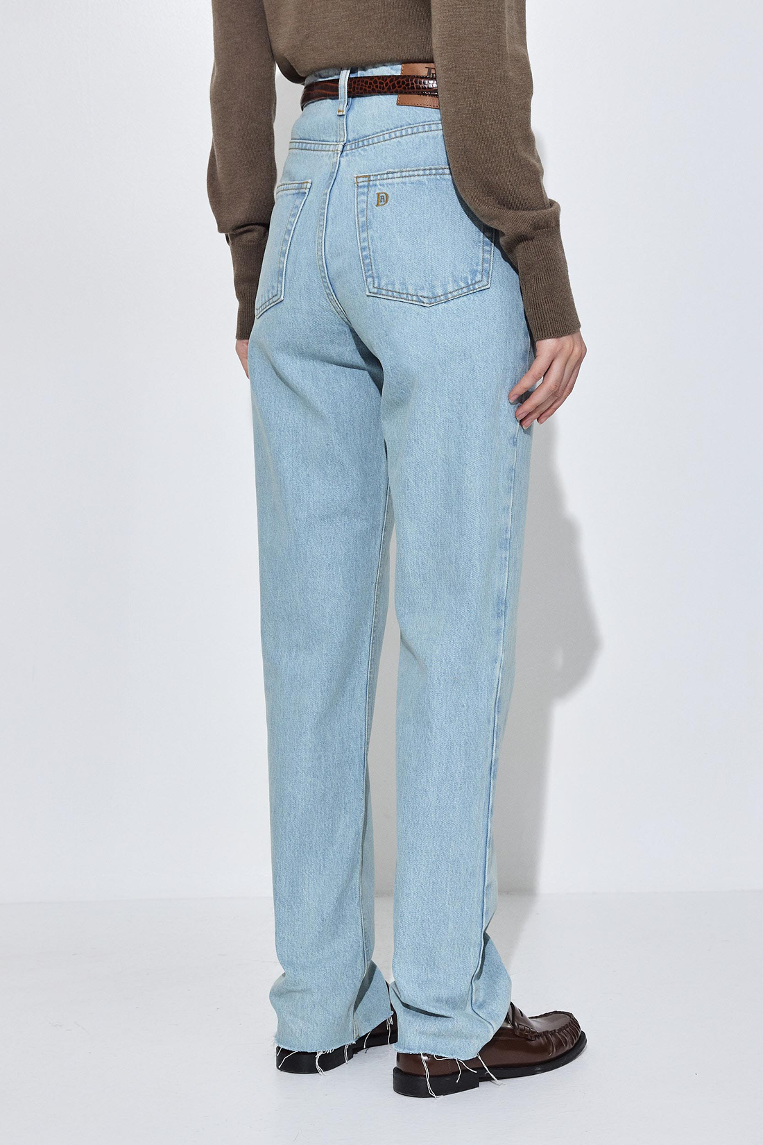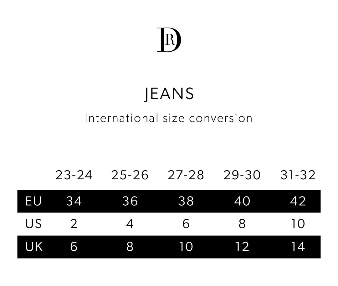 Our No.6 denim is a high waisted full length fit. An essential addition to your wardrobe. Front buttoned closure. Raw cut hemline. Features a logo detail embroidered at the back pocket. Style it with your favorite basic top and a pair of slides for an effortless everyday look.