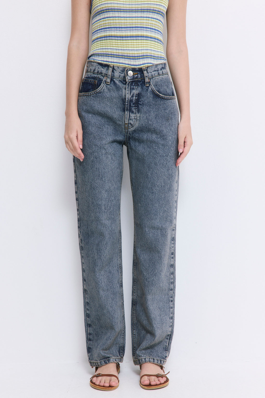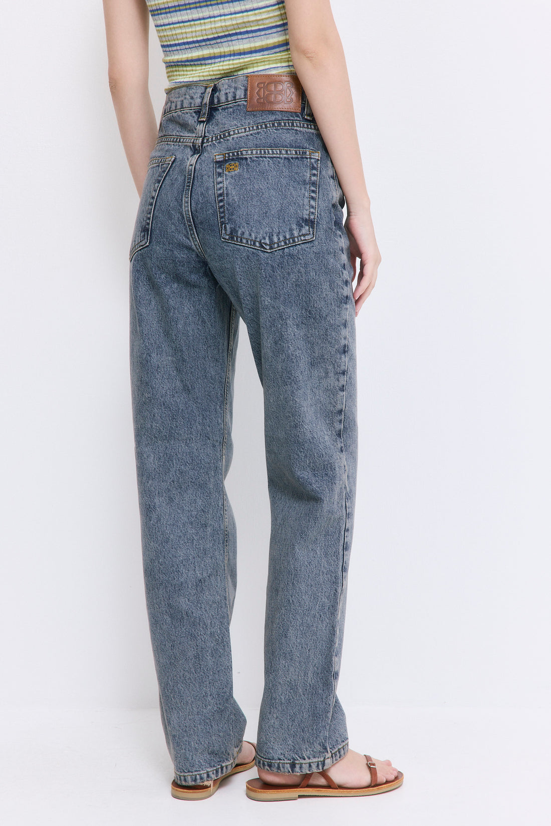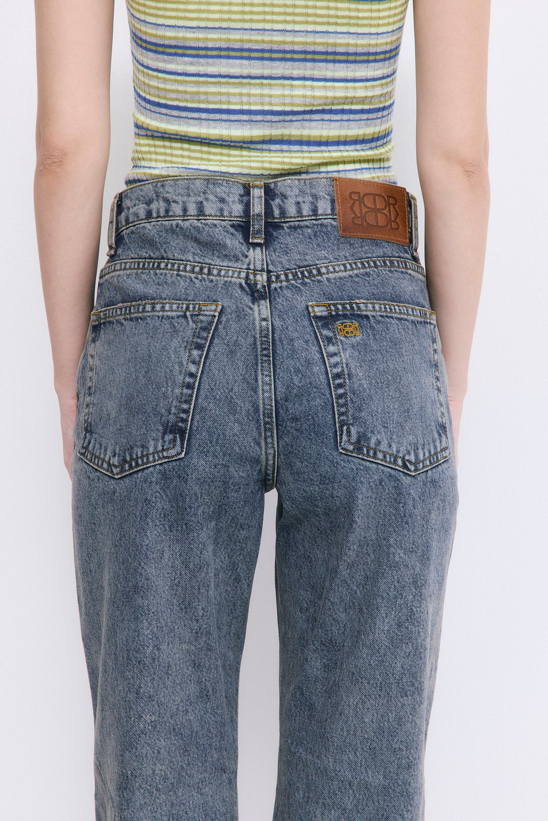 Our No.6 denim is a high waisted full length fit. An essential addition to your wardrobe. Front buttoned closure. Features a logo detail embroidered at the back pocket. Style it with your favorite basic top, a pair of hoop earrings and a kitten heel for the ultimate effortless look.