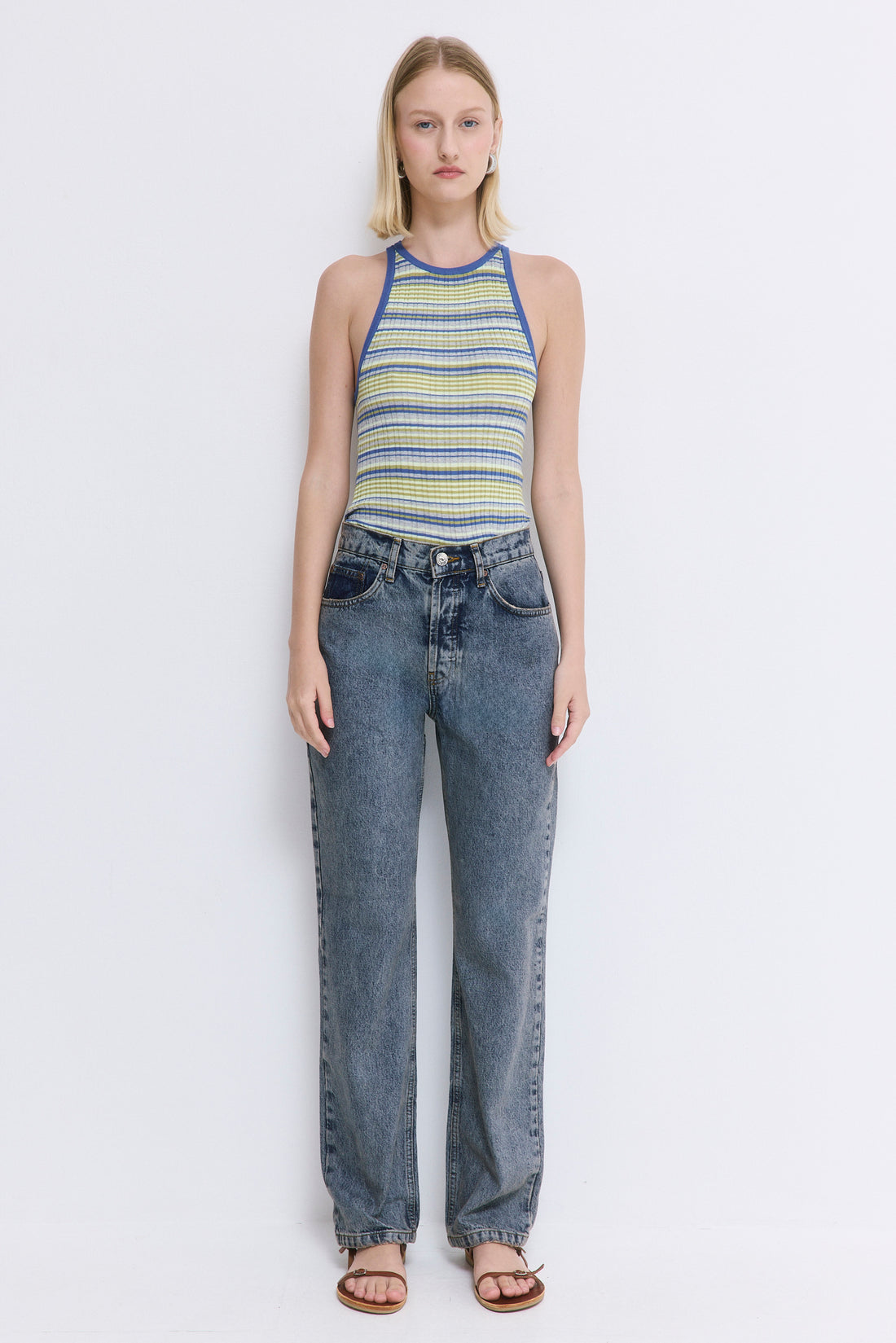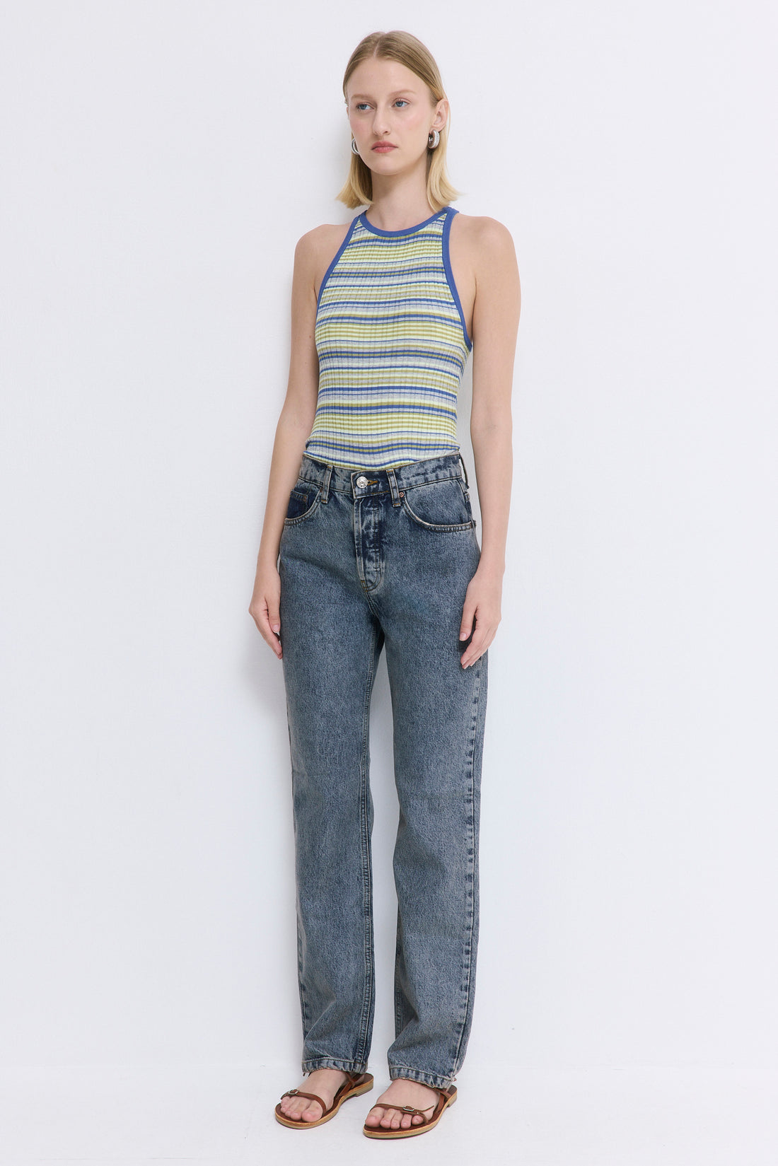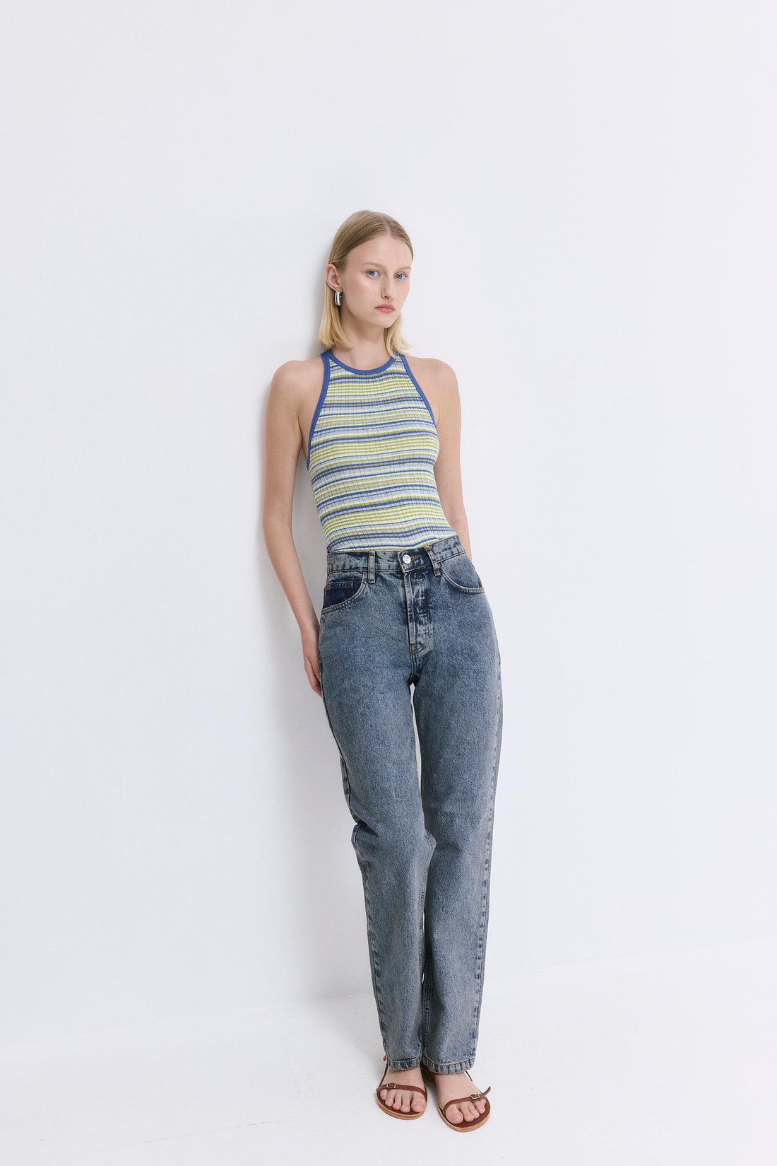 Our No.6 denim is a high waisted full length fit. An essential addition to your wardrobe. Front buttoned closure. Features a logo detail embroidered at the back pocket. Style it with your favorite basic top, a pair of hoop earrings and a kitten heel for the ultimate effortless look.