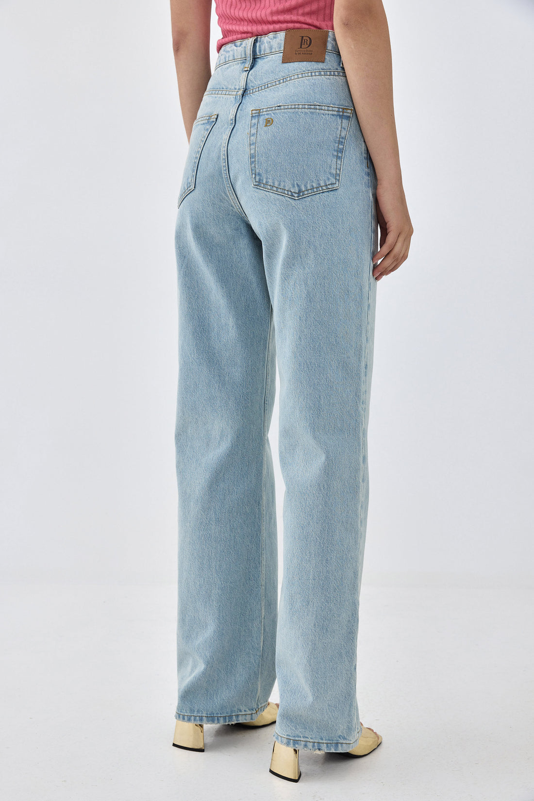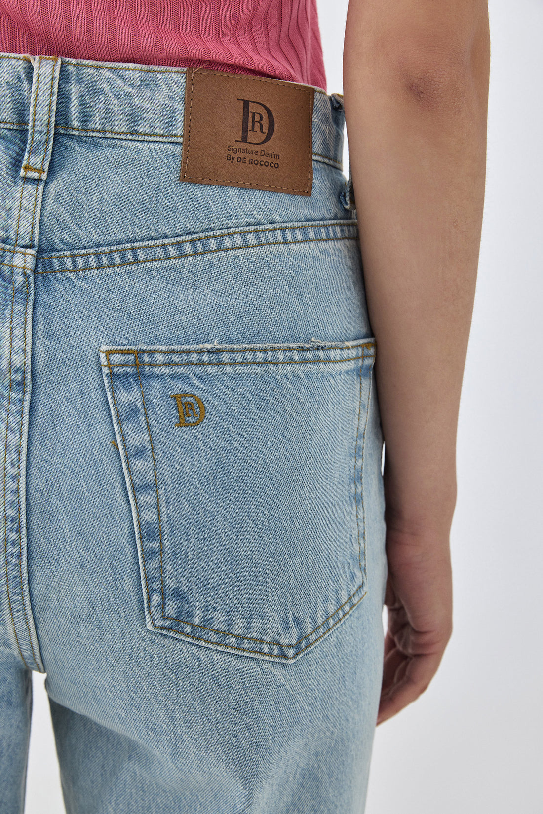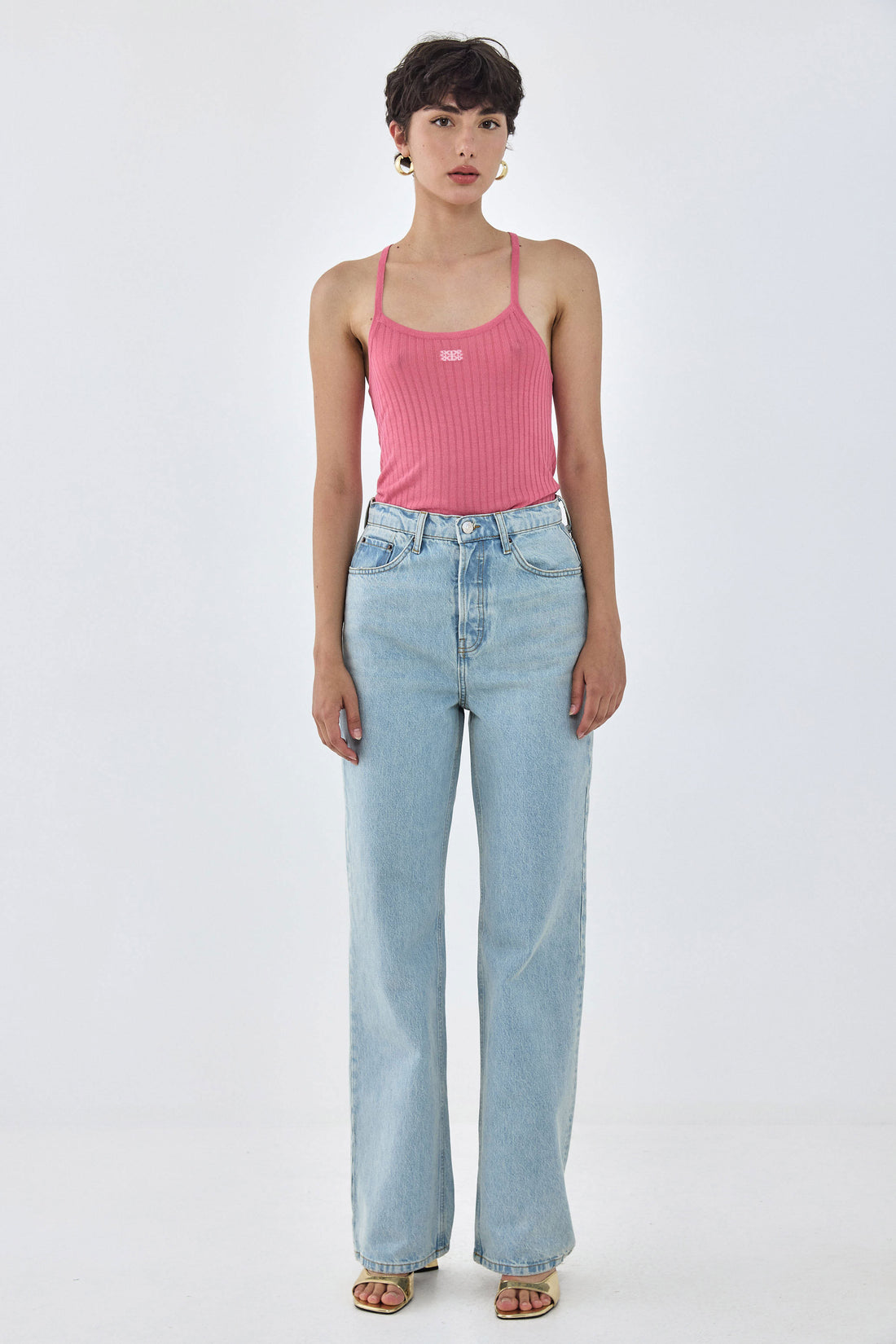 Our No.8 denim is a wide leg full length fit. The perfect addition to your wardrobe, a pair of denim that transcends seasonality. Front buttoned closure. Features a logo detail embroidered at the back pocket. Style yours with your favorite tank top and a pair of sneakers for the ultimate cool girl look.