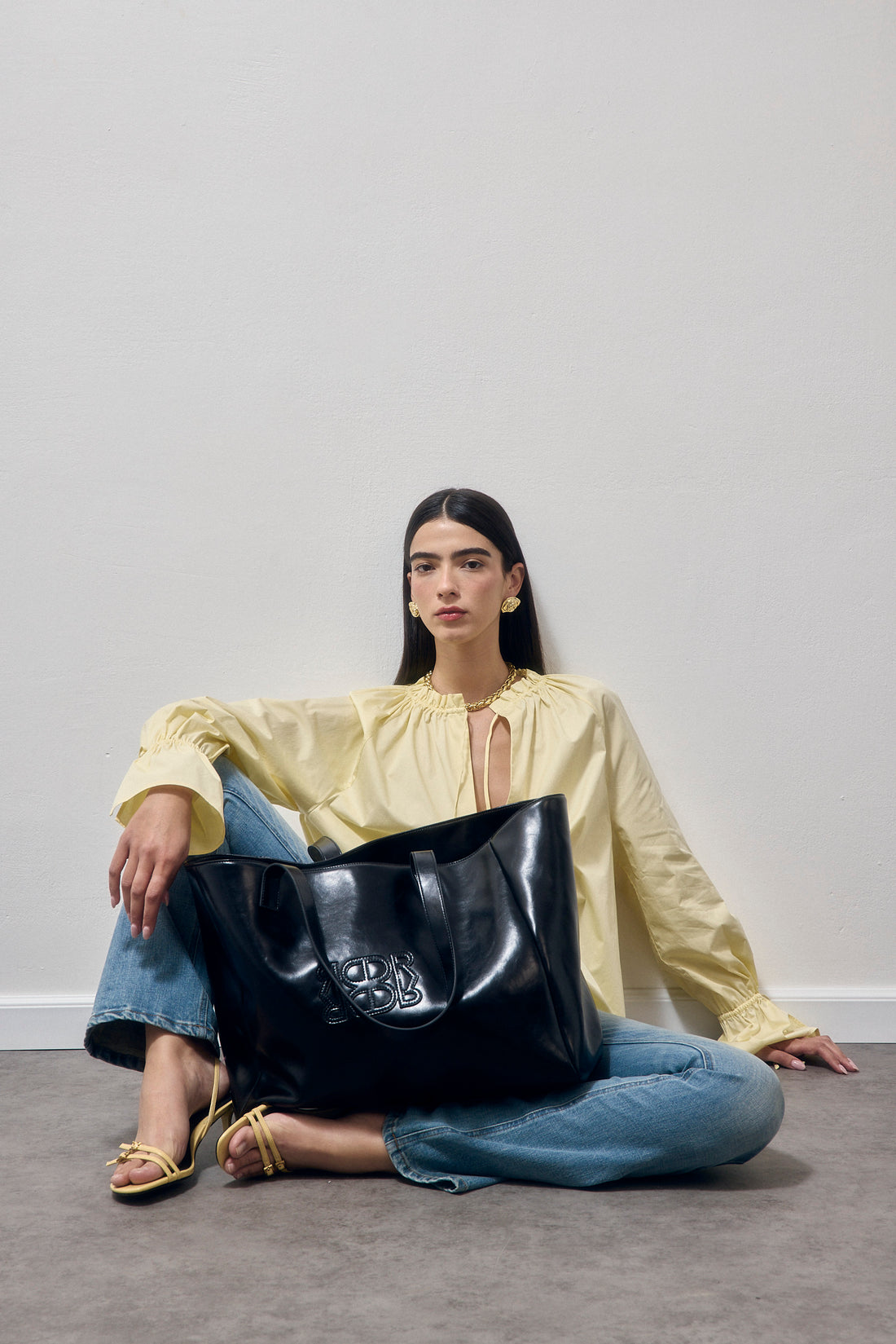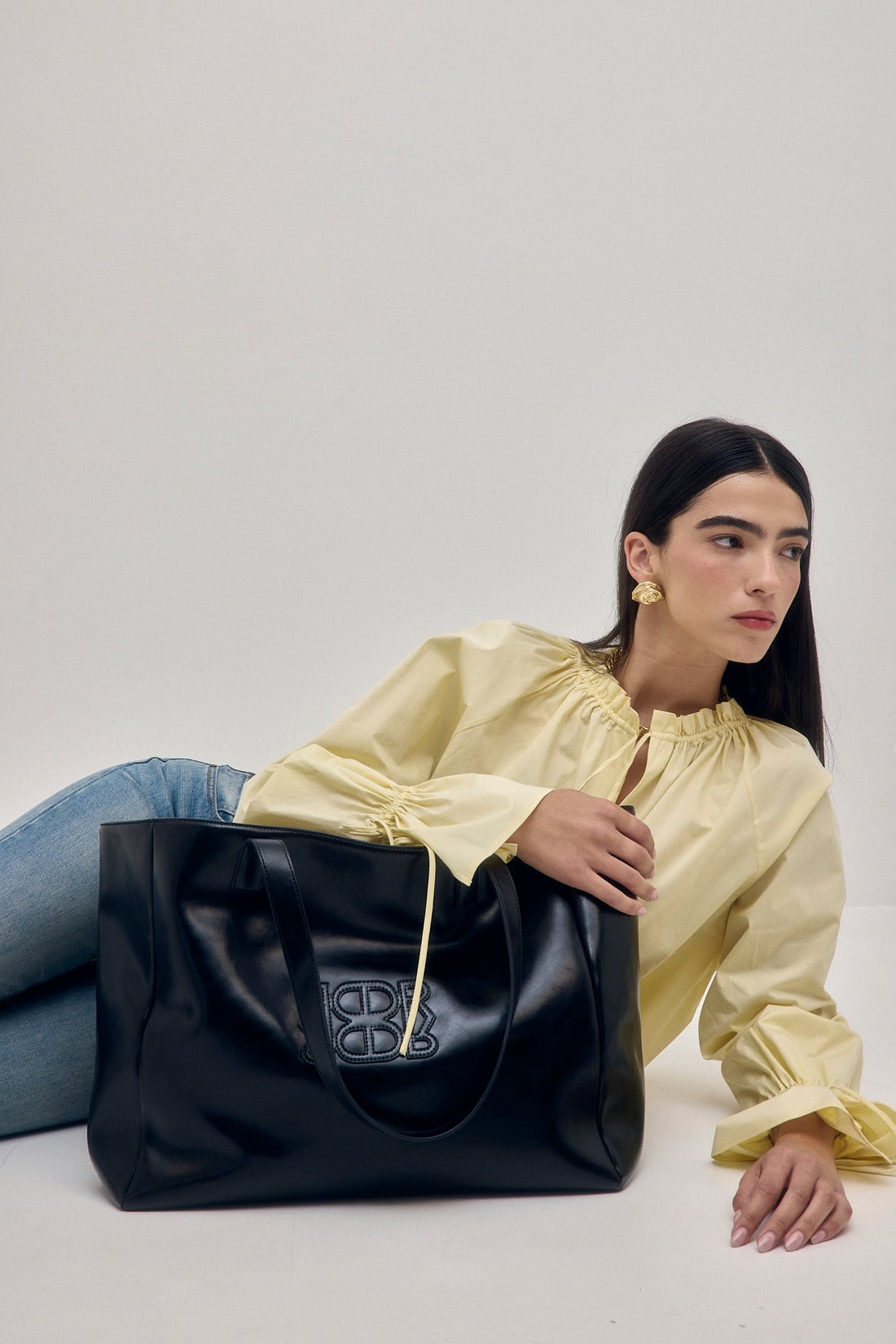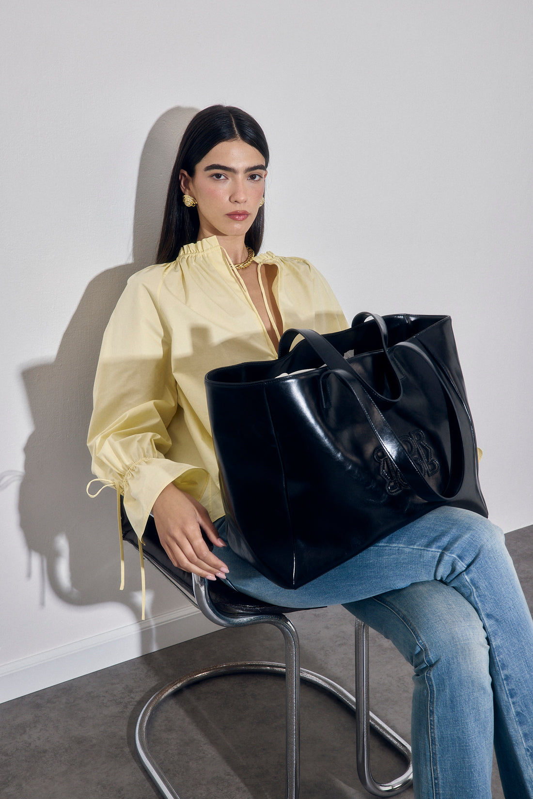 Crafted with a lot of love from the finest genuine leather, the Rodika Tote was designed to carry all of your most prized possessions. Featuring the chicest tonal detailing, our new leather Rodika blends everyday practicality with effortless elegance and timeless appeal. Large open tote shape. Made from high-shine genuine leather. Twin flat shoulder straps for a comfortable carry. Tonal leather logo patch at center front. Open top with wide interior compartment. Internal zip pocket and slip pocket for organization. Branded leather patch and logo zipper pull. Fully lined interior. Includes a branded dust bag for safe storage and protection. Clean finish with minimal stitching. Designed to hold up to 4 kg with ease. Our beautiful Rodika was made to carry your essentials from day to night, season after season. Crafted just for you—so treat it with plenty of love.