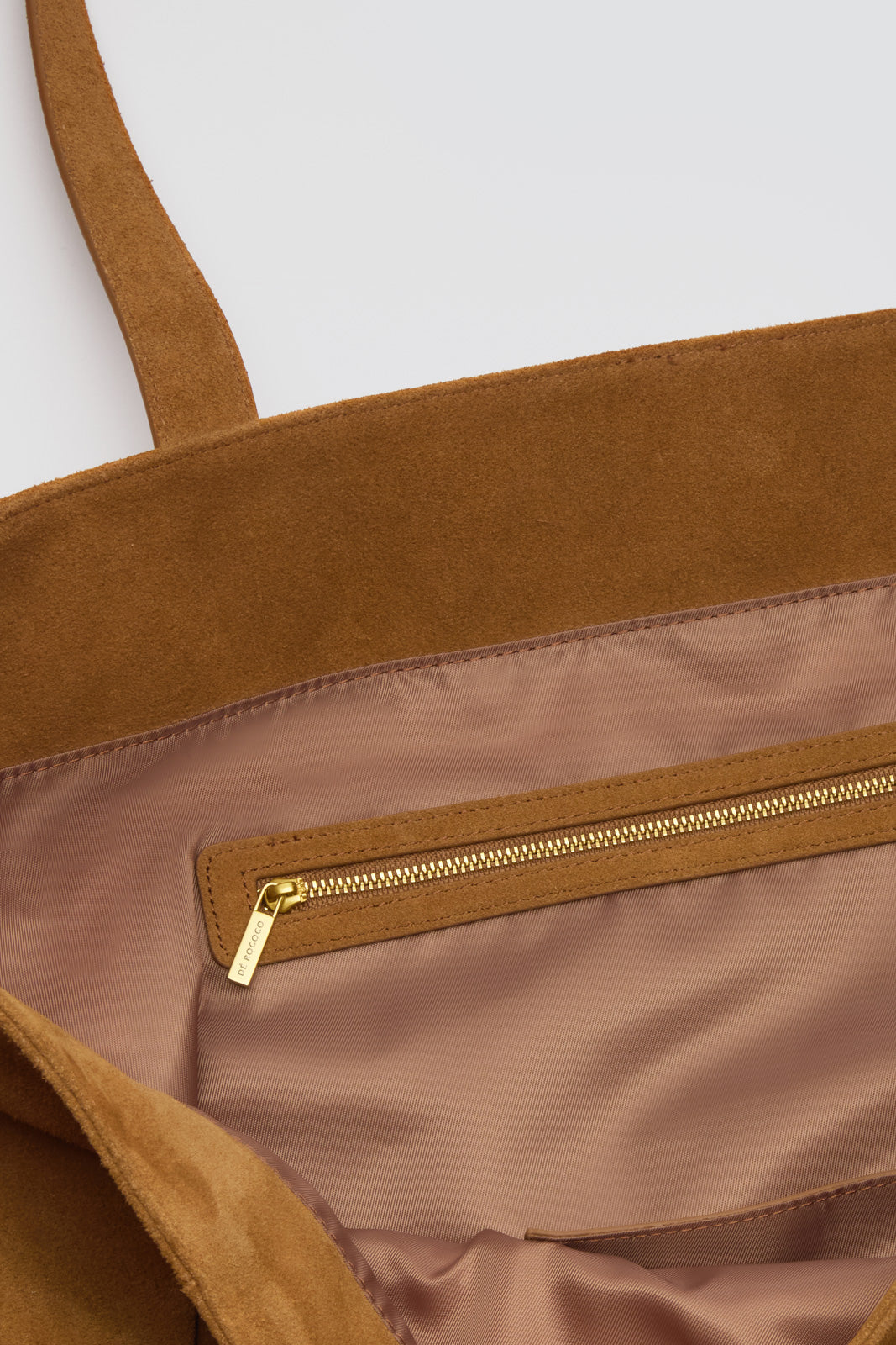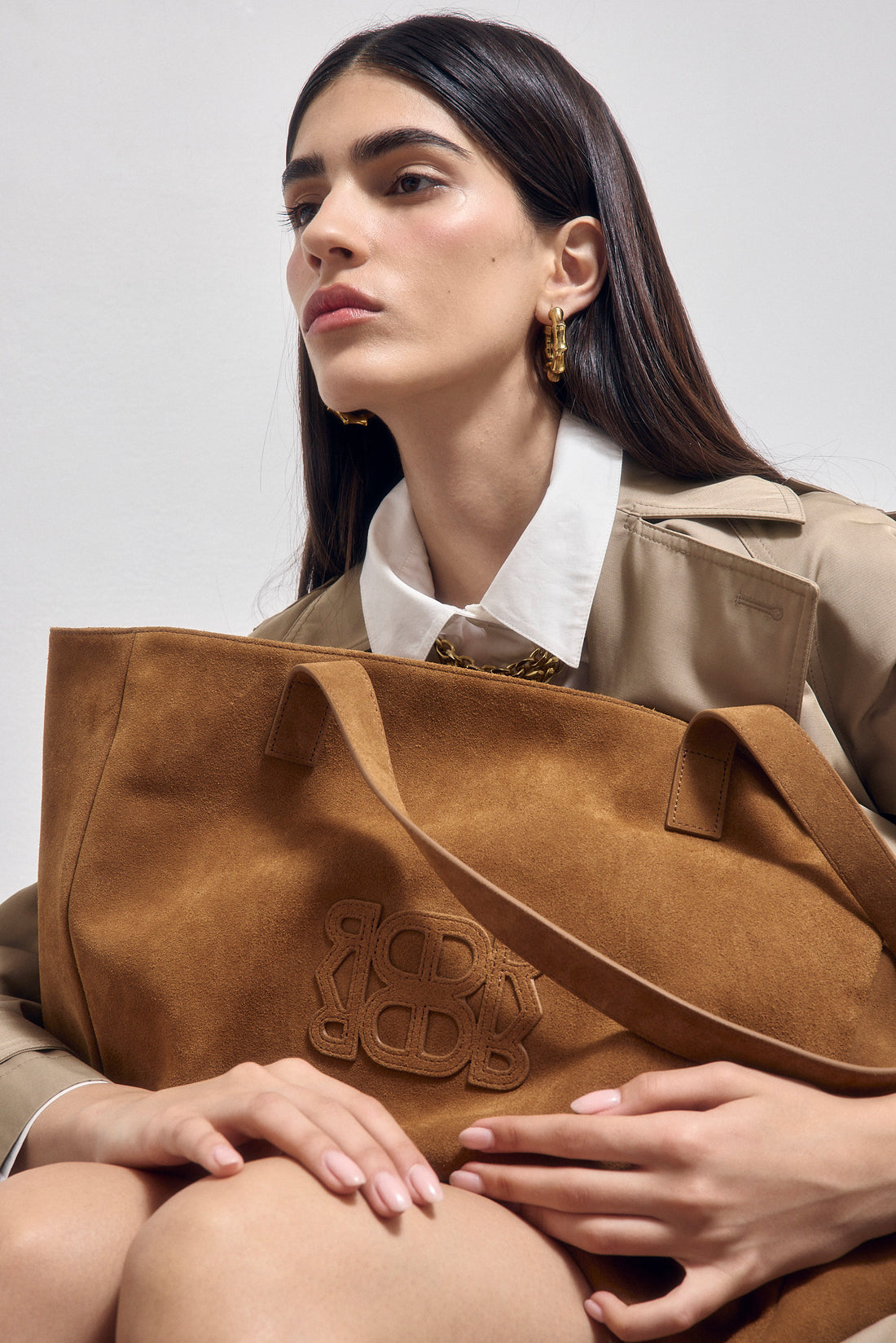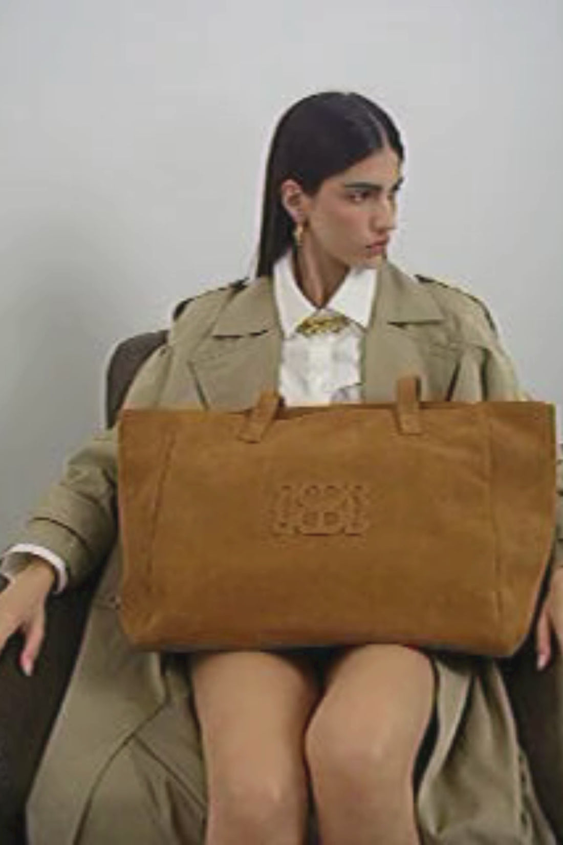 Crafted with a lot of love from the finest genuine leather, the Rodika Tote was designed to carry all of your most prized possessions. Featuring the chicest tonal detailing, Our new Rodika blends everyday practicality with effortless elegance and timeless appeal. Large open tote shape. Made from soft, rich suede leather. Twin flat shoulder straps for a comfortable carry. Tonal leather logo patch at center front. Open top with wide interior compartment. Internal zip pocket and slip pocket for organization. Branded leather patch and logo zipper pull. Fully lined interior. Clean finish with minimal tonal stitching. Includes a branded dust bag for safe storage and protection. Designed to hold up to 4 kg with ease. Our beautiful Rodika tote bag was made to carry your essentials from day to night, season after season. Crafted just for you—so treat it with plenty of love.