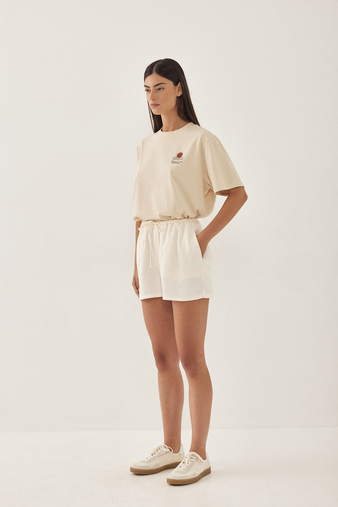 High waisted relaxed satin shorts. Features a delicate drawstring and two side pockets. Made from breathable material. Cut in a special bias cut technique so that the materials falls smoothly and moves with your body. Style it with the matching satin top for the perfectly chic everyday look.