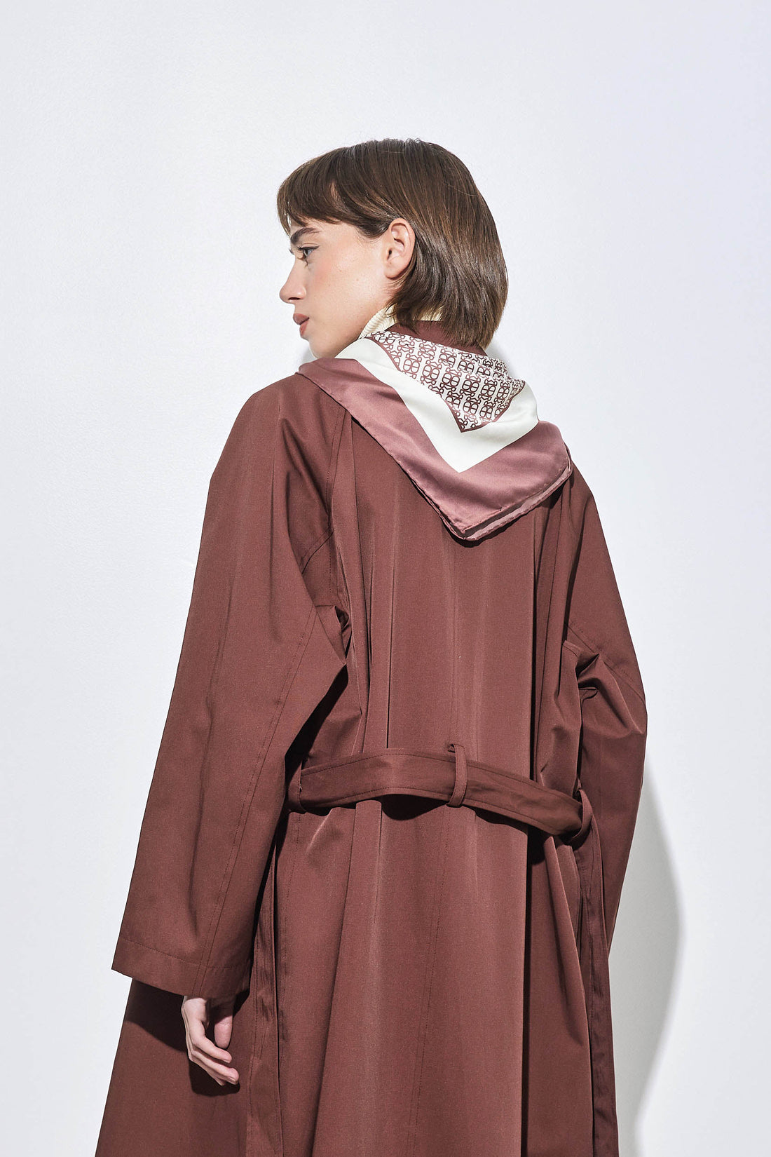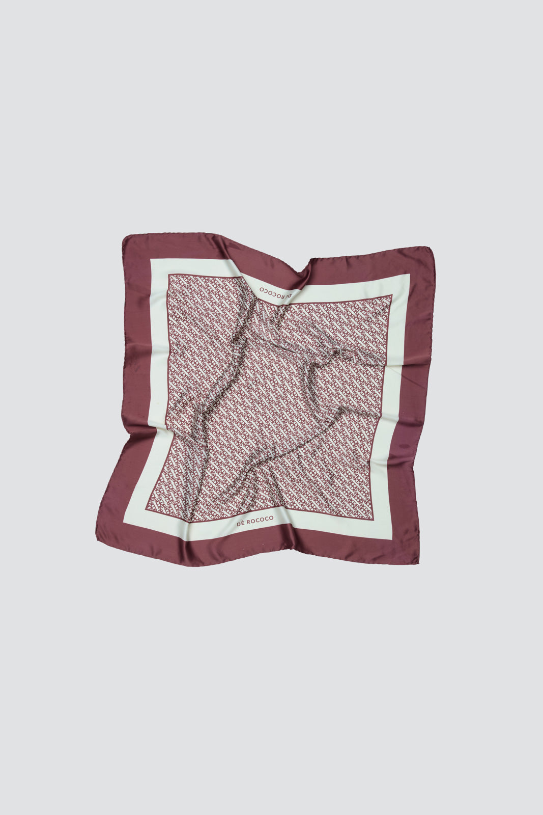 Upgrade your winter wardrobe with our luxurious scarf. Designed for a silky smooth feel in a rich burgundy hue. Featuring a screen-printed design, subtle framing and an invisible finish. It's the perfect chic accessory for chilly days. Style it with our long sleeved ribbed knit, a pair of our new denim, our DR croco belt and throw a vegan leather bomber on top to seal this cool look.
