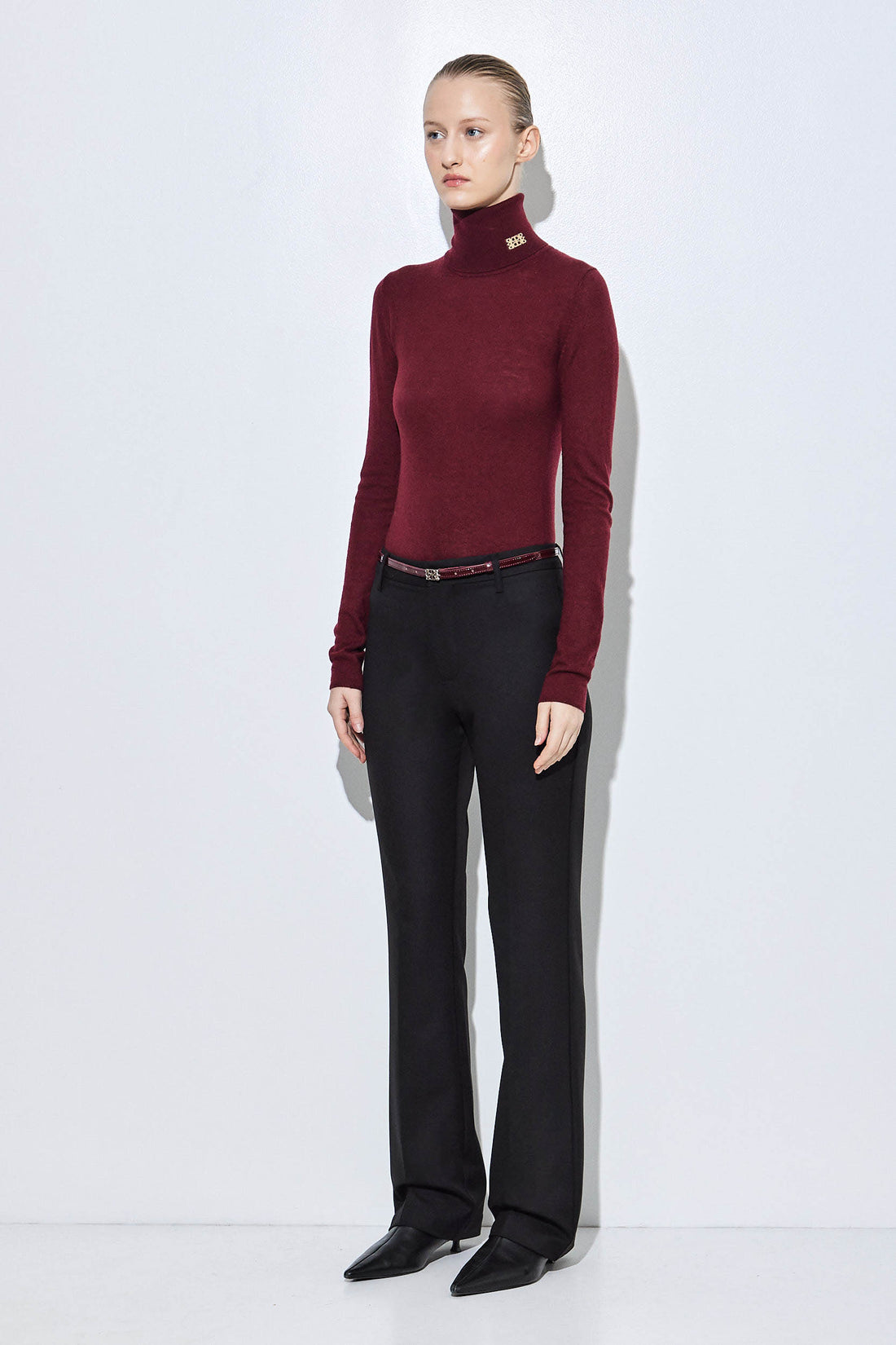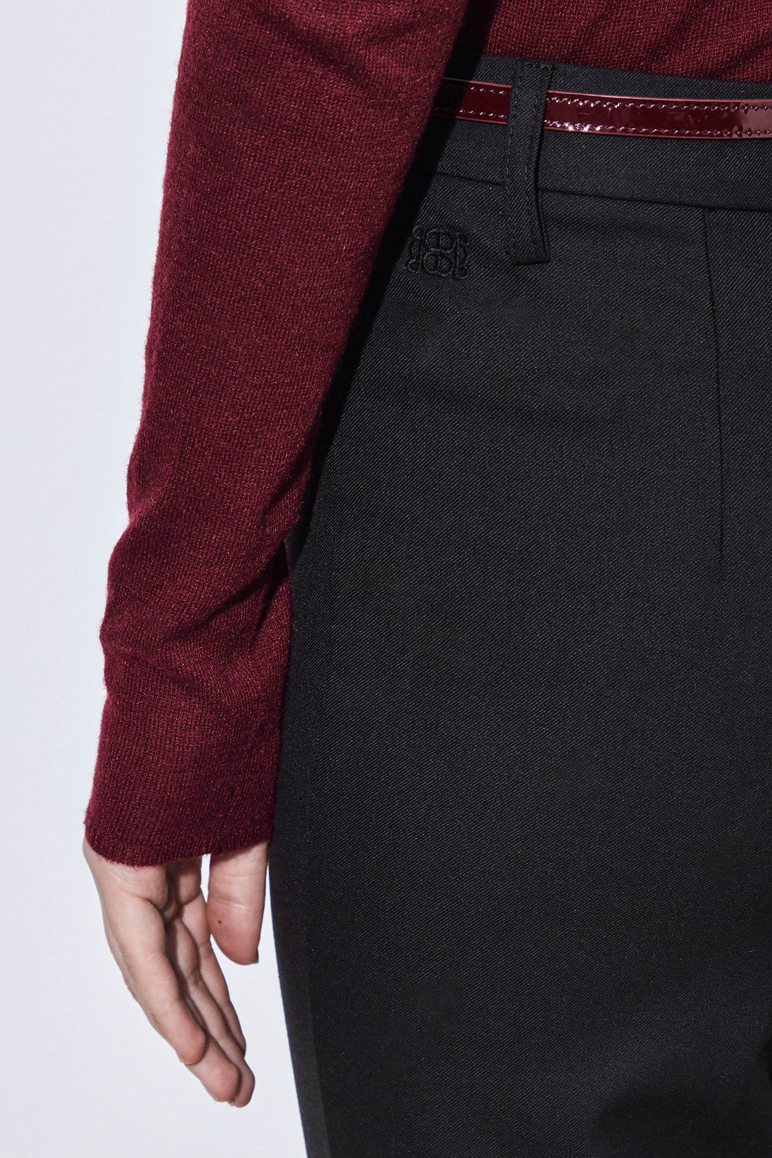 Our new bootcut daddy pants are your new go-to bottoms in a new luxurious tailored fabric. Mid waisted. Bootcut fitted silhouette. Front zipper and metal hook closure. Unlined. Belt loops. Full length. Tonal embroidered logo on the back. Style it with our tailored daddy vest and throw our tailored daddy blazer on top for a classy and chic look.