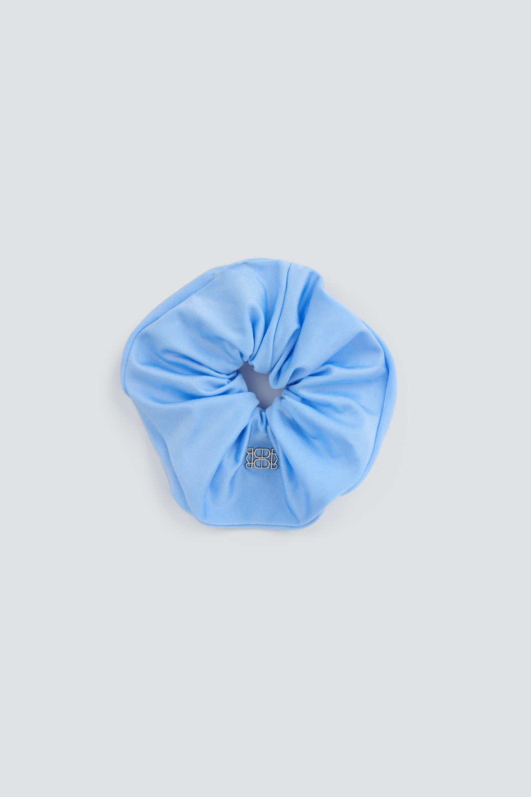 The cutest scrunchie you'll own. Luxurious shiny fabric. Silver metallic logo detailing on the center. Style it with our matching bikini for chic and playful summer look.
