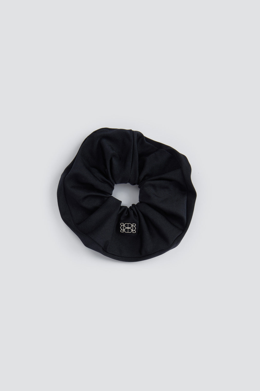 The cutest scrunchie you'll own. Luxurious shiny fabric. Silver metallic logo detailing on the center. Style it with our matching bikini for chic and playful summer look.