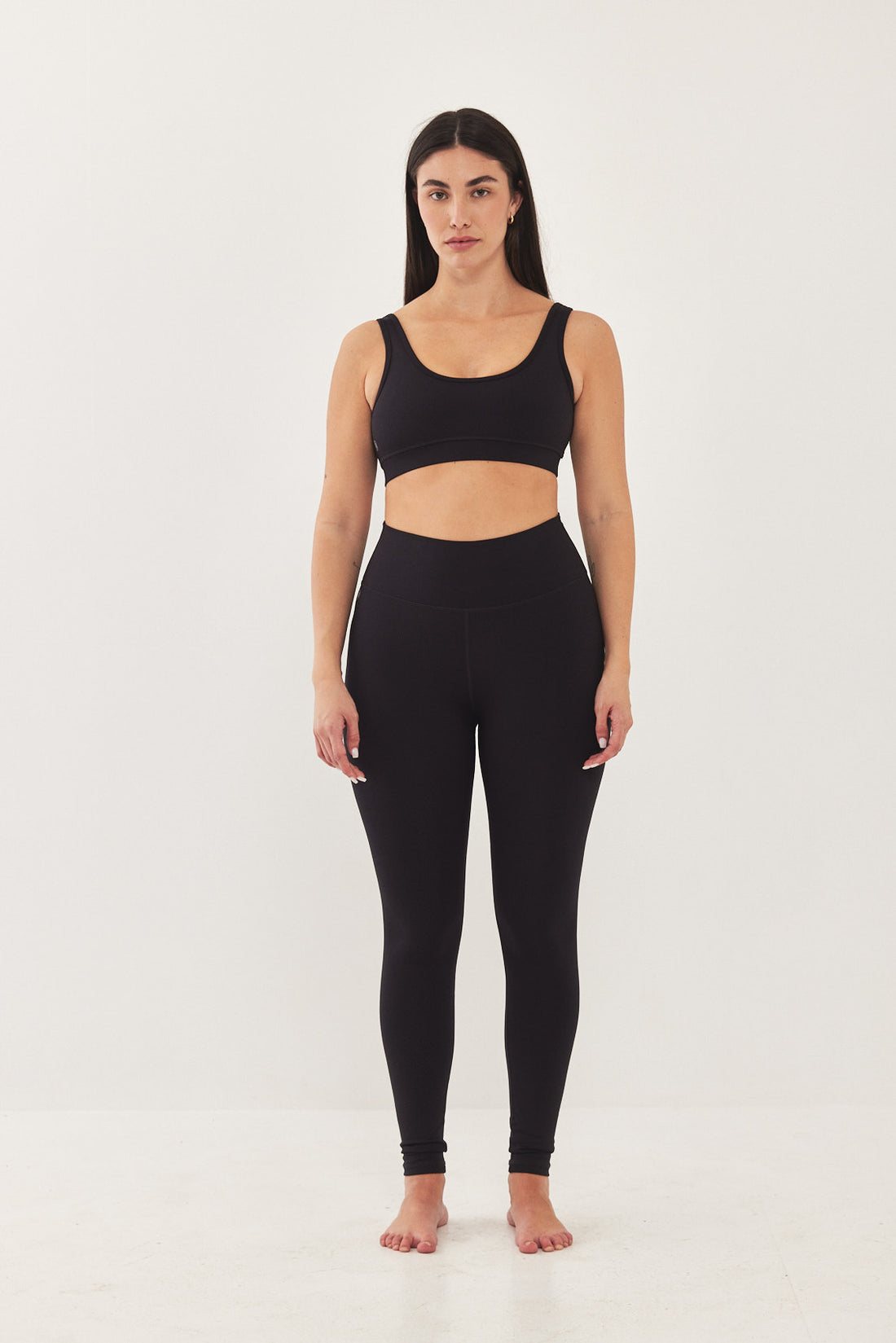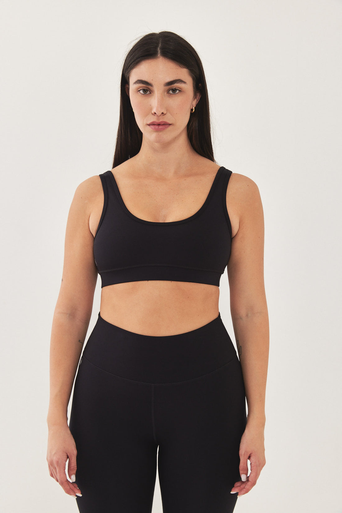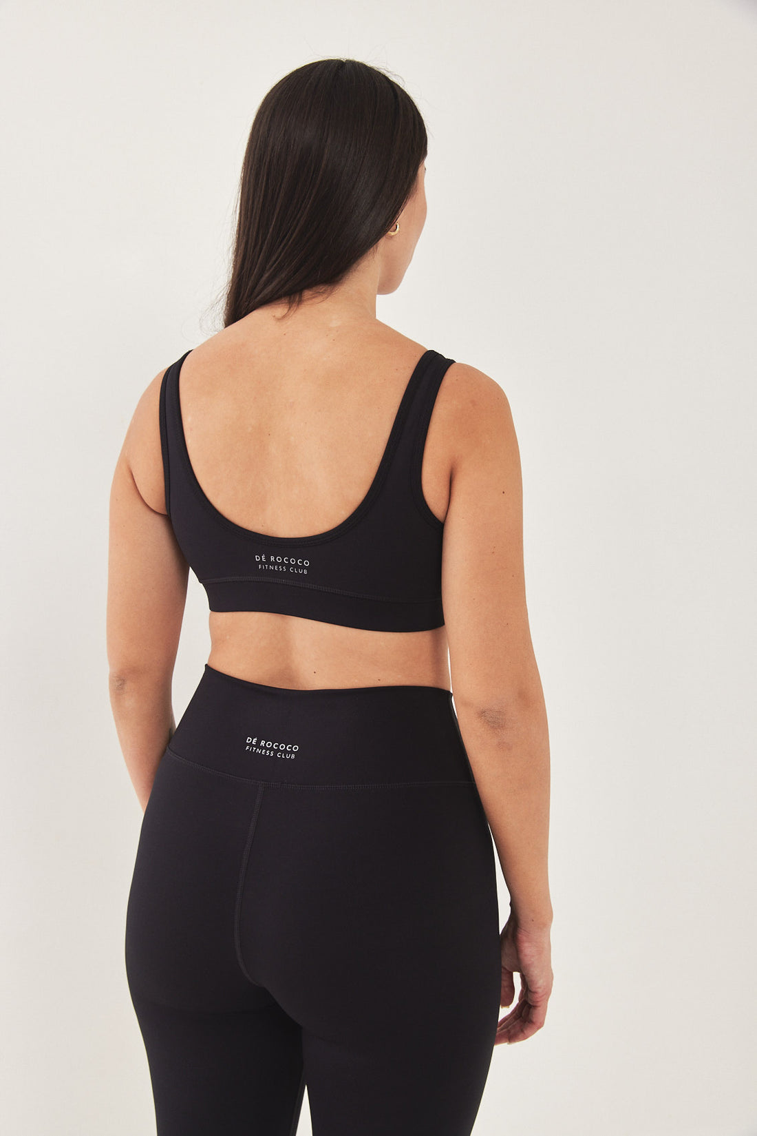 Dé round neck bra has a second-skin fit and feel, made from a stretchy supportive fabric. Features a round neckline with thick straps and an under bust waistband for optimal support, offers great support for a larger bust. Features flat lock stitches. Reflector logo on the side and a fitnéss club signature at the back. Complete the set with a matching color fitnéss club bottom and a chino cap for the ultimate workout ready look.