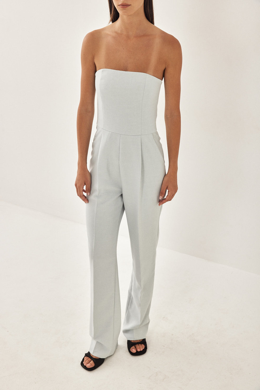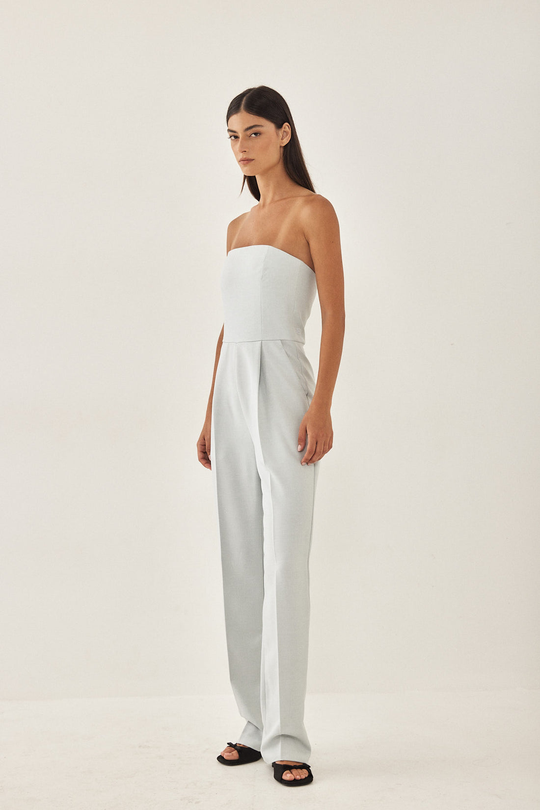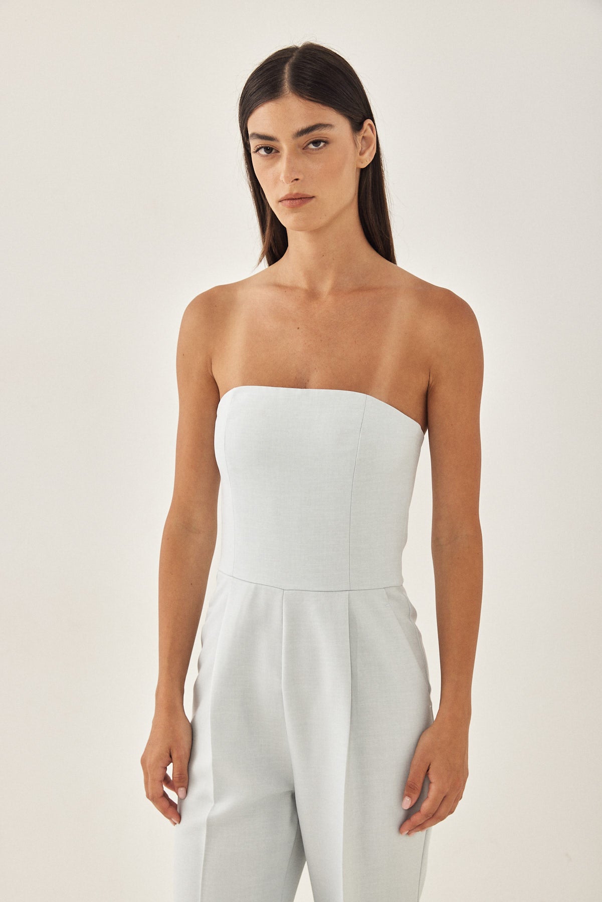 A strapless tailored jumpsuit from our signature daddy collection. The perfect tailored jumpsuit with a straight fit leg. Featuring a straight neckline with a silicone strap for a better grip and a hidden zip closure. Embroidered logo at the back. Style it with a kitten heel, a pair of earrings and a clutch for an ultra stylish look.