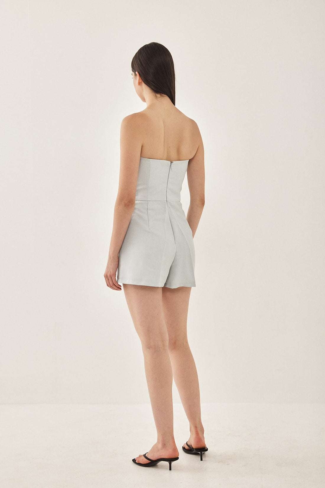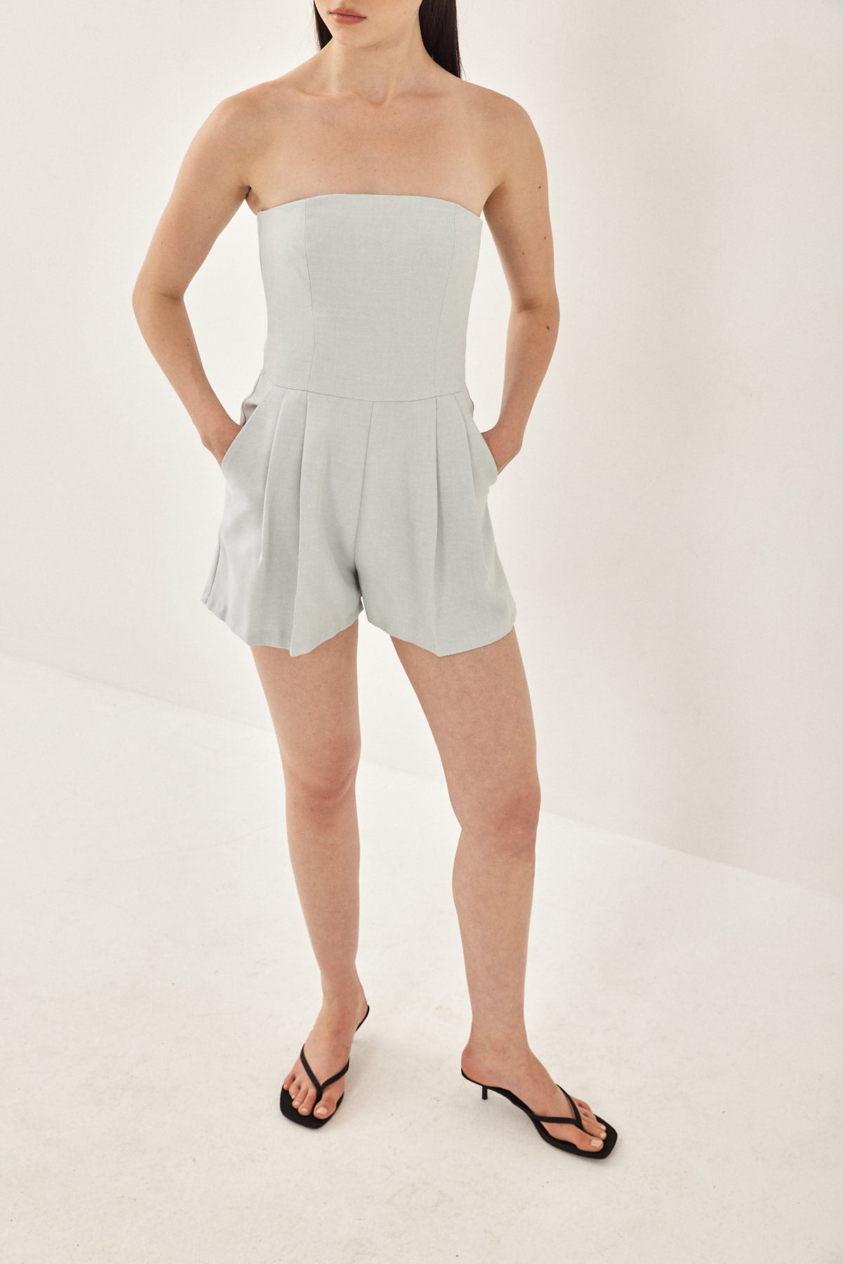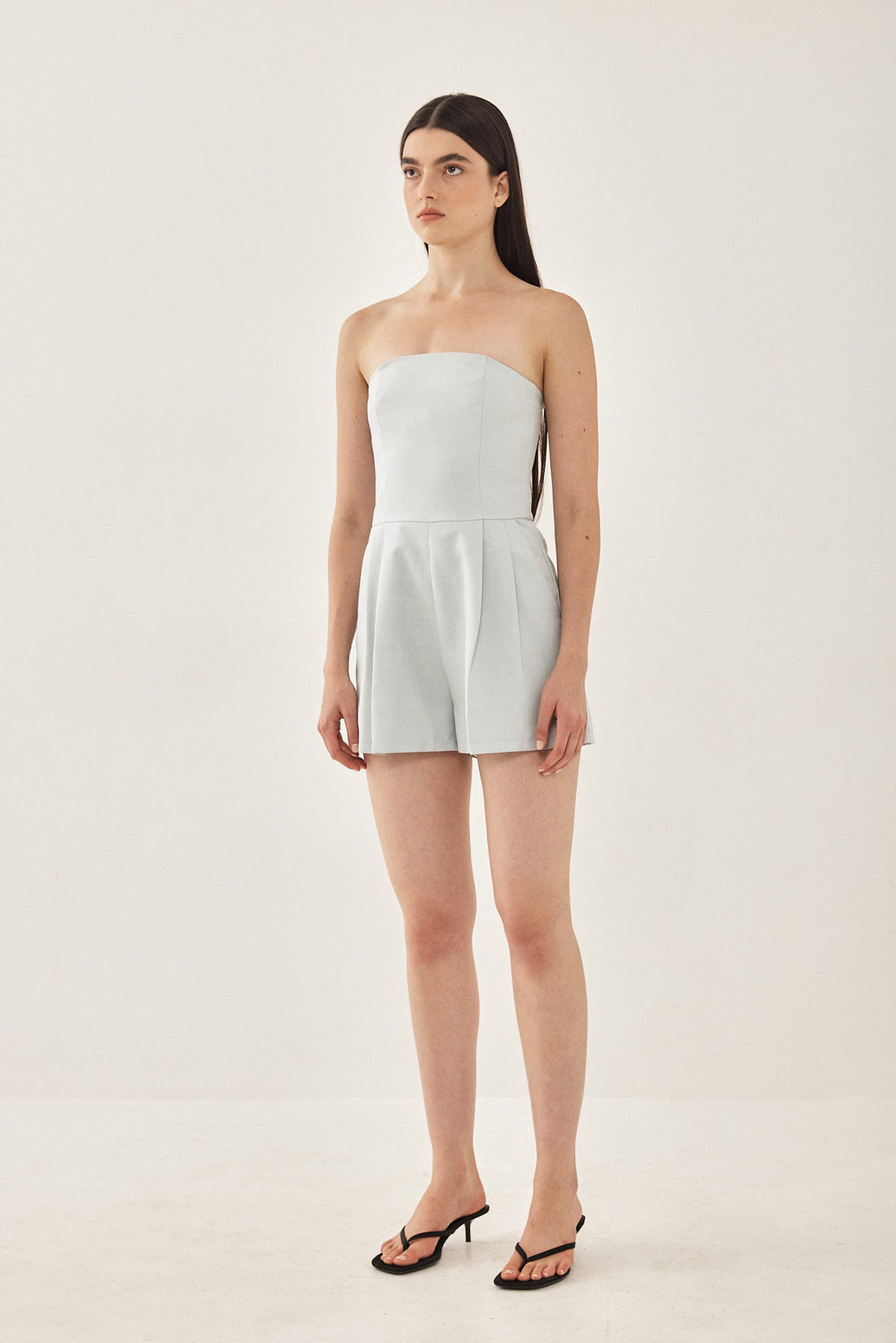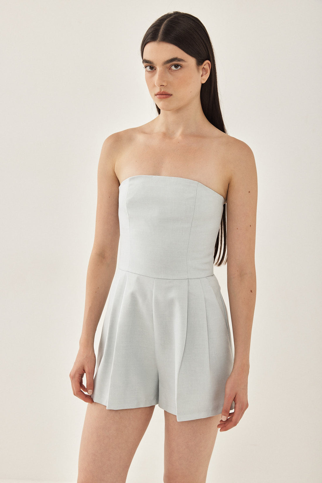 The ultimate strapless tailored jumpsuit. Featuring a straight neckline with a silicone strap for a better grip. Hidden zip closure. Embroidered logo at the back. The most flattering silhouette, simply slip it on and you are ready to go. Style it with delicate slides and some accessories for a perfect day to night look.
