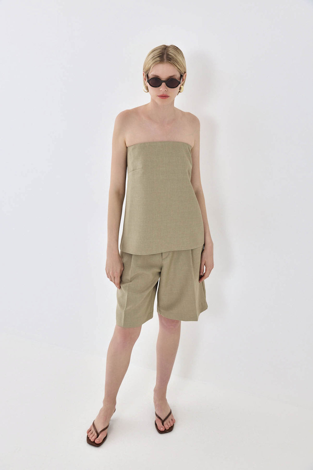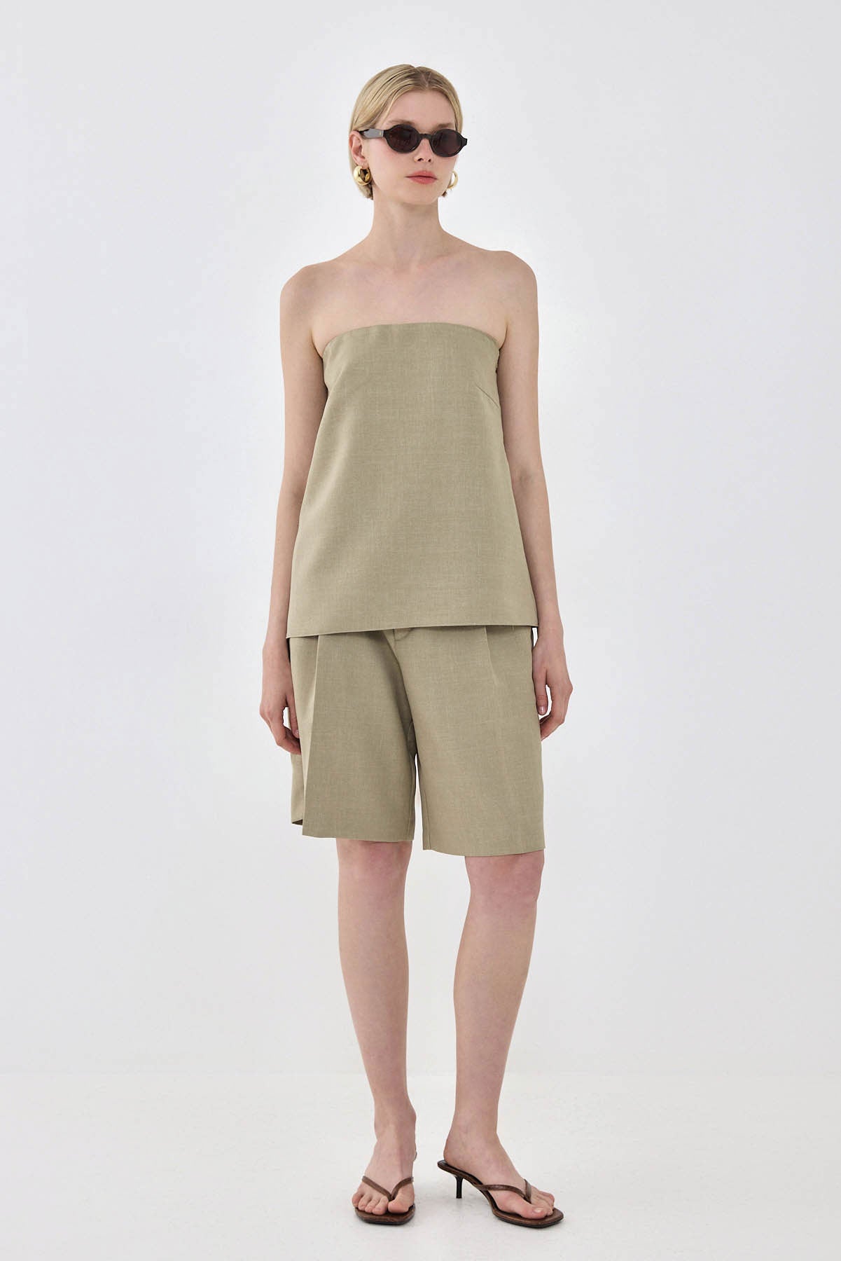 The most perfect strapless top in our signature daddy fabric. Featuring a silicon strap all around the top part of the fabric for extra support and grip. Ton sur ton invisible zipper closure on the side. Tonal embroidery logo detailing at the back. Style it with your favorite denim, Croco belt and some delicate accessories for an effortless day to night look.