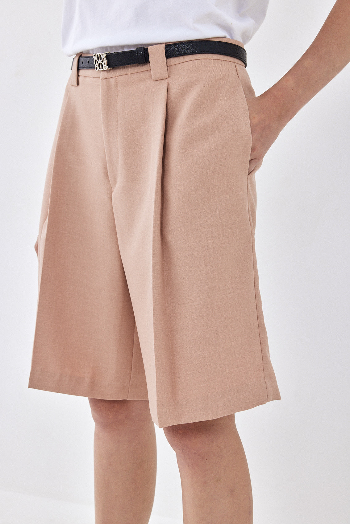 High waisted bermuda made from non-stretch lightweight woven fabric. Featuring wide belt loops. Folded hem. Two side pockets. Style it with your favorite basic tank, our Croco belt and round sunglasses for a breezy and stylish holiday look.
