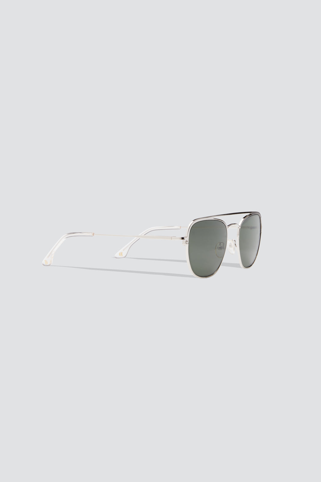 Meet your new favorite pair of sunnies. The perfect balance between chic and cool, the aviator sunglasses will be your new go to pair. Made from premium materials, featuring a golden stainless steel frame with glass lenses. Logo detailing on the temple tips and on the top bridge. Double bridge. Comes in premium packaging that includes everything you need to keep your sunglasses perfect - a branded box, a vegan leather case and a silky soft duster.
