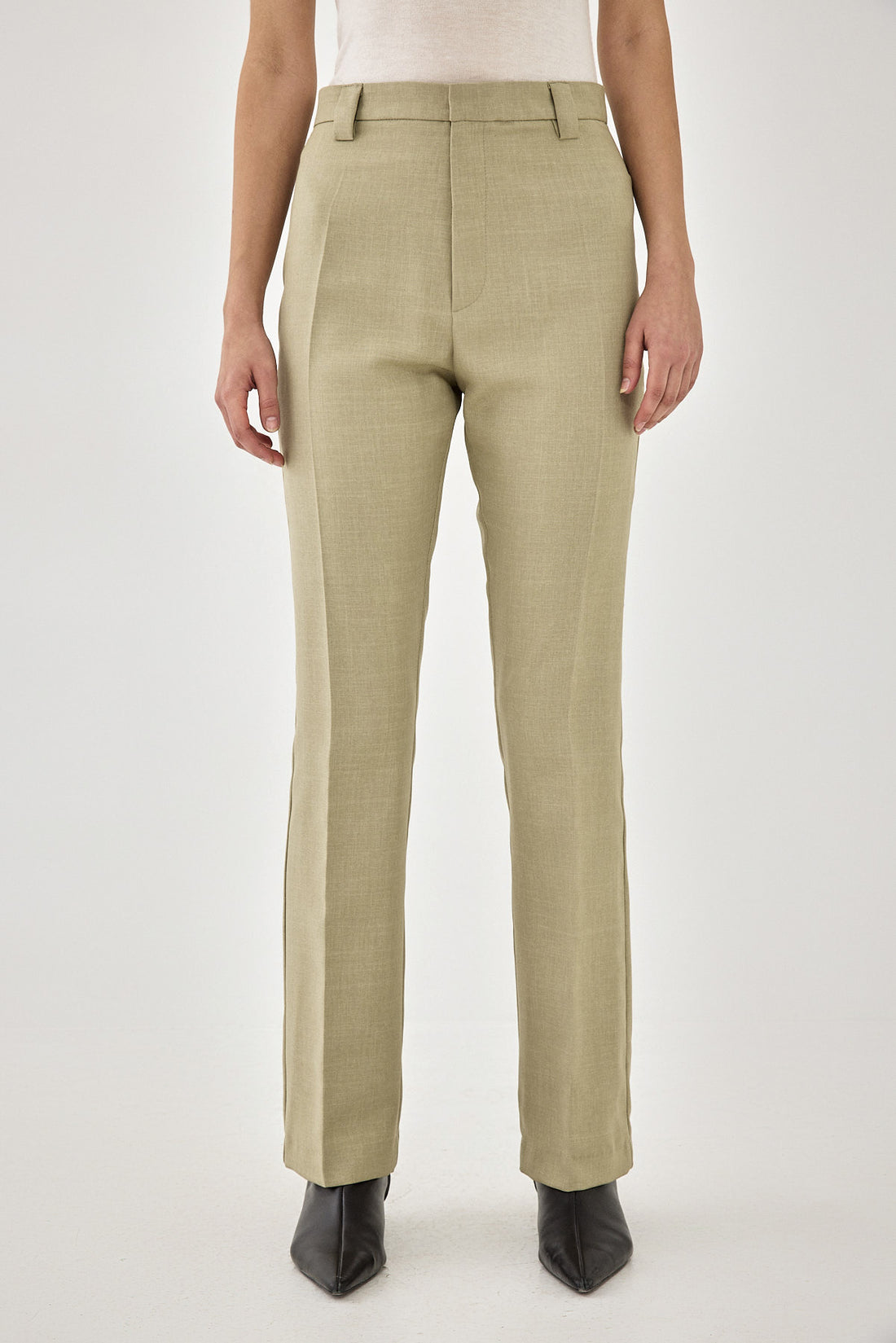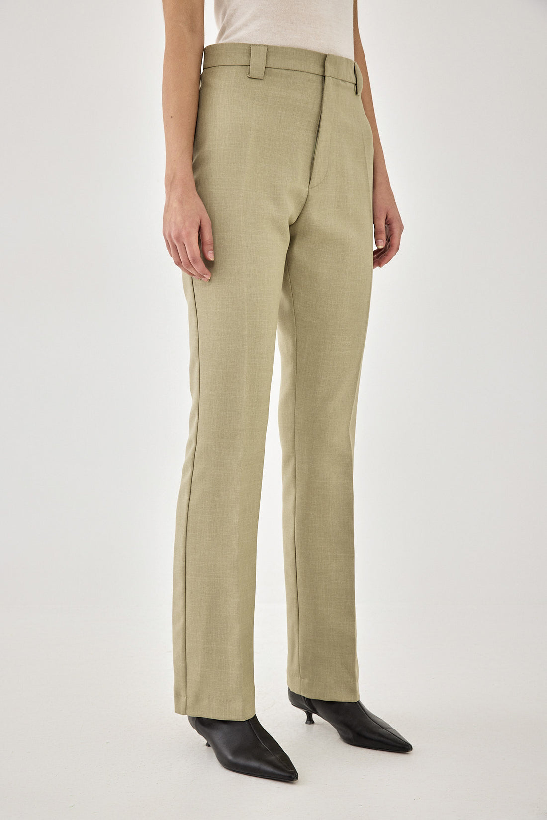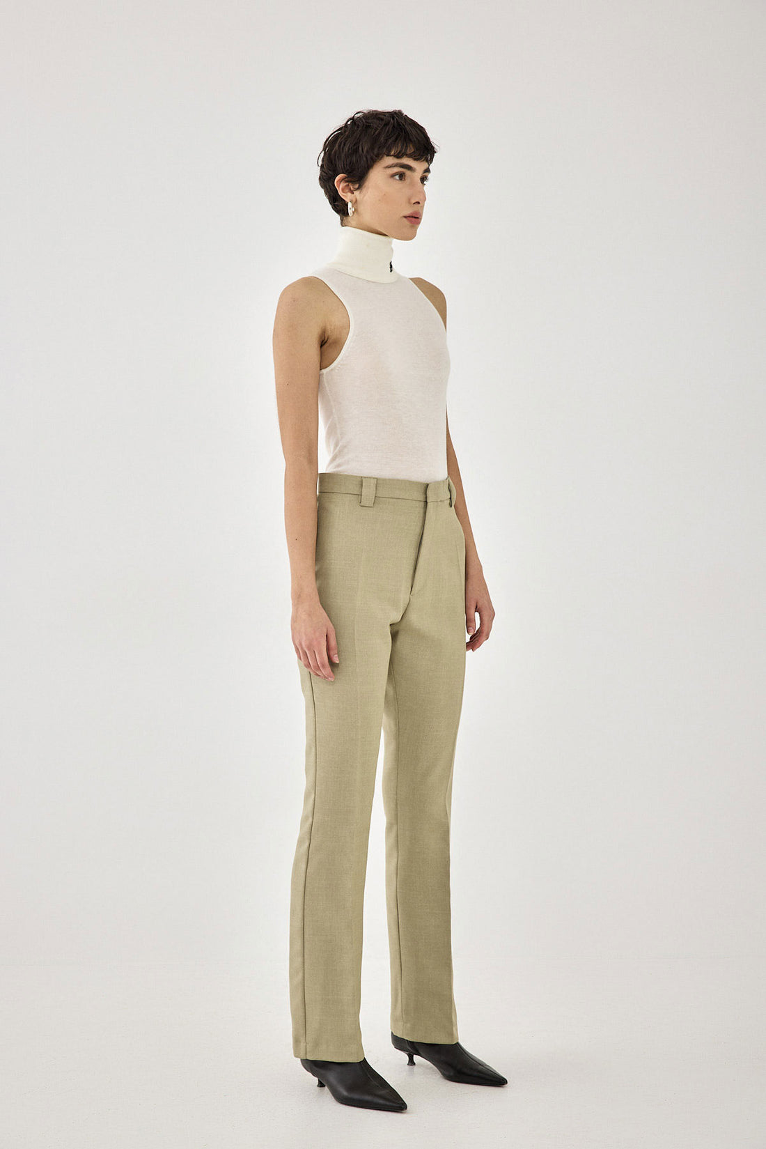 Meet the new addition to our signature daddy collection. High waisted tailored pants with a bootcut silhouette. Full length. Non-stretch lightweight woven fabric. Featuring wide belt loops. Front zip and metal hook closure. Embroidered logo detailing at the back. Style it with the cozy bralette and a blazer on top for the ultimate everyday look.
