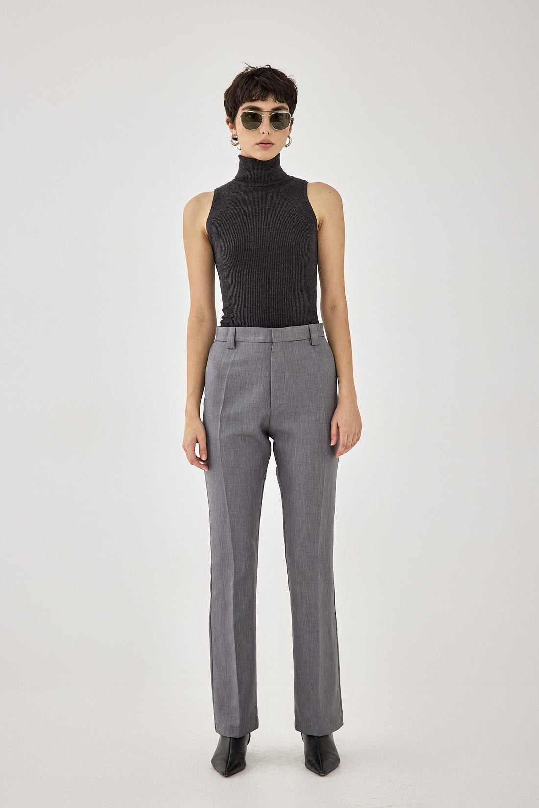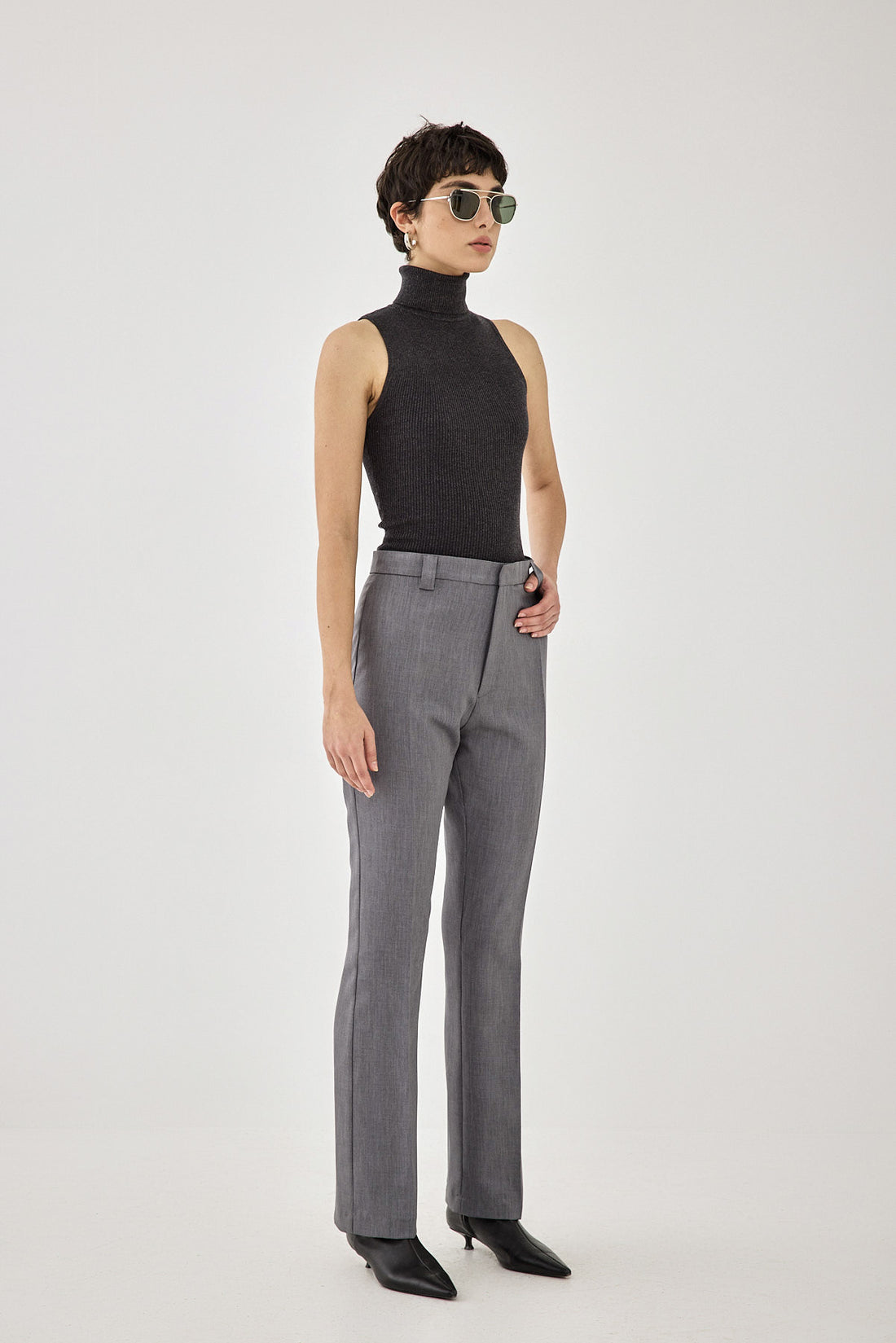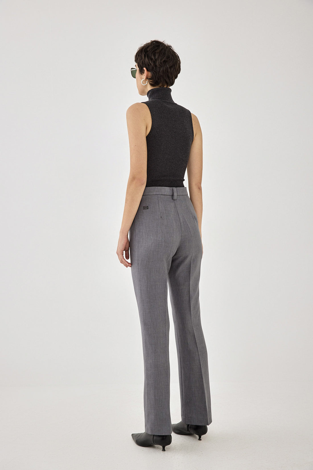Meet the new addition to our signature daddy collection. High waisted tailored pants with a bootcut silhouette. Full length. Non-stretch lightweight woven fabric. Featuring wide belt loops. Front zip and metal hook closure. Embroidered logo detailing at the back. Style it with the cozy bralette and a blazer on top for the ultimate everyday look.