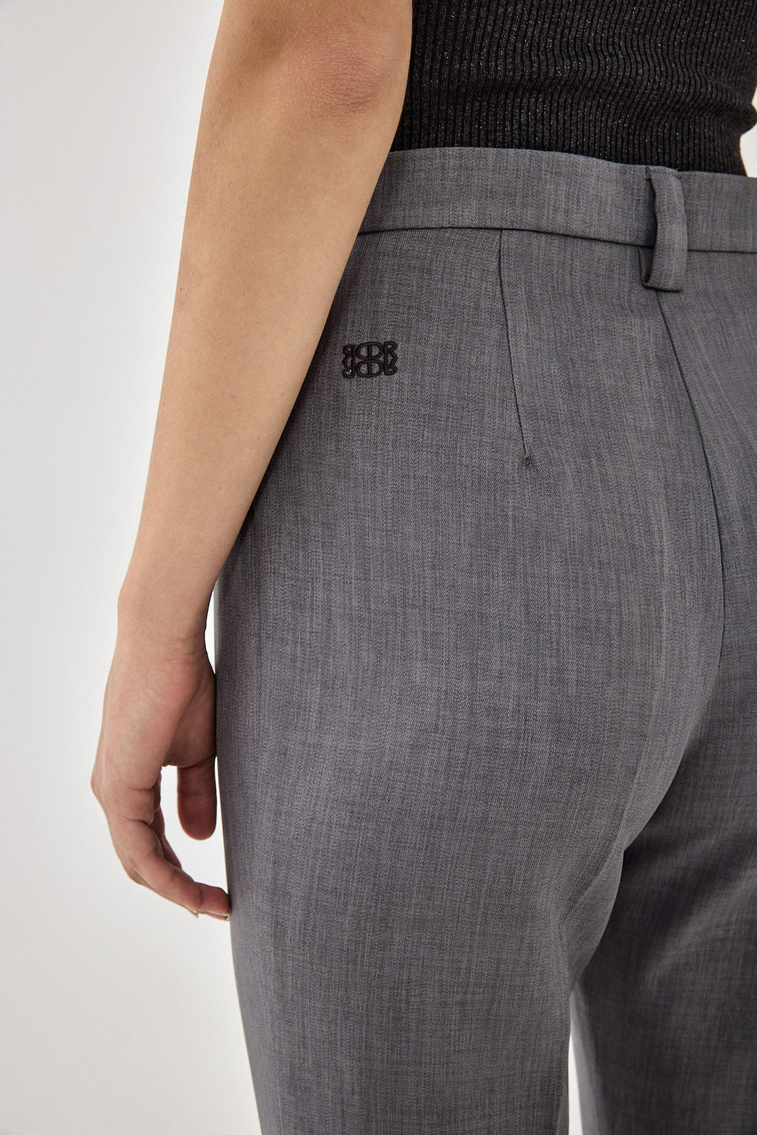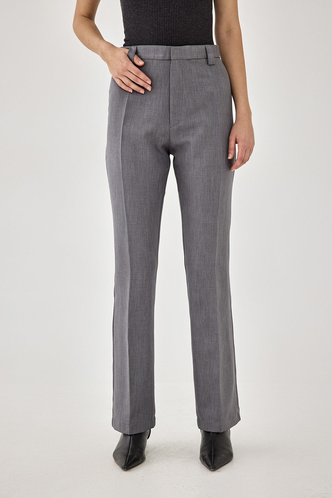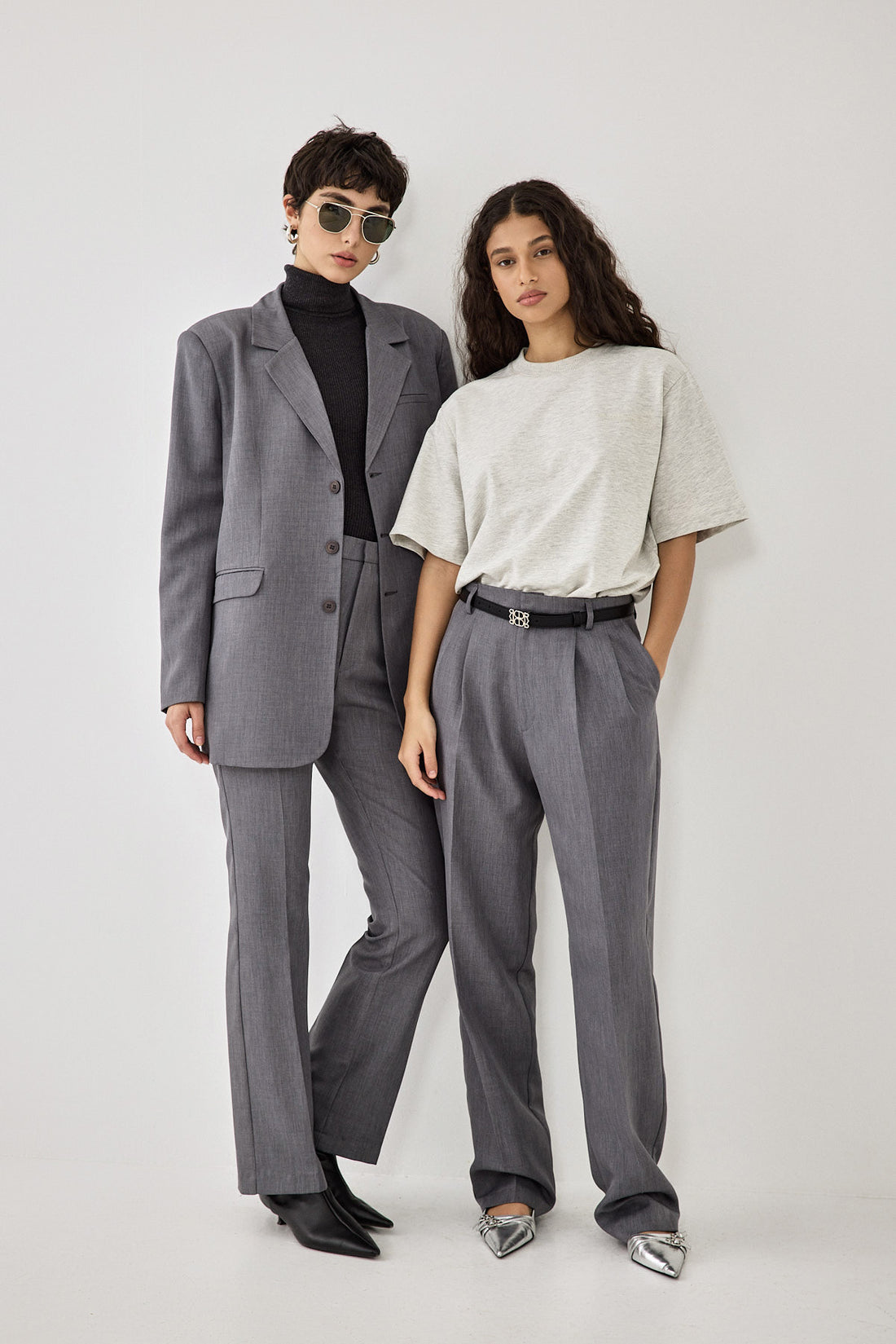 Meet the new addition to our signature daddy collection. High waisted tailored pants with a bootcut silhouette. Full length. Non-stretch lightweight woven fabric. Featuring wide belt loops. Front zip and metal hook closure. Embroidered logo detailing at the back. Style it with the cozy bralette and a blazer on top for the ultimate everyday look.