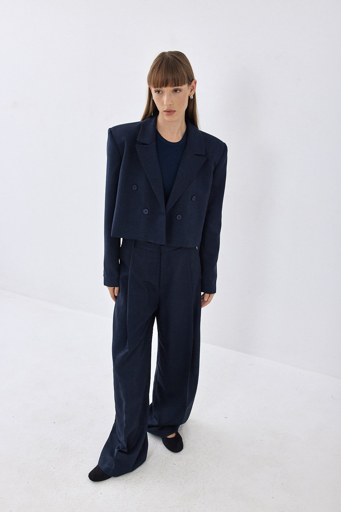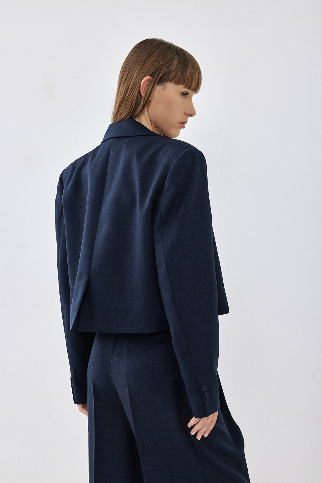 A new addition to our signature daddy collection. Cropped blazer. Features a lapel collar and front button closure. Long sleeves with pronounced shoulders. Dé Rococo embroidery ton sur ton at the back. Style it with a matching color daddy bottom for the ultimate stylish look.