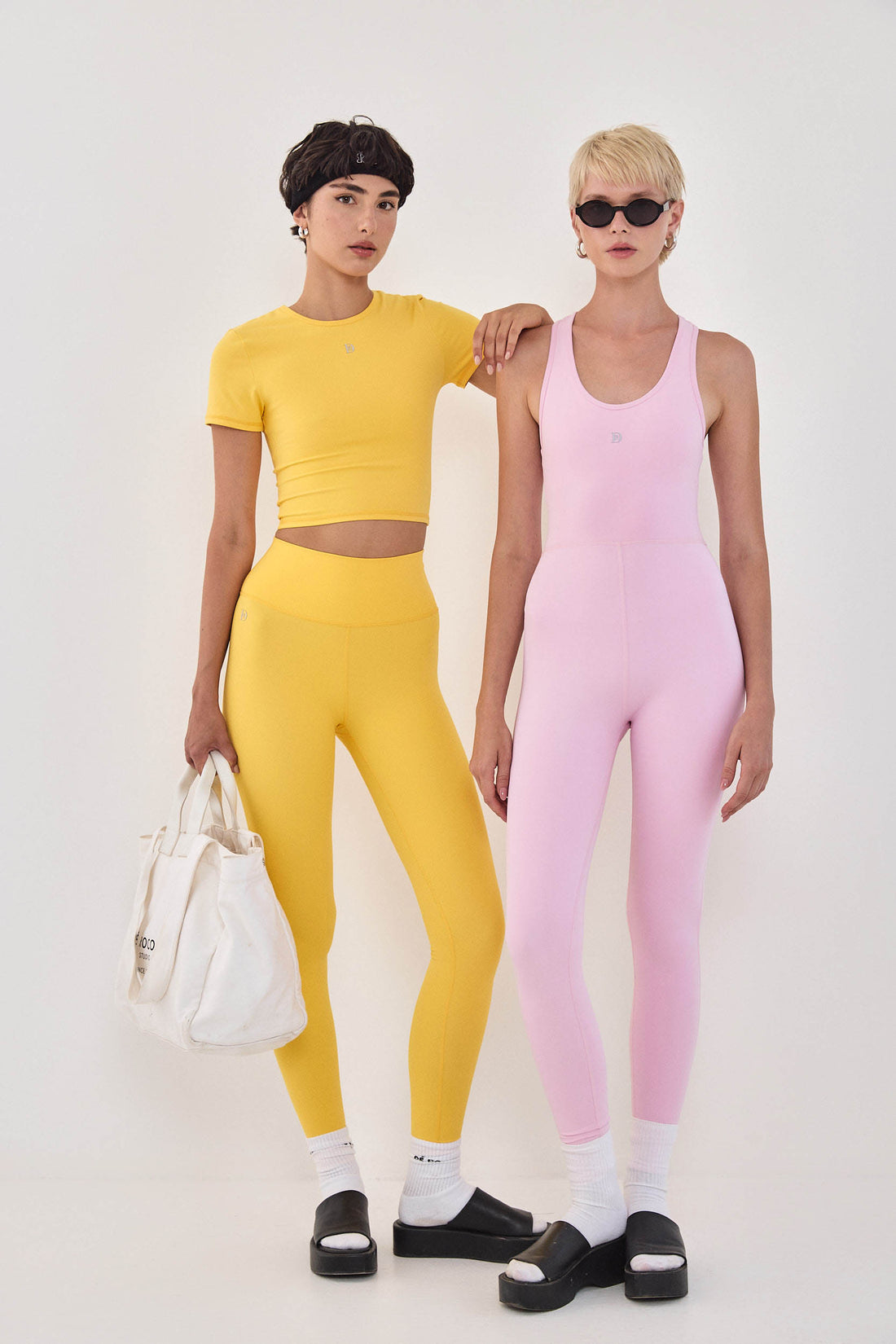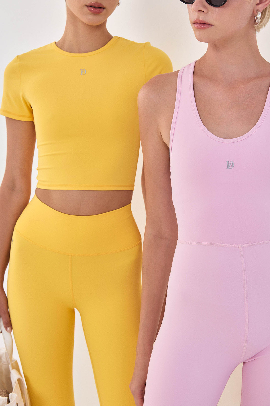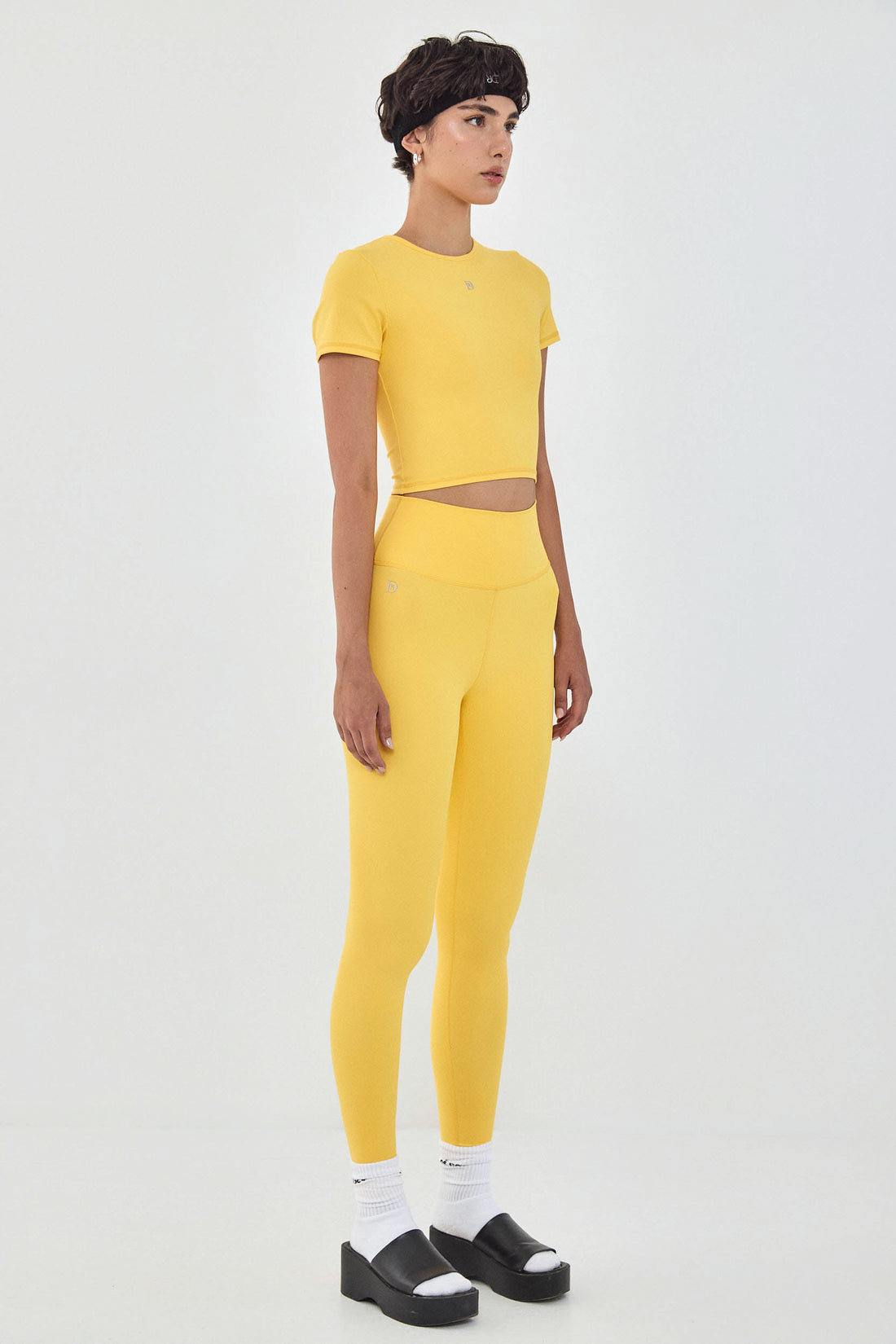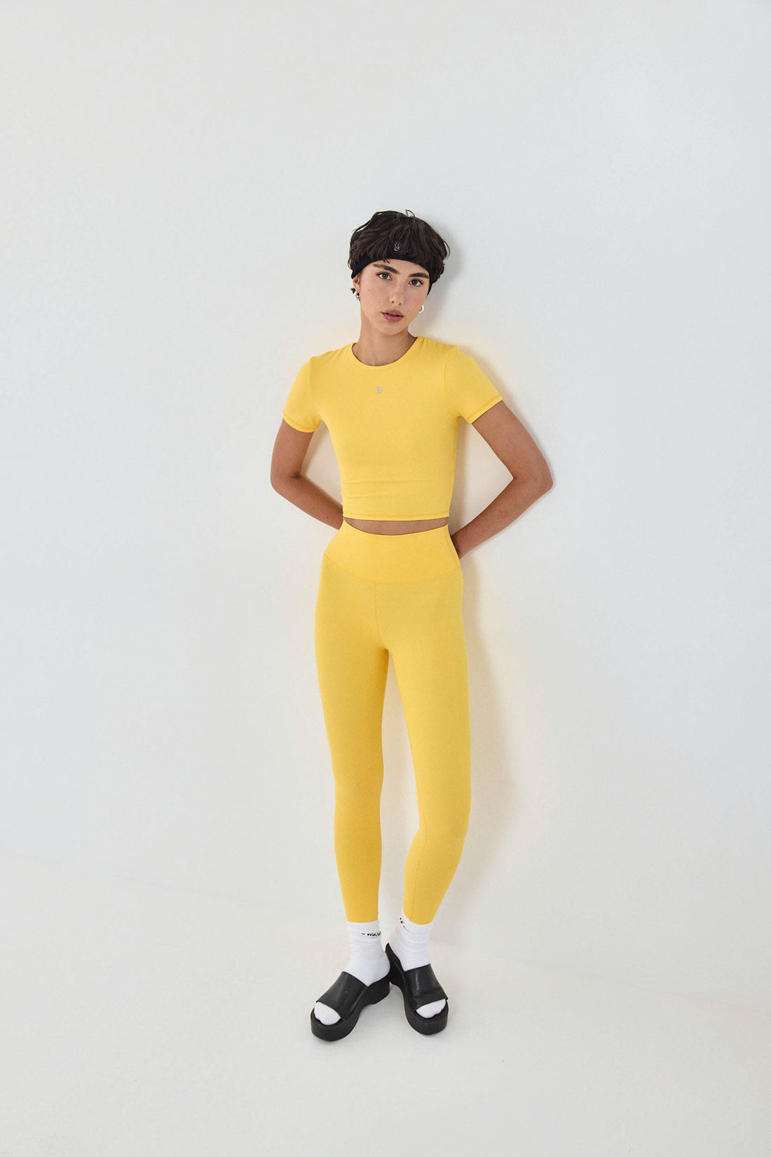 Introducing the newest addition to our best-selling active collection. Baby Tee. Short sleeves. Slightly cropped silhouette. Second skin-fit and feel made from a stretchy fabric that lifts and sculpts your body. Flat lock stitches. Sweat absorbent fabric. Reflector logo on the front. Complete the set with your favorite matching color active bottom, our headband, aviator sunnies and the must have canvas carry all.