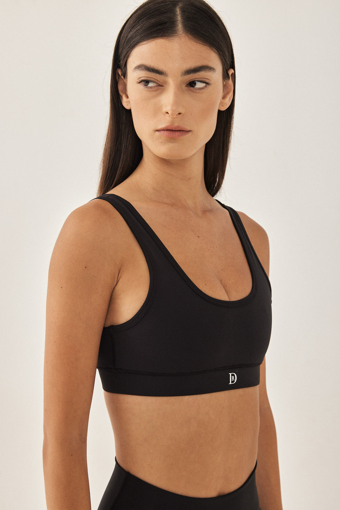 Dé round neck bra has a second-skin fit and feel, made from a stretchy supportive fabric. Features a round neckline with thick straps and an under bust waistband for optimal support, offers great support for a larger bust. Features flat lock stitches. Reflector logo on the side and a fitnéss club signature at the back. Complete the set with a matching color fitnéss club bottom and a chino cap for the ultimate workout ready look.