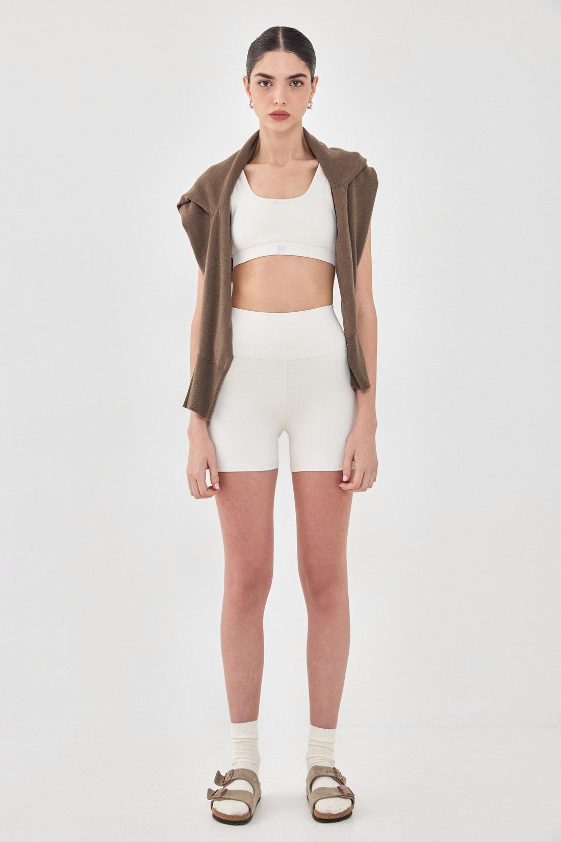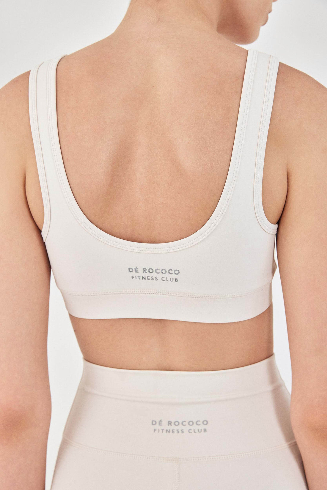 Dé round neck bra has a second-skin fit and feel, made from a stretchy supportive fabric. Features a round neckline with thick straps and an under bust waistband for optimal support, offers great support for a larger bust. Features flat lock stitches. Reflector logo on the side and a fitnéss club signature at the back. Complete the set with a matching color fitnéss club bottom and a chino cap for the ultimate workout ready look.