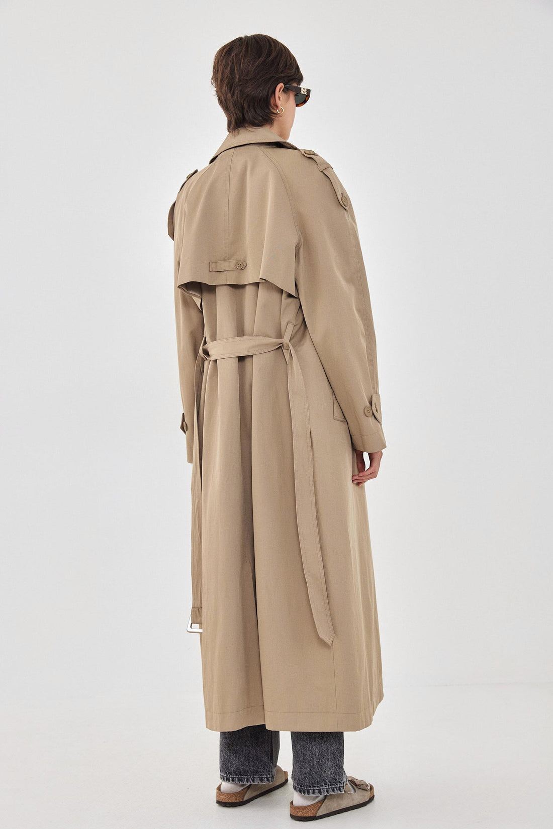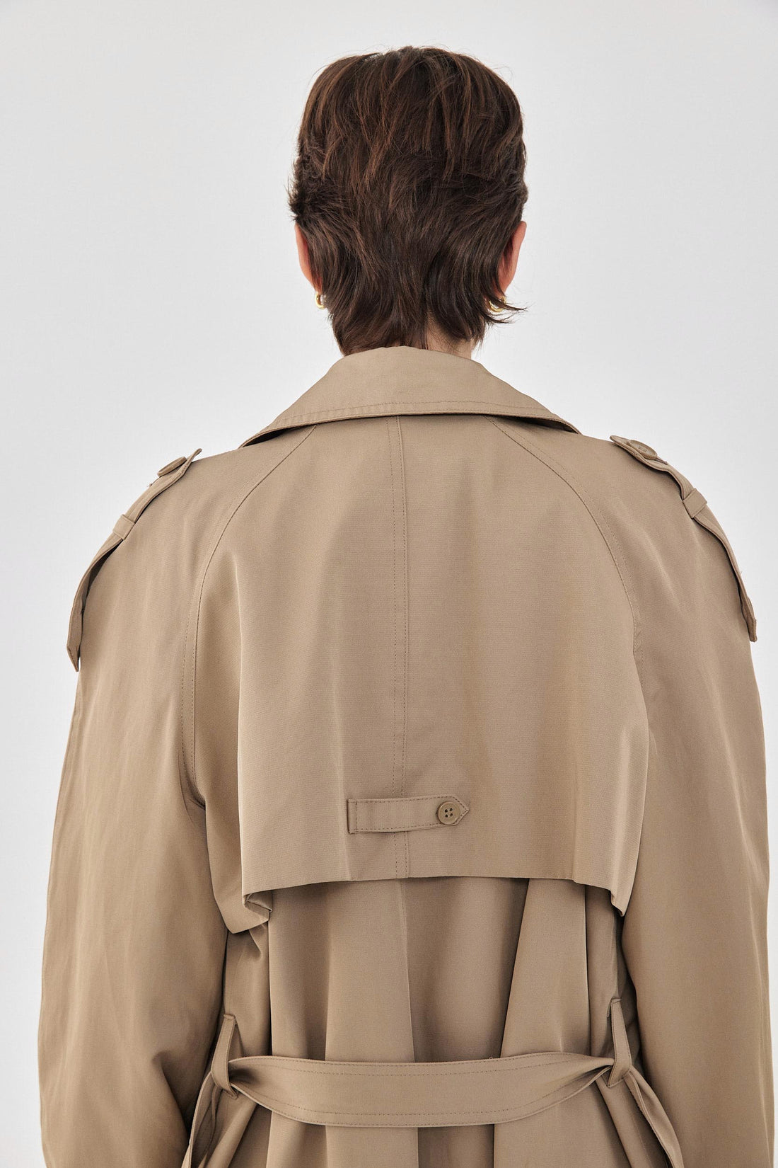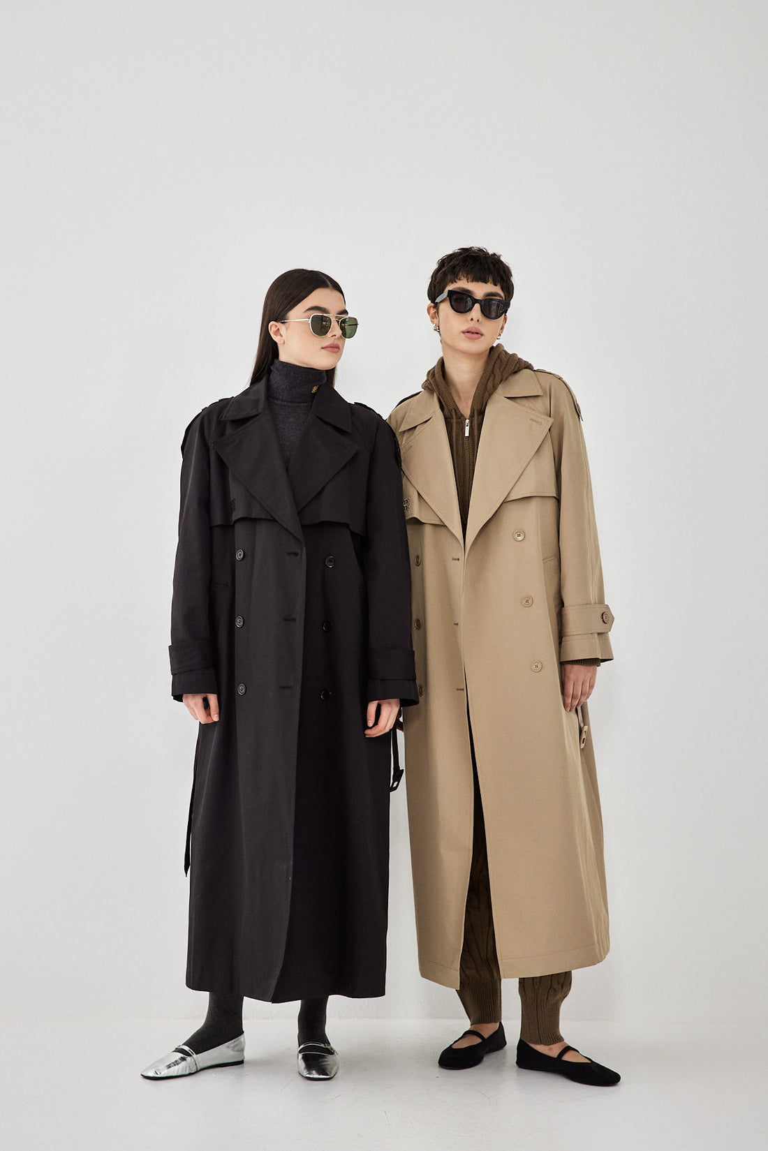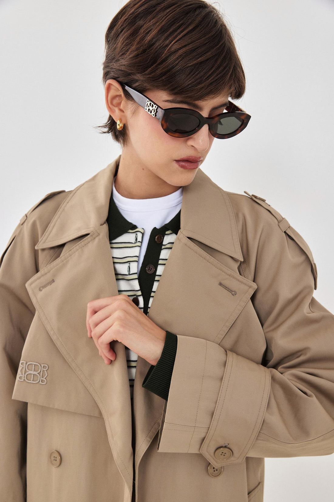 A new take on our classic trench coat. Double breasted. Side pockets. Featuring an embroidered logo on the front. Logo engraved buttoned closure. Sleeve loops. Epaulettes. Back yoke. Adjustable buckled waist. Lined. Style it over any look, honestly - any look, to tie it all together.