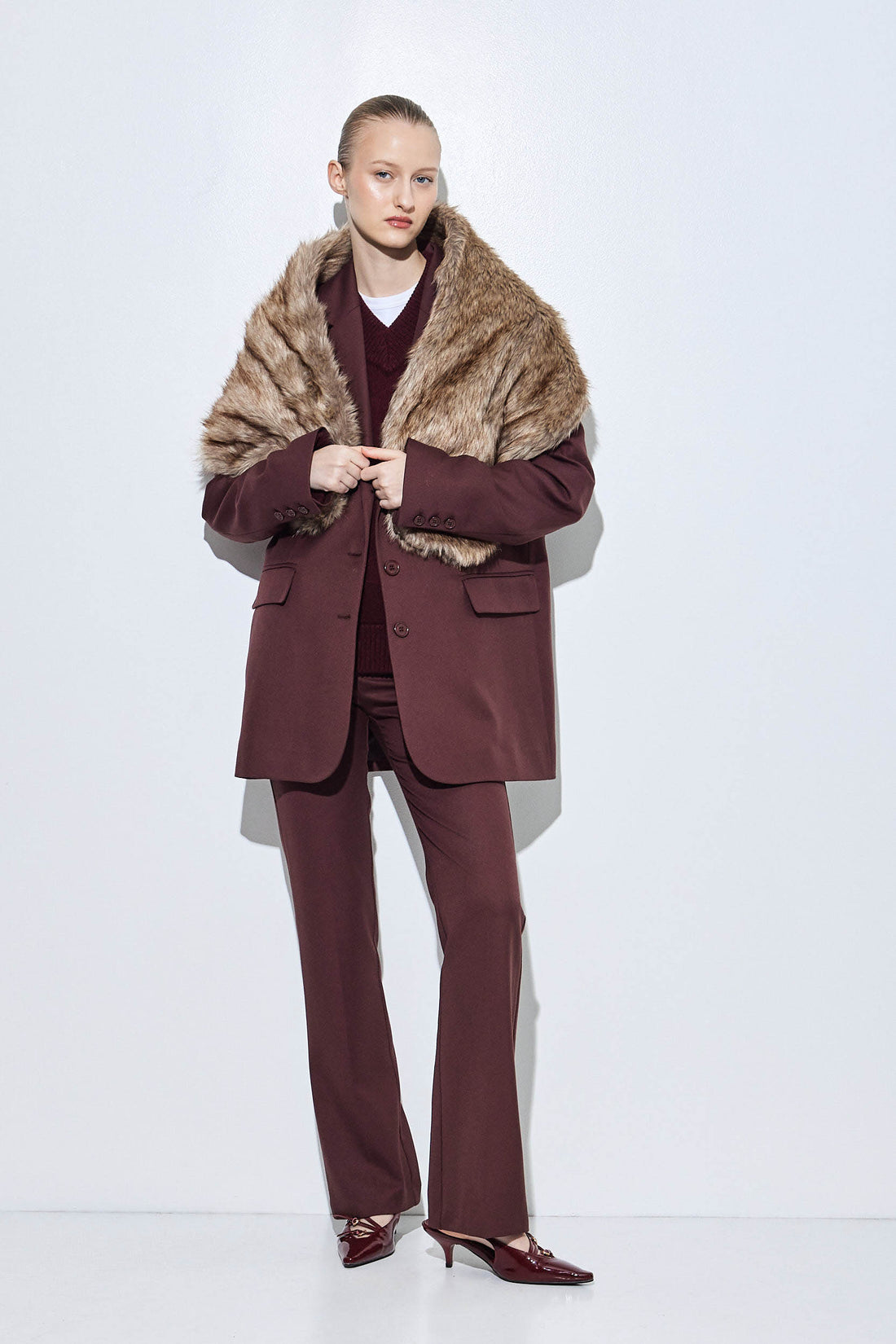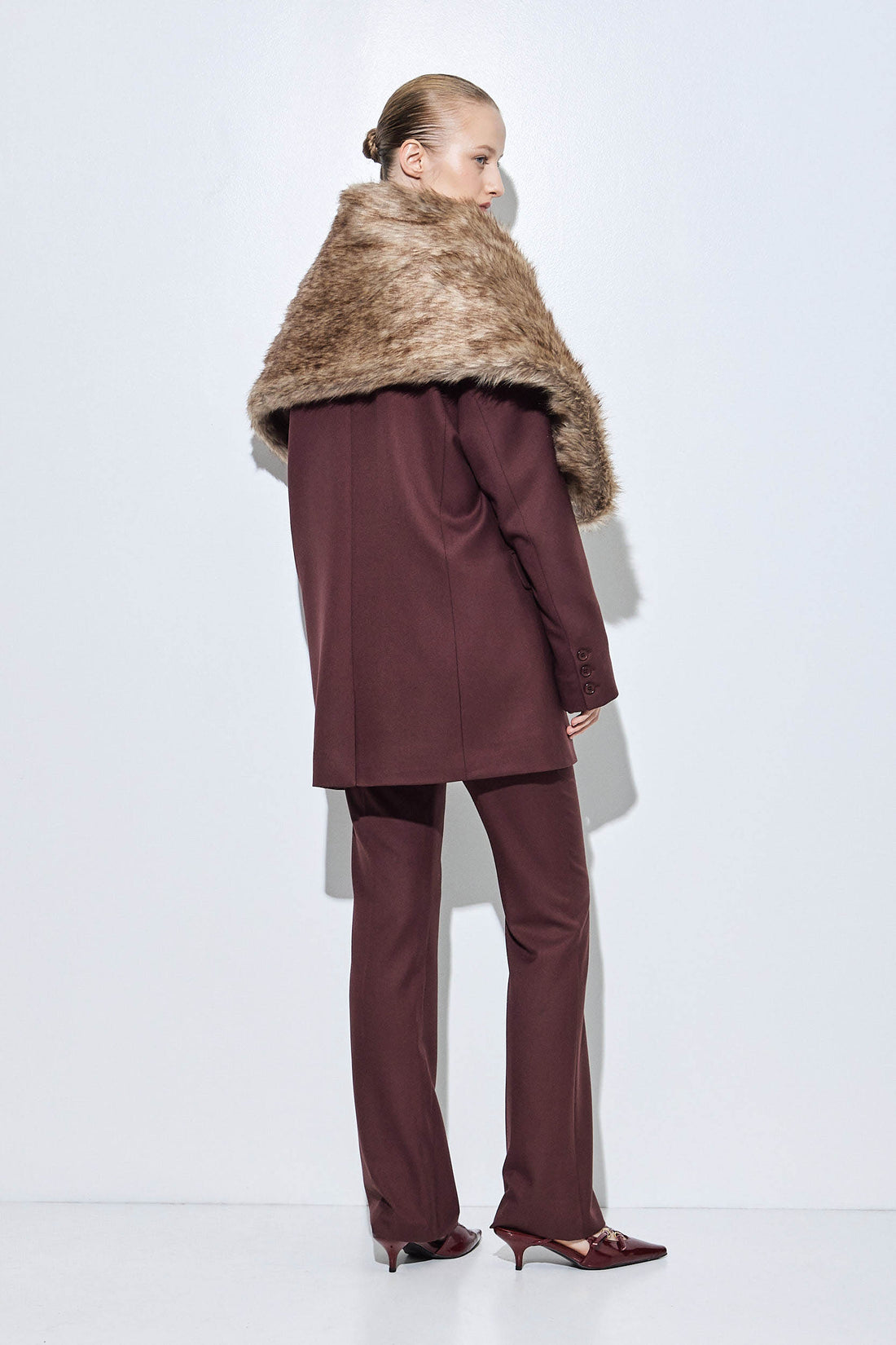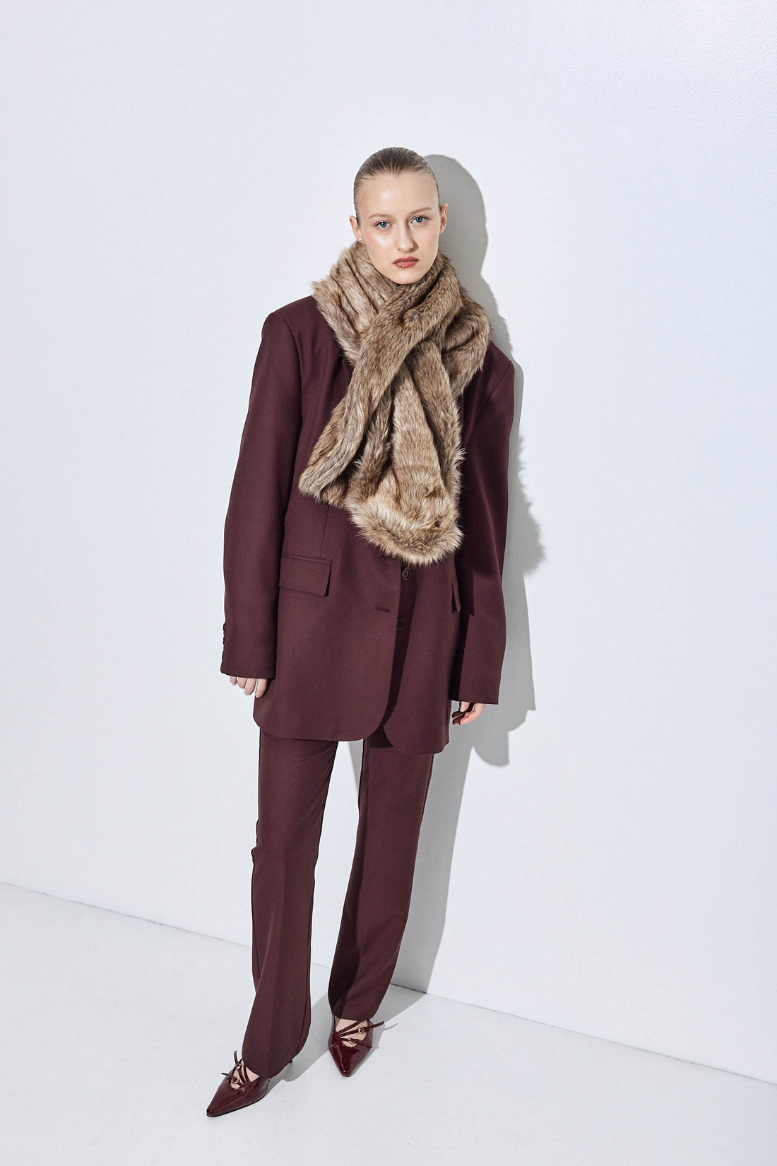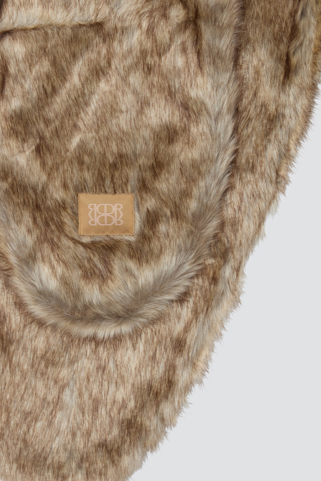 Our faux fur scarf is the ultimate winter accessory this season. Double-sided with fur on both sides. Dé Rococo logo tag. Delicate keyhole detail at the end, designed to elegantly loop through itself. Style it with our matching faux fur coat and a pair of our flattering denim for a luxurious look.