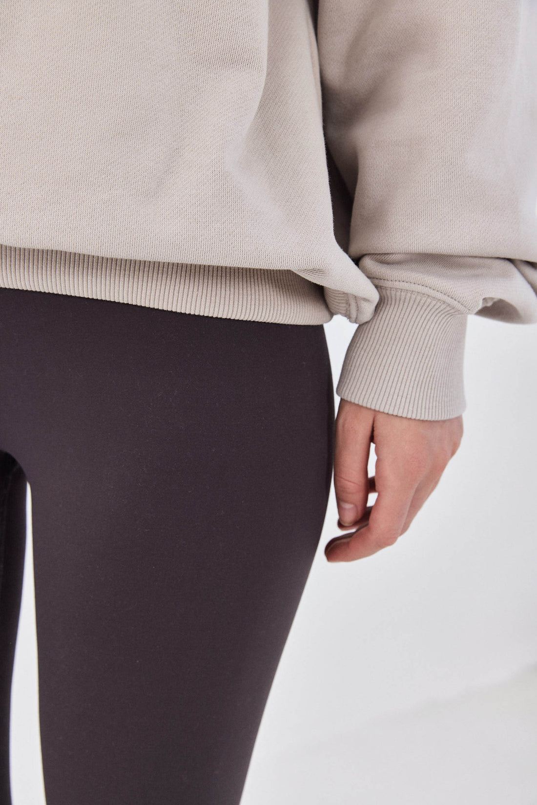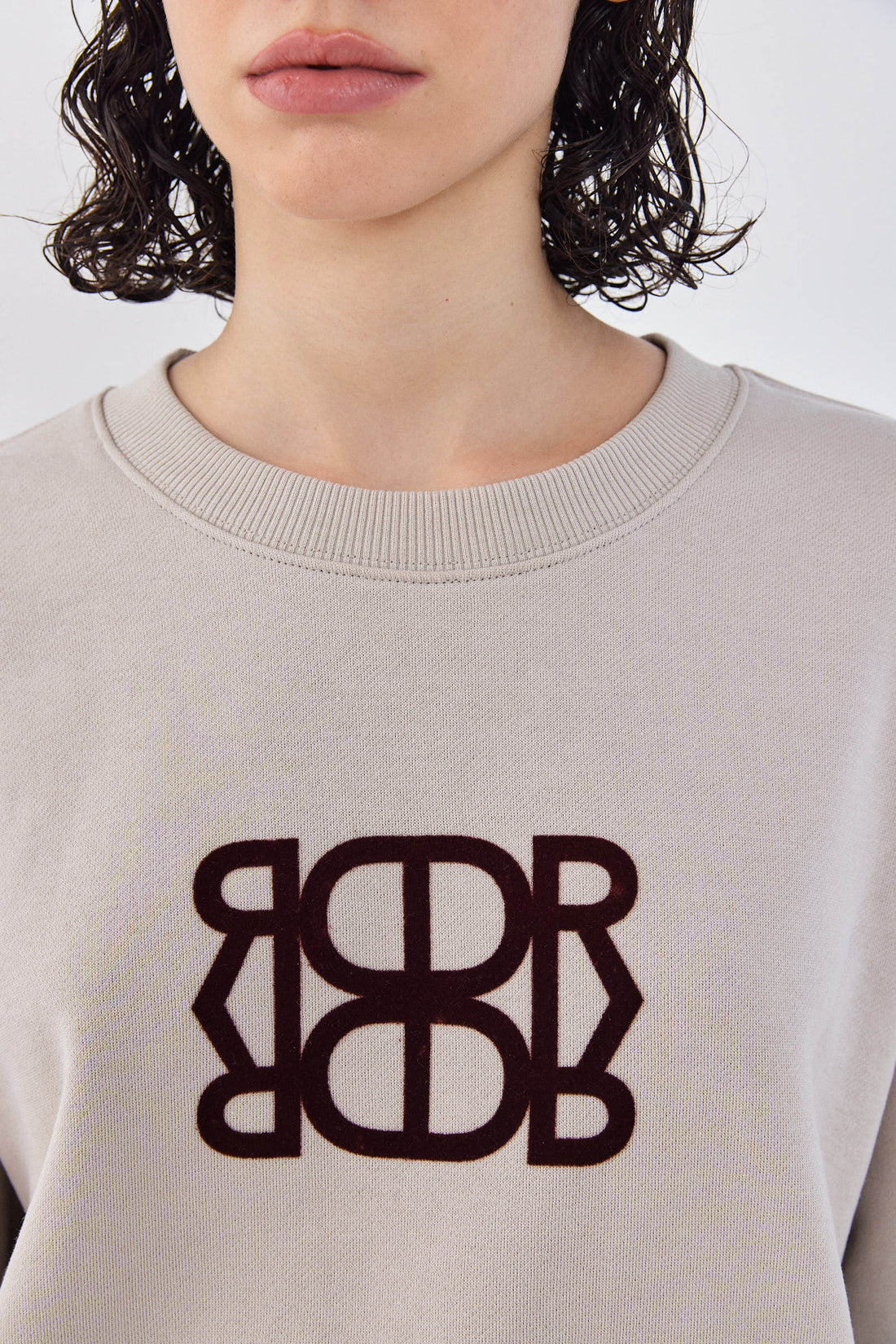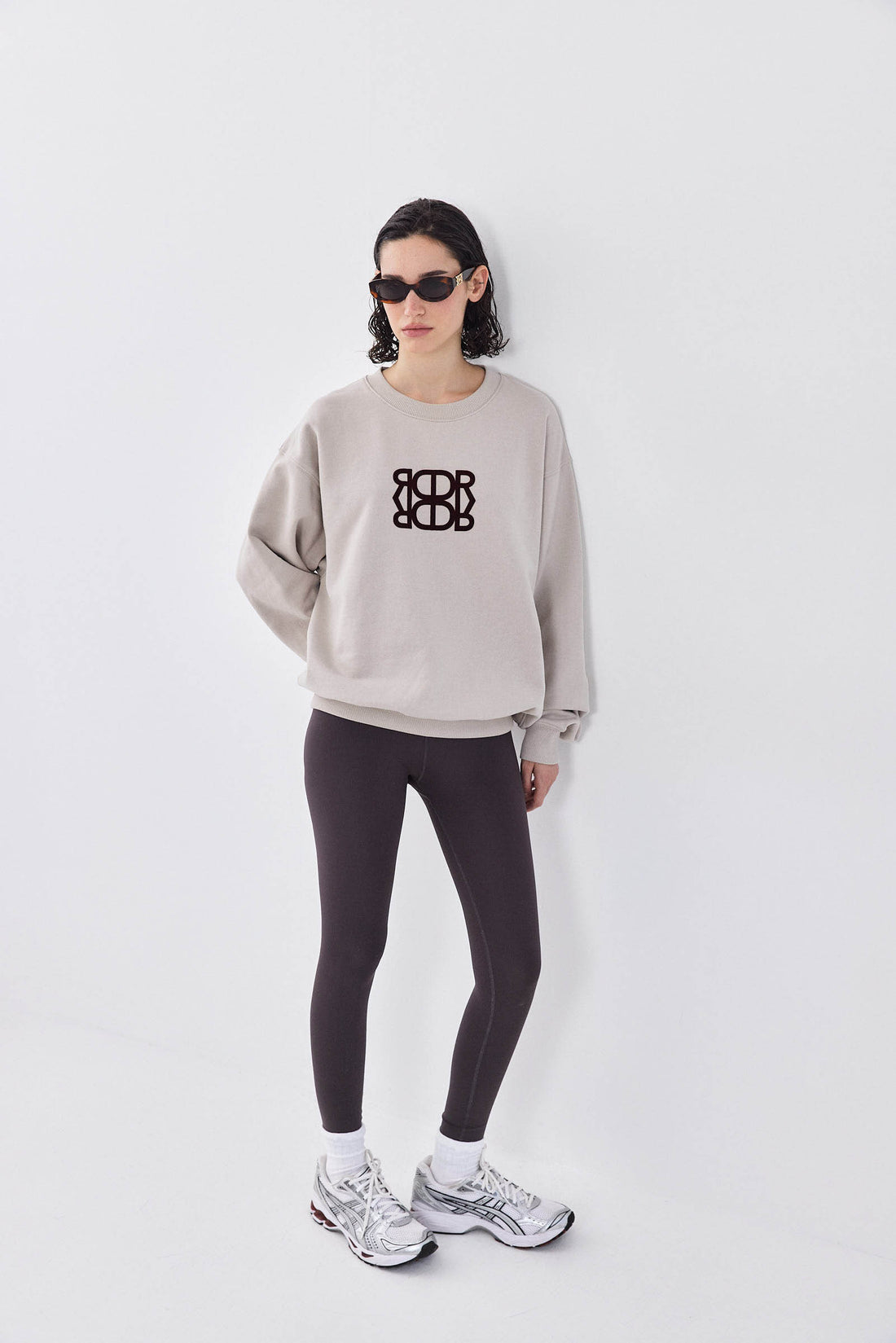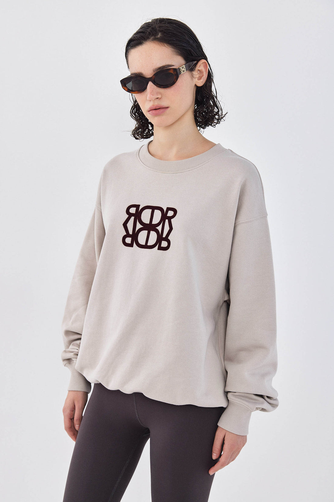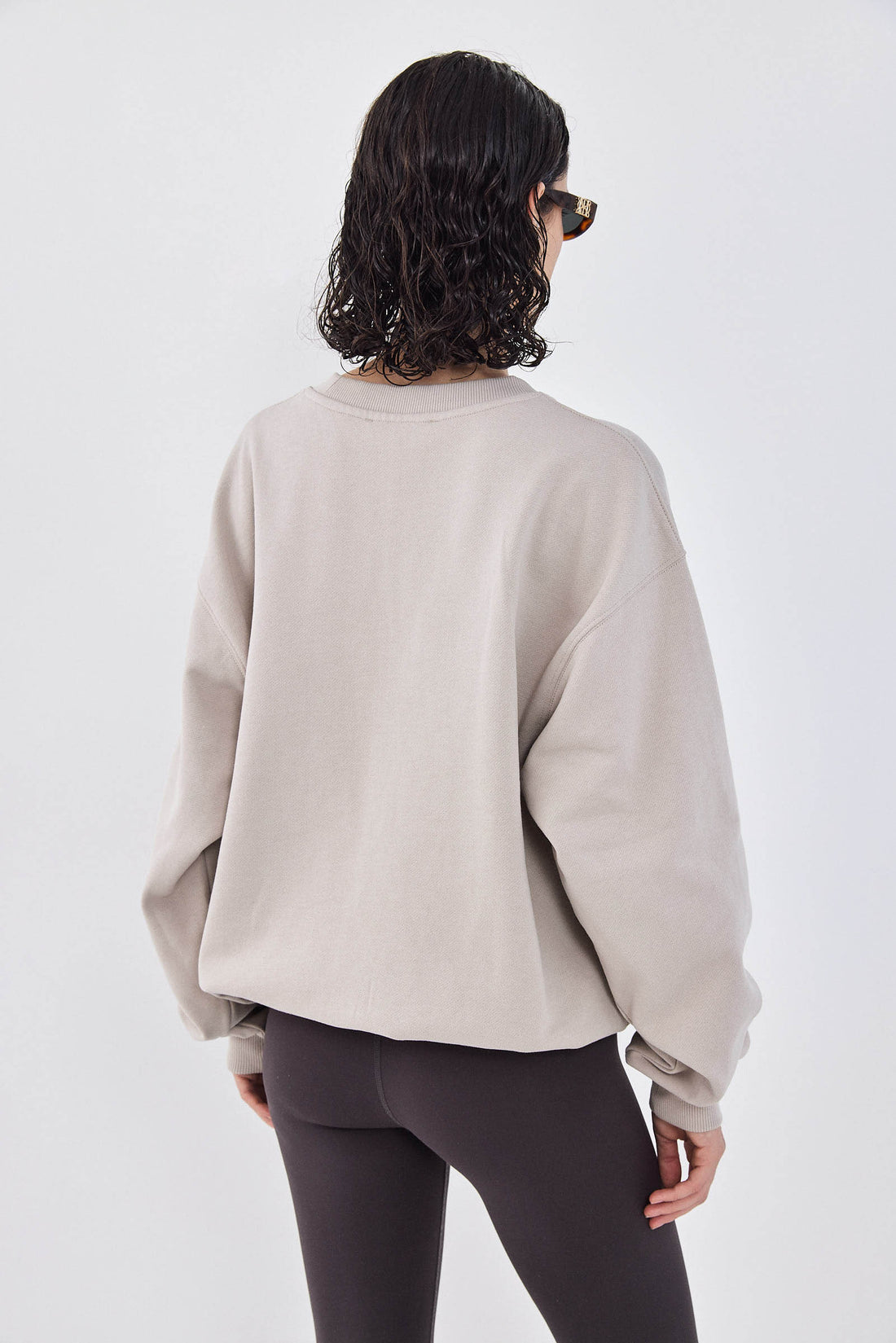 Stay warm and chic with our new flock fleece sweatshirt. Ribbed crew neckline. Contrasting flock logo detailing on the front. Cuffed ribbed finish. Drop shoulder sleeves. Fleece brushed texture on the inside. Gathered hem for flattering volume. Style it with our matching fleece jogger, our lettuce hem socks and our classic chino cap for a sporty and chic everyday look.