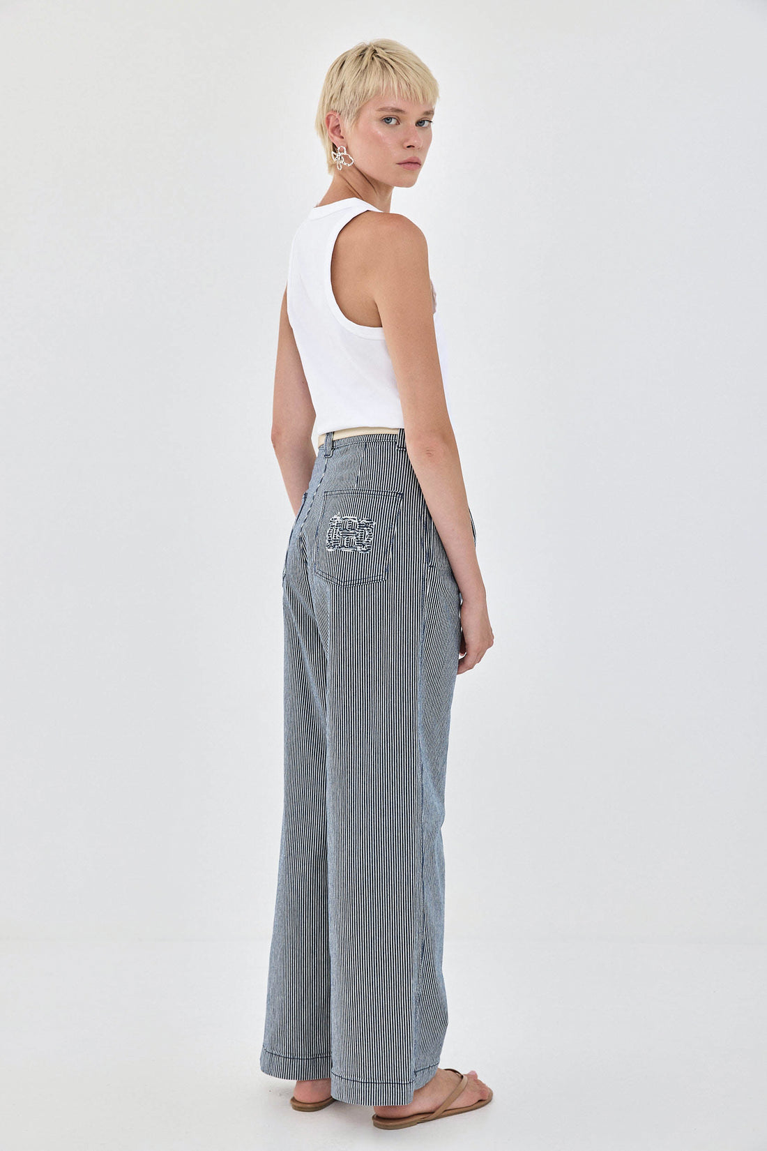 Your new favorite deep scooped tank top. Made from a thick heavy cotton composition, maintaining its shape all day long. Embroidered tonal logo detailing at the front of the shirt, just above the waistline. Racer silhouette at the back. Style it with the drill cotton maxi skirt, a belt to cinch the waist and golden accessories to tie the whole look together.