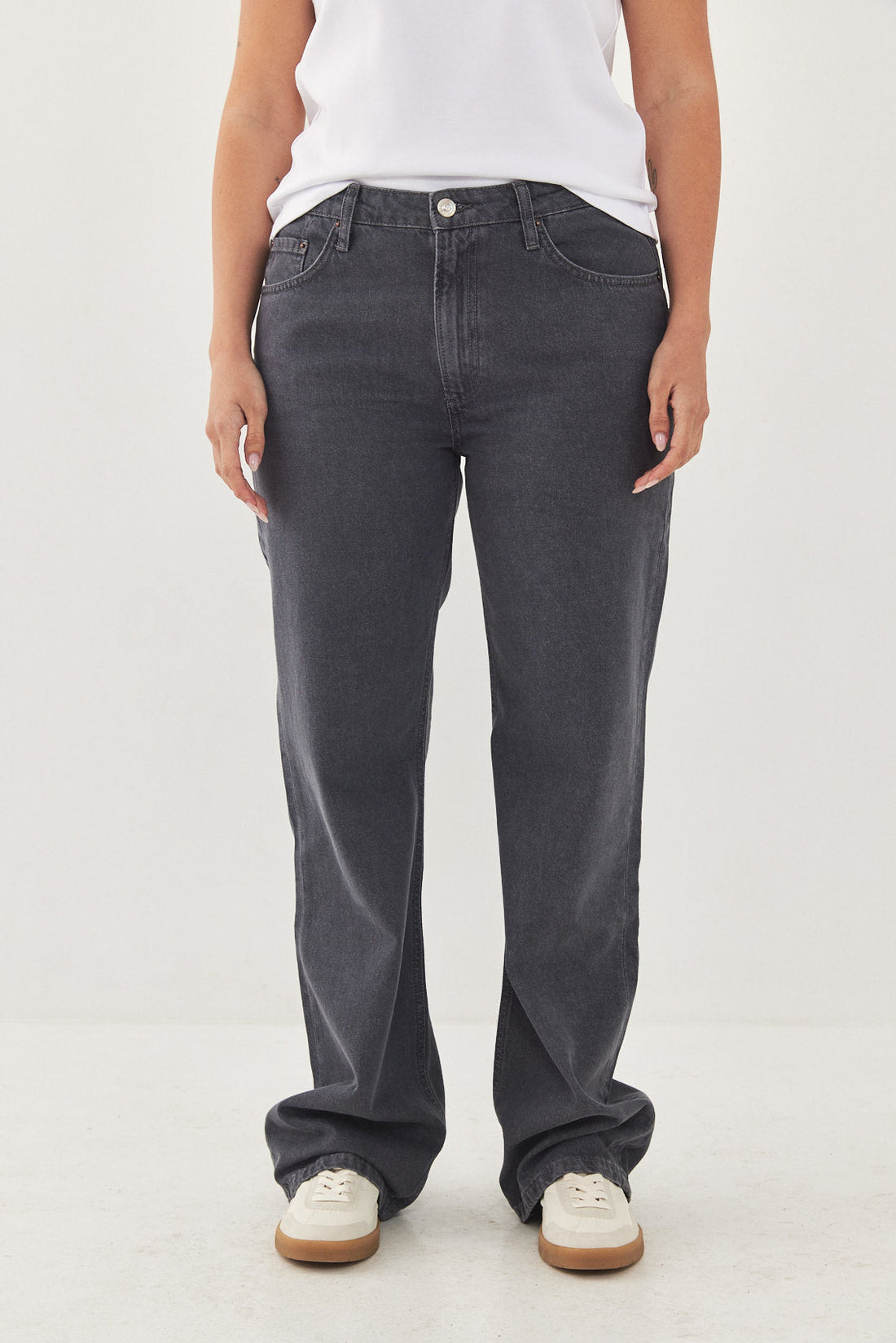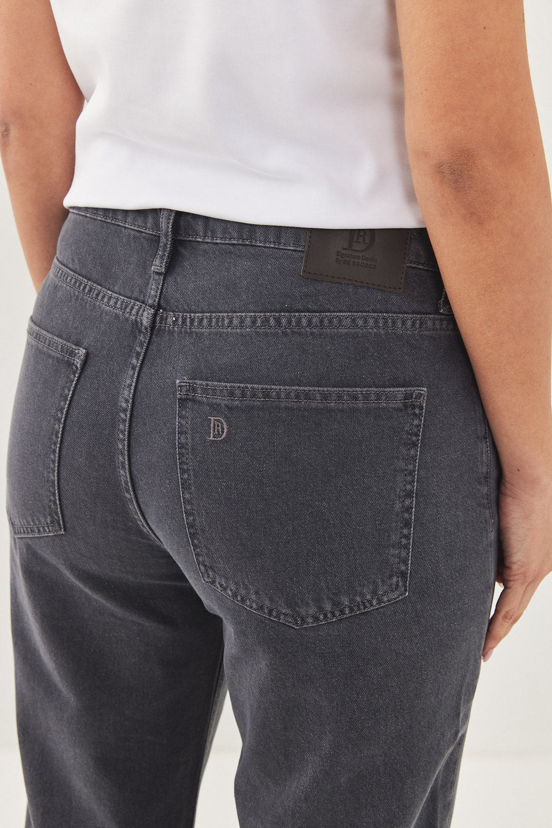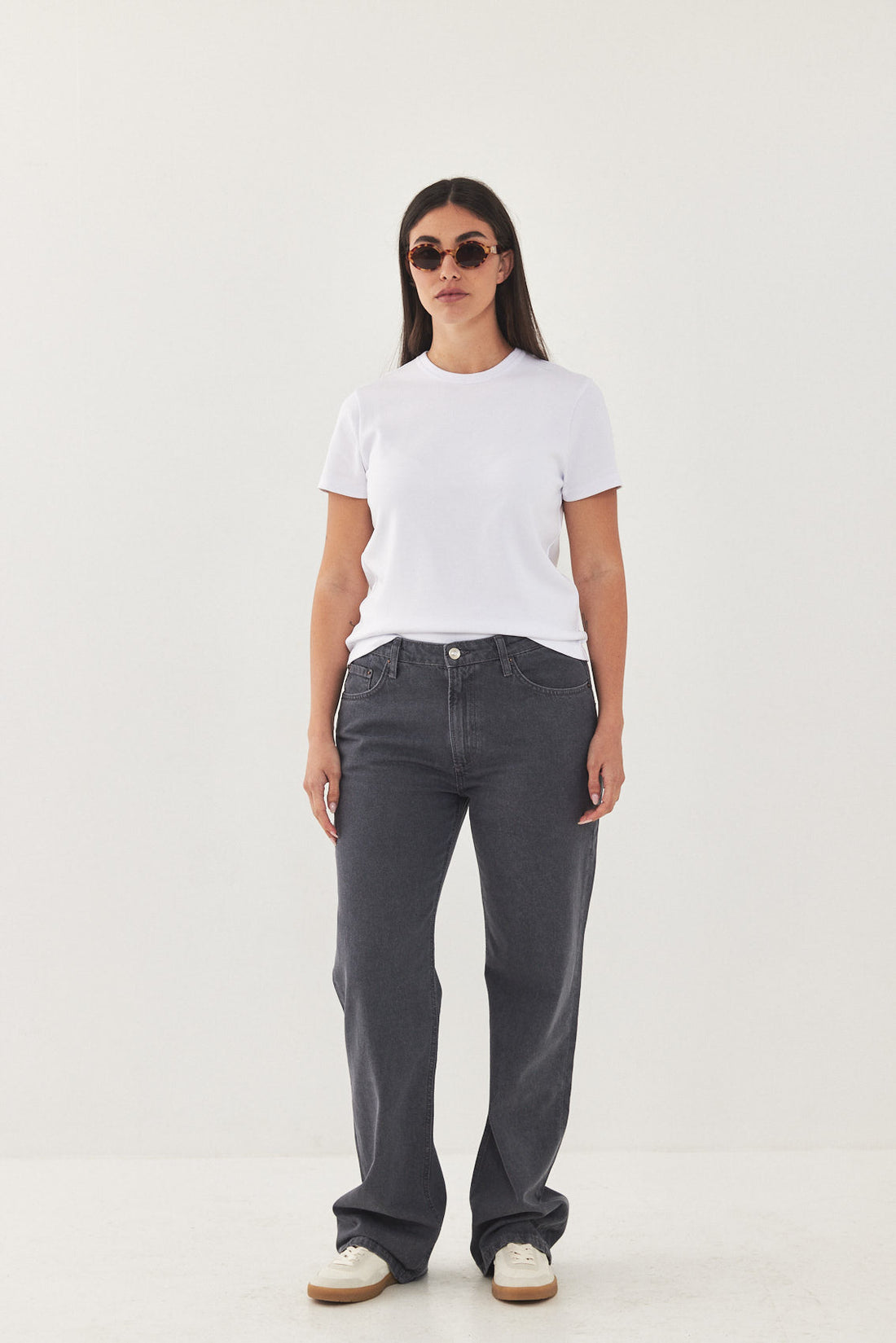 No.10 straight, low-rise, full length fit. Features a zipper closure. Logo detail embroidery on the back patch located above the pocket. Made from 100% thick cotton. Style yours with a basic tank and a pair of sandals or sneakers and the matching oversized denim jacket for a chic everyday look.