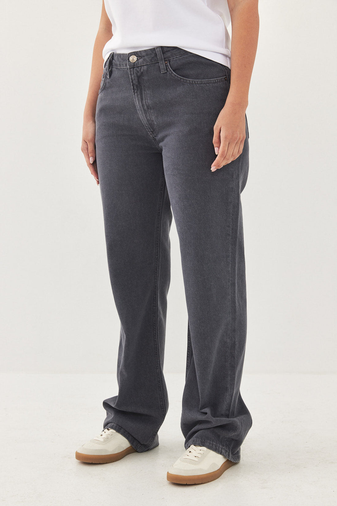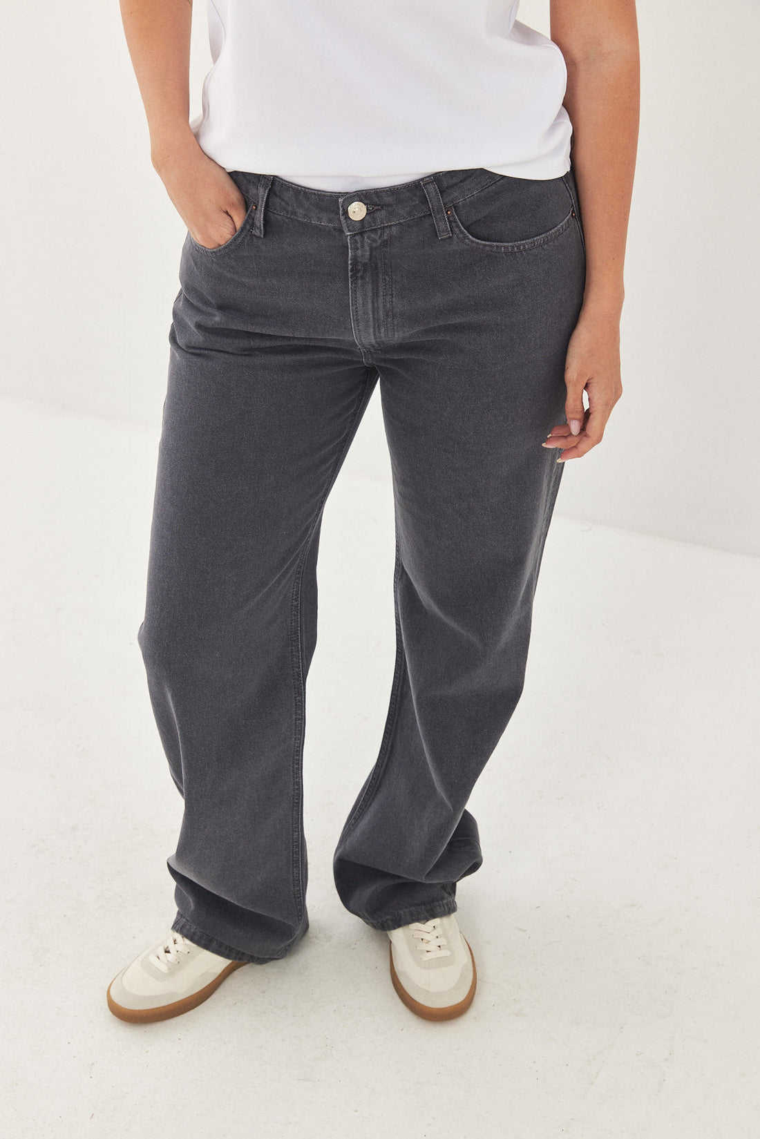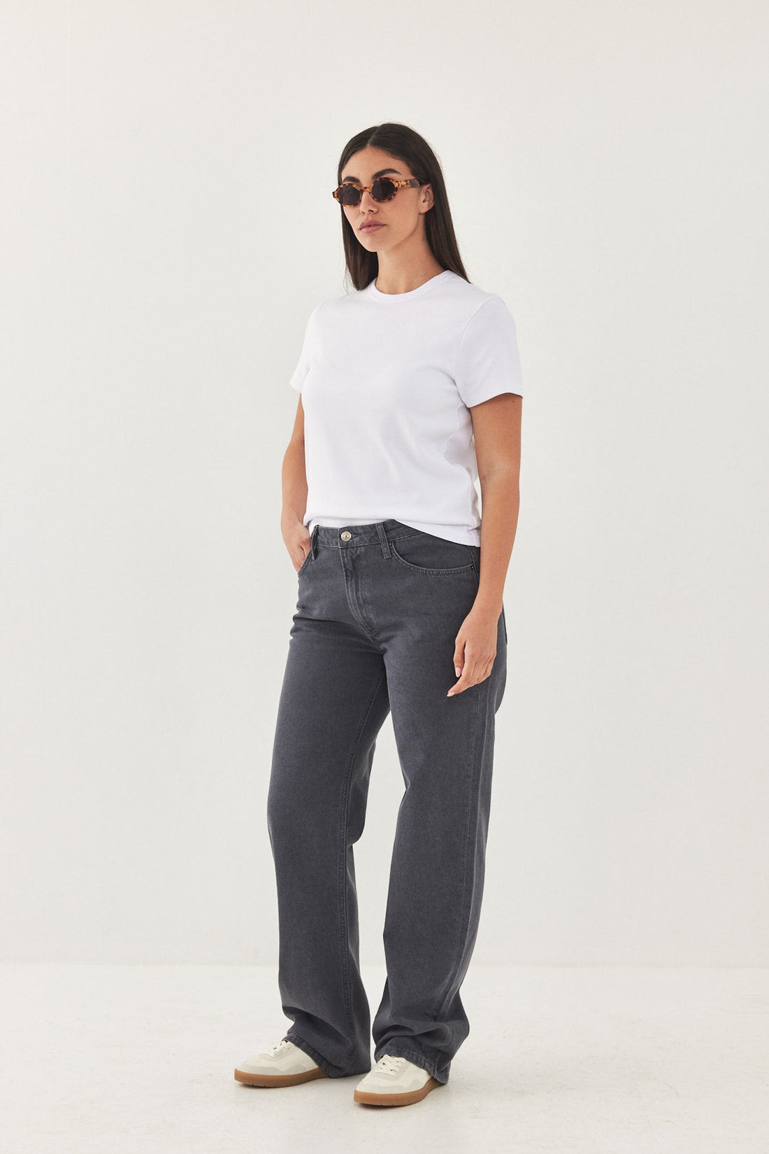 No.10 straight, low-rise, full length fit. Features a zipper closure. Logo detail embroidery on the back patch located above the pocket. Made from 100% thick cotton. Style yours with a basic tank and a pair of sandals or sneakers and the matching oversized denim jacket for a chic everyday look.