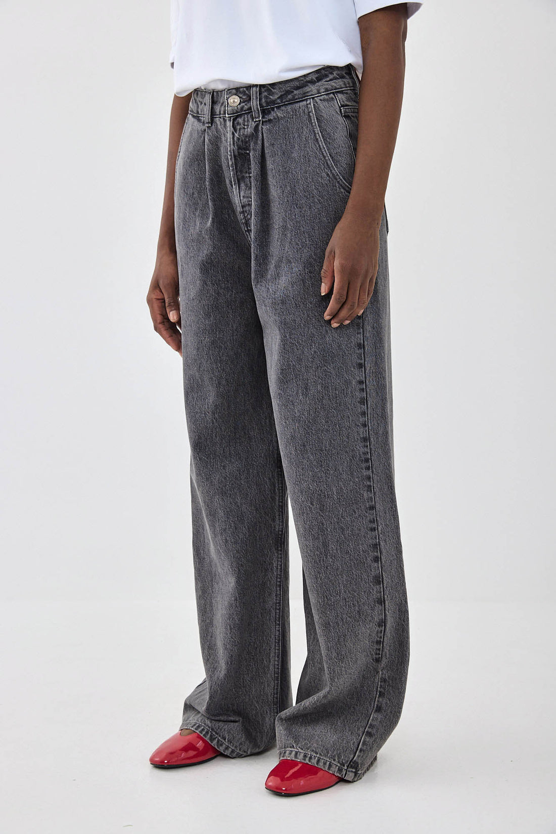 The limited edition version of our No.12 featuring a delicate pop of red. Made from premium 100% rigid cotton. High rise. Super wide fit. Featuring two side pockets. Pleat detailing in the front. Button closure. Full length. Patch print tonal logo detailing at the back pocket. Limited edition red leather patch with debossed logo detailing. Ultra flattering and effortlessly cool. Style it with your favorite summer tank and slides for the perfect everyday look.