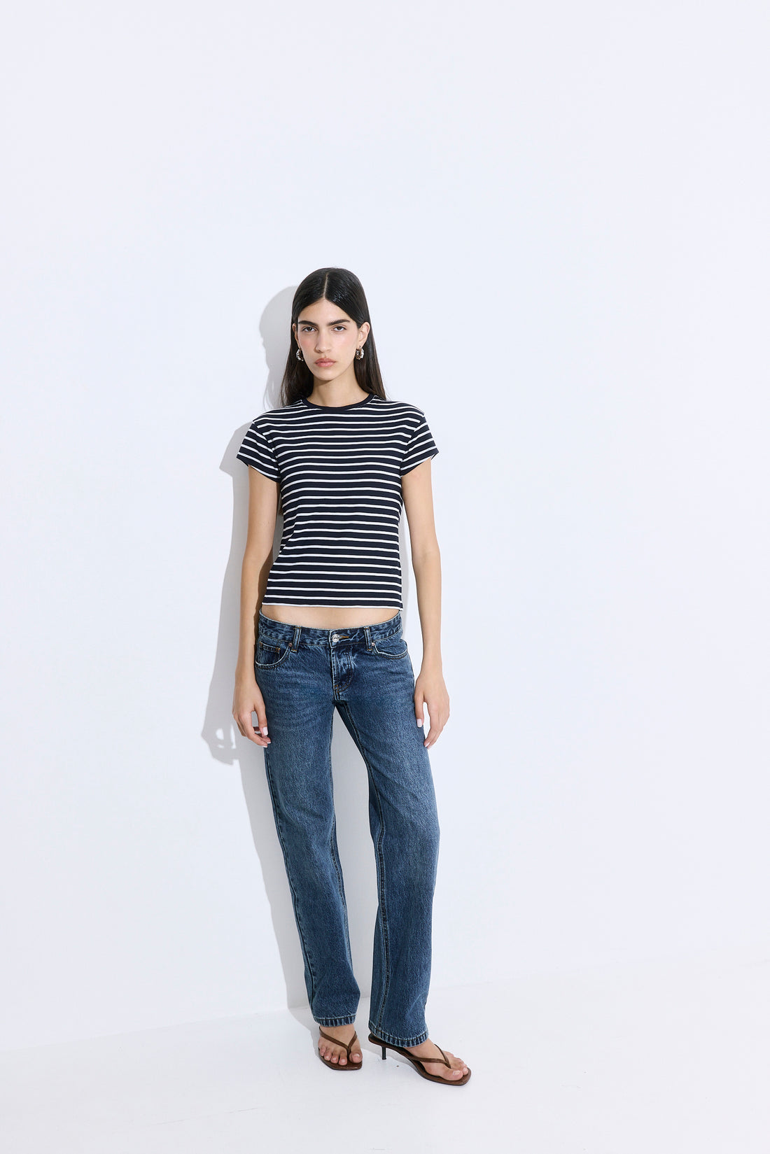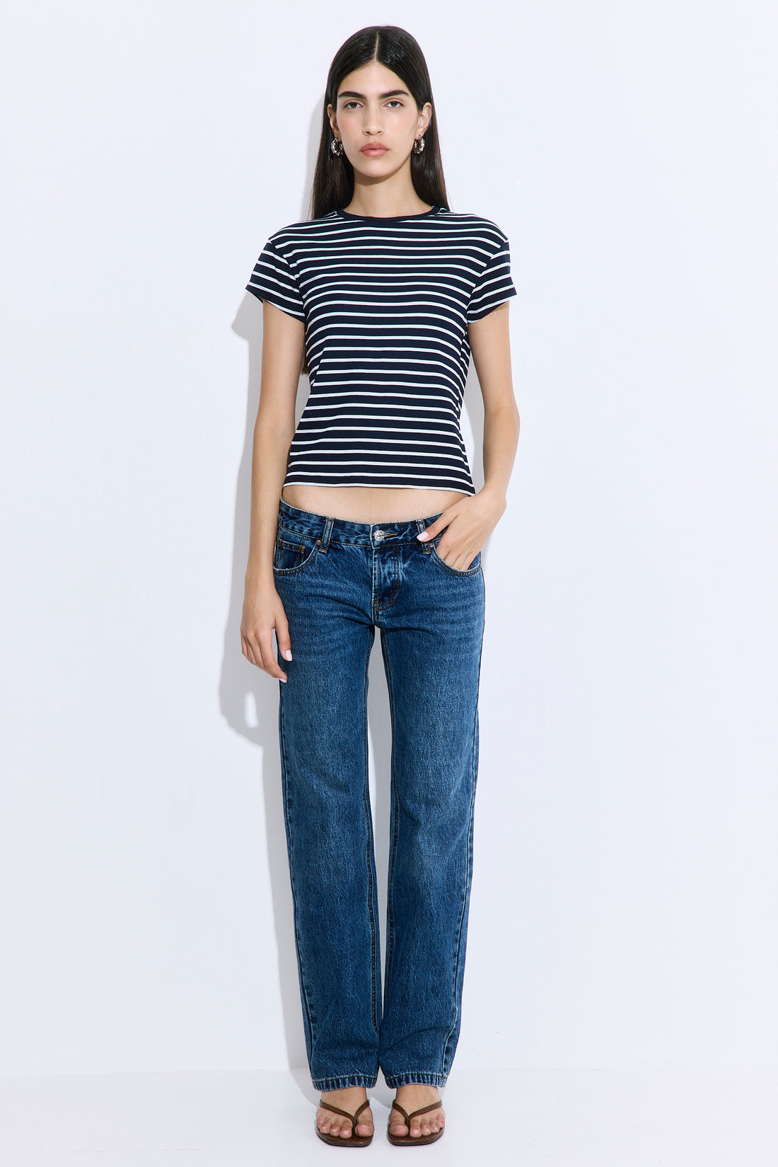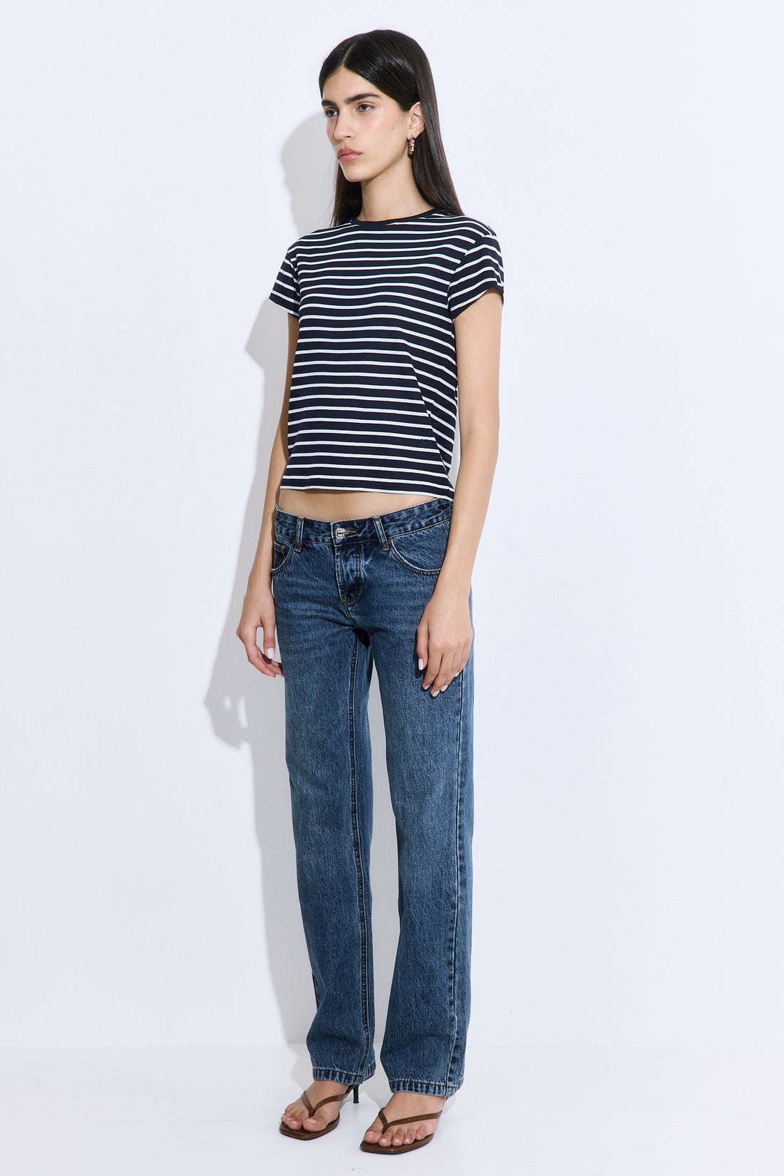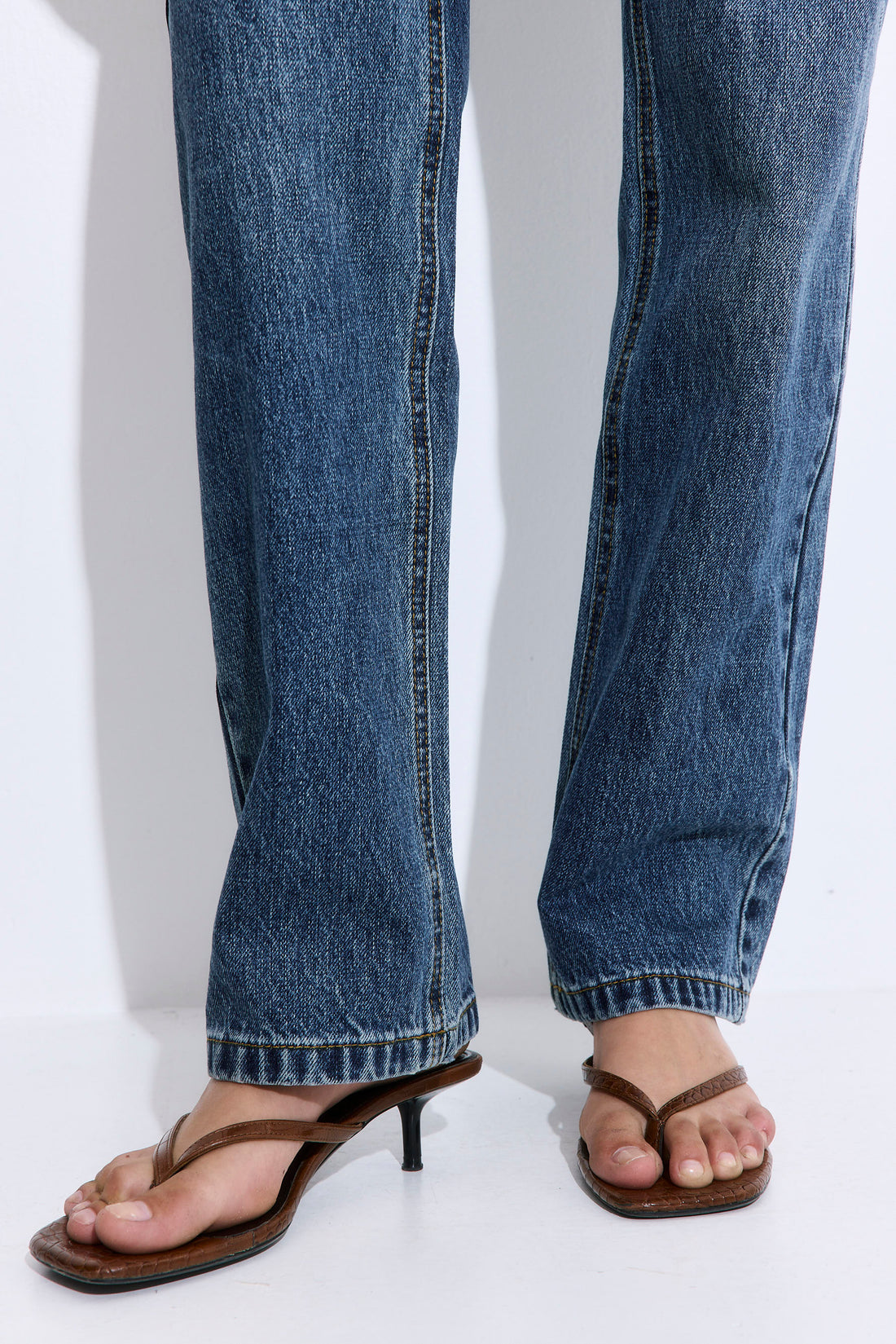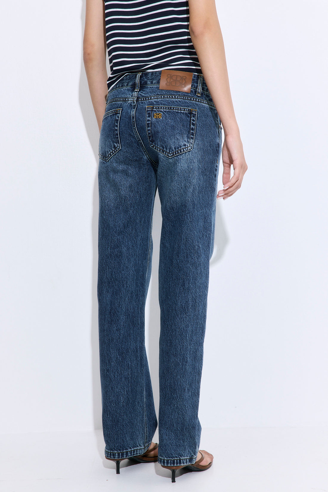 Our No.15 denim is a low-waist, straight denim that combines timeless design with a modern edge. Featuring a flattering silhouette that elongates the legs, it’s crafted for ultimate comfort and style. A classic buttoned closure. Logo leather patch detailing on the back. Style it with our crochet turtle neck top, our oval sunnies and and finish this gorgeous look with our flawless Yvon shoulder bag.